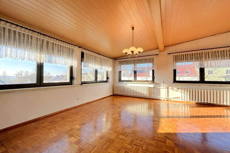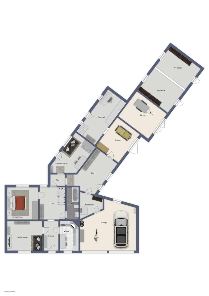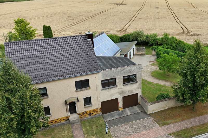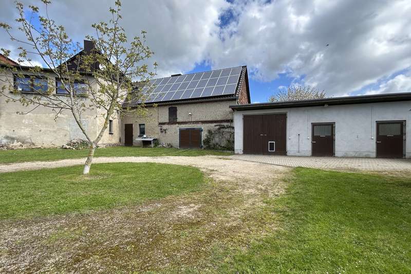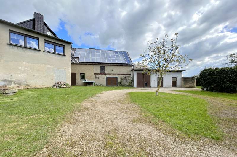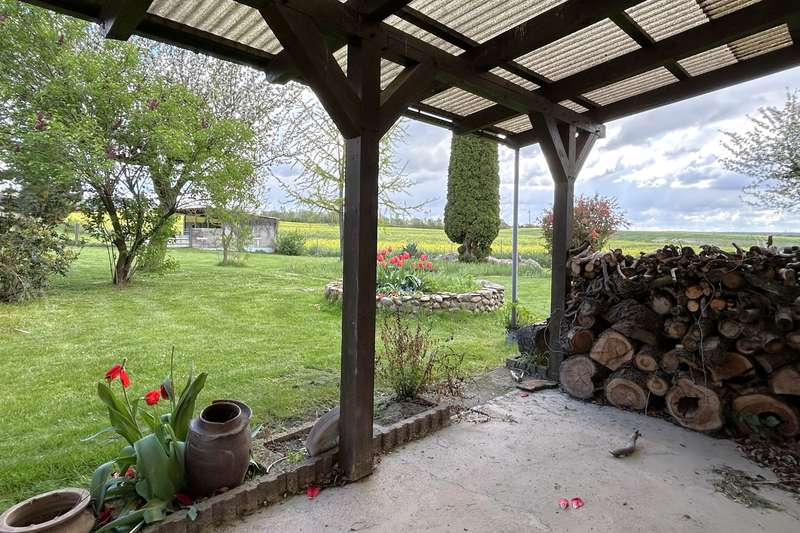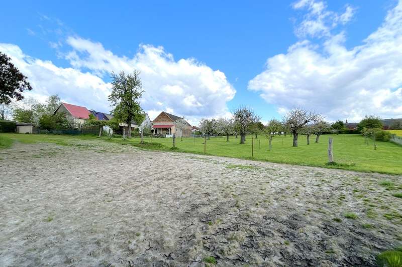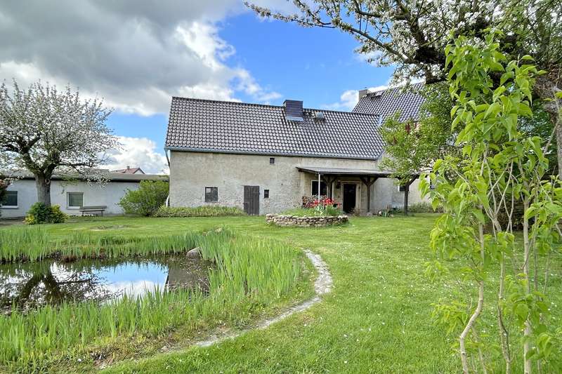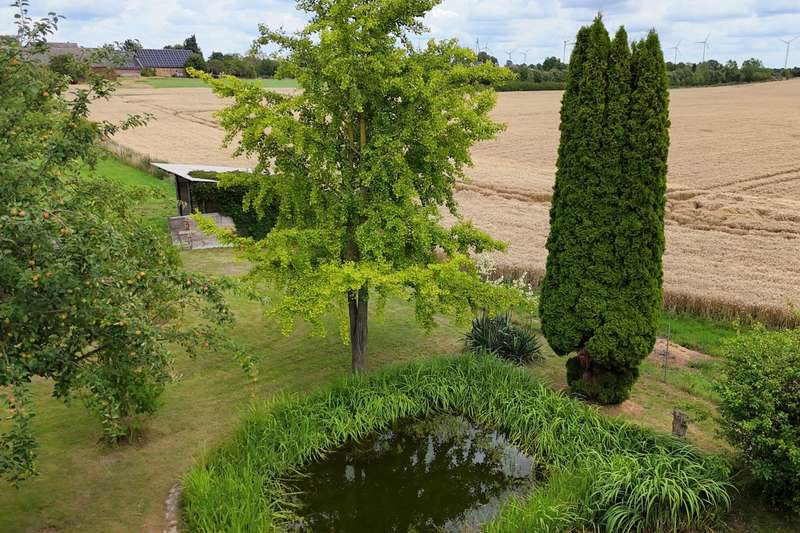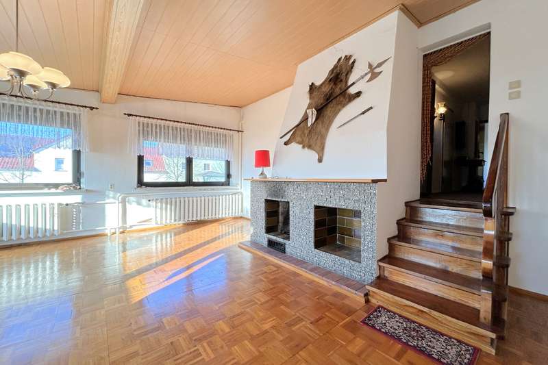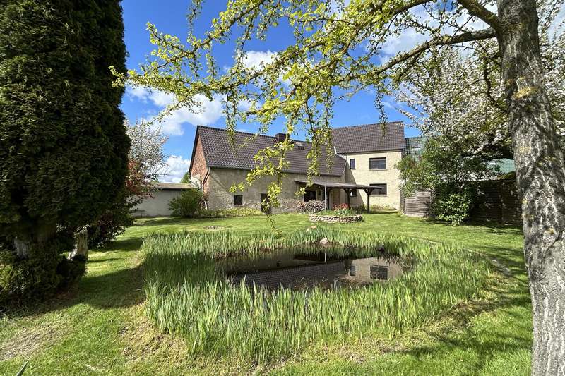 This charming detached house from the turn of the century around 1900 is surrounded by breathtaking nature. When you arrive here, you are not entering an off-the-peg new build, but a property full of character with corners, edges - and great potential. With around 209 m² of living space and a further 148 m² of usable space, this house offers enough space for big ideas, creative lifestyles or use as two separate residential units. The substance is right - now it's time to make that special something shine again. Inside, you will find a total of seven spacious rooms with plenty of natural light, a fully functional fitted kitchen and two bathrooms spread over both floors. The light-flooded living area with an open fireplace on the upper floor forms the heart of the house, complemented by another cozy lounge with a fireplace - perfect for long evenings and time spent together. The basic structure is well thought out and leaves plenty of scope for individual design ideas. The property is also technically sound: the oil-fired central heating dates back to 1991 and is supported by a modern photovoltaic system with 7.36 kWp - a solid energy foundation for the future. Most of the windows have roller shutters. A solid double garage with electric doors is available for vehicles and hobbies, supplemented by a further garage with adjoining workshop. Horse lovers in particular will be delighted here: a large stable building with two horse boxes, storage area and adjoining open stables allows animals to be kept at a high level. The large riding arena on the property and excellent riding opportunities in the surrounding area make the property the ideal place for riders, trainers or free spirits with a heart for animals. The outdoor area is complemented by an orchard, a covered terrace, a fireplace and an idyllic garden pond - pure nature, right next to the house. All of this is embedded in an impressive plot of around 6,400 m². Situated in a quiet, rural location and yet well connected, this property offers a rare combination of retreat, living space and design opportunity. Anyone with the courage to continue writing the story of this house will be rewarded with a home that is authentic, generous and distinctive - a place for people with foresight, warmth and a vision.