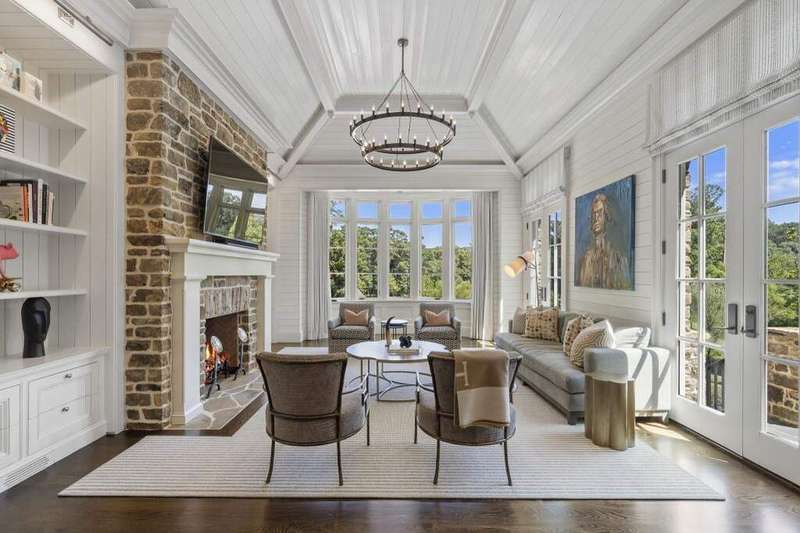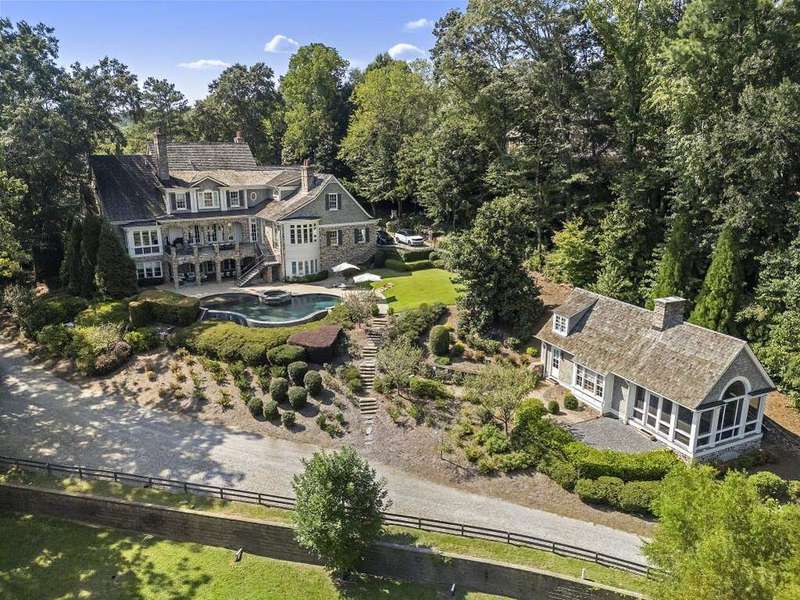 Tucked away in a serene and private setting, this extraordinary Buckhead gated estate spans 6.8 acres of manicured gardens, lush lawns, and wooded privacy - offering the rare opportunity to enjoy both refined living and natural beauty in one remarkable retreat. From the long, picturesque drive to the grandiose stone fa ade, every detail sets the tone for timeless elegance. The main residence blends architectural charm with modern amenities, featuring expansive windows, multiple outdoor living spaces, and a resort-style pool with an integrated spa as the centerpiece of the grounds. Upon entering the home, you're greeted by a light-filled foyer that opens to the formal fireside living room, adorned with custom bookcases, double doors that lead to a private balcony overlooking the pool, and sweeping property. At the heart of the home, the chef's kitchen is both functional and sophisticated - complete with Wolf and SubZero appliances, double Bosch dishwashers, a breakfast nook, a wet bar with refrigeration, and a generous pantry. The fireside keeping room off the kitchen creates a multi-use space perfect for busy mornings and afternoons. The main level also boasts a formal dining room, office, laundry room, and mudroom. The luxurious primary suite, designed as its own perfect oasis with a fireplace, dual custom closets, and a spa-like bath with soaking tub, separate shower, and dual vanities, is the perfect everyday retreat. Upstairs, you will find a long hall perfect for displaying photos and art that leads to the four guest suites, each boasting its own ensuite bath. The loft space is perfect for an additional office or hangout space. Additionally, there is a charming bunk room that offers plenty of room for relaxation, play, or hosting friends and family. The terrace level is dedicated to leisure and entertainment, offering a fireside living room and a full kitchen. The temperature-controlled wine cellar is a dream, adorned with a black steel and glass door. This is a wine connoisseur's dream. The game room, billiards space, and home theatre create a fun atmosphere on the terrace level. Adding to the amenities of this home, a home gym and full bath are located on this level. The property includes a charming guest house that feels like a private mountain retreat. With its cottage-inspired design, it offers a fireside living area, kitchenette, loft bedroom, private bath, and a screened porch overlooking the serene pond-ideal for visitors or a creative sanctuary. Beyond the homes and gardens, the estate reveals a collection of rare lifestyle amenities that set it apart. At its heart lies a private, full-sized baseball field-a truly extraordinary feature that transforms afternoons into cherished memories. Whether it's perfecting your swing during a quiet round of batting practice or hosting an impromptu weekend game with family and friends, this one-of-a-kind addition brings a sense of play and possibility to the property. Every detail of this estate has been curated to deliver a lifestyle that feels both elevated and effortless. With its seamless blend of luxury, comfort, and privacy, it offers the ambiance of a private resort. For those who value timeless elegance paired with modern convenience, this residence is more than a home; it is a sanctuary, an experience, and a legacy to be treasured.