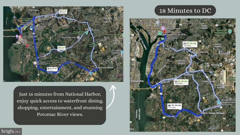 Built in 2020, this beautiful home offers the benefits of new construction with thoughtful upgrades throughout. Situated on a generous 17,534 square foot lot, it provides both comfort inside and ample outdoor space to enjoy or customize to your needs. The updated kitchen serves as the heart of the home, blending style with functionality. Fresh paint and accent walls bring a modern feel to each room, while recessed lighting creates a warm and inviting atmosphere. Custom closets offer excellent storage, adding convenience to everyday living. Energy efficiency is another standout feature, with solar panels keeping electric bills as low as 8 dollars per month. Fire sprinklers on both the first and second levels provide an added layer of safety and peace of mind. The location is equally impressive. Only 7 minutes from Woodyard Crossing, you will find shops, restaurants, banks, gas stations, groceries, and more. For waterfront dining, shopping, and entertainment, National Harbor is just 16 minutes away, offering stunning views of the Potomac River. Commuters will appreciate being only 18 minutes from Washington, D.C. and 14 minutes from Alexandria, making travel to work or city attractions fast and convenient.
