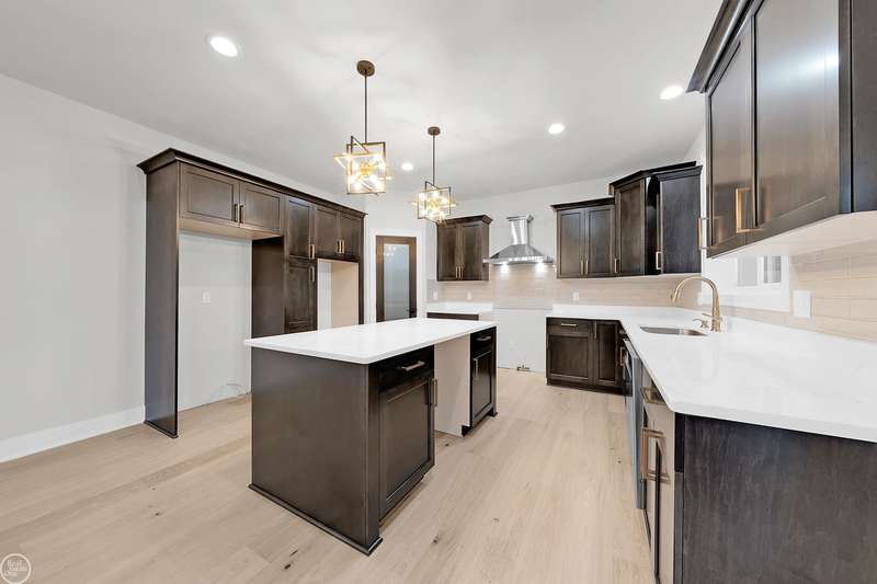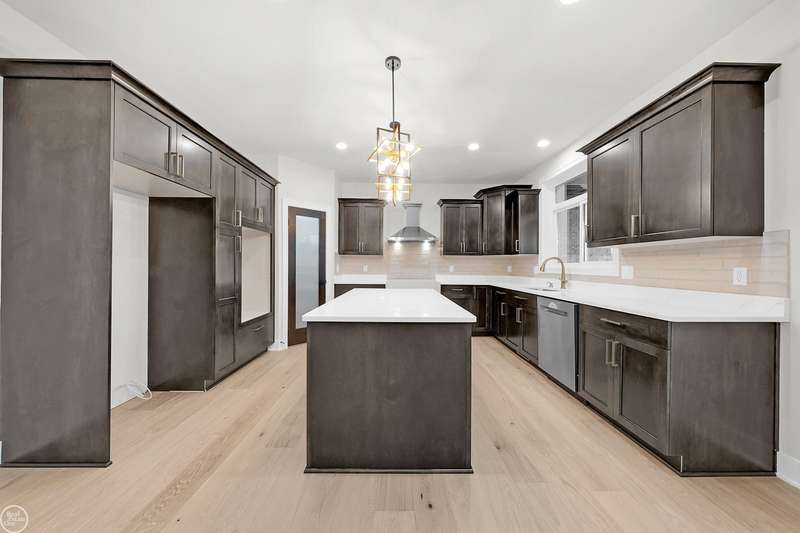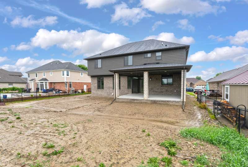 OPEN HOUSE A luxury home built by Allante Building Company. Gourmet kitchen w/Lafata soft close cabinets (roll-out bottom drawers), area for double oven/convection/microwave, island counter w/space for wine cooler, quartz counter tops, step-in pantry. Engineered hard wood flooring throughout the main and upper level. Doorwall to a covered 12 x 24 veranda with private TV wall. Spacious laundry w/storage cabinets, cabinet tub and large closet. Each large bedroom features its own walk-in-closet. Primary suite features a vaulted ceiling, cavernous walk-in closet with window, private bath w/double sink, framed mirrors, huge walk-in shower. Premium brick elevation. Extra deep basement is insulated & completely drywalled w/egress window. 90+ furnace & hot water tank (50 gal). Low-E glass. THE 3 CAR GARAGE is drywalled, finished & painted with 8' doors. Great location. Home is completed. Located in award winning Anchor Bay School District.