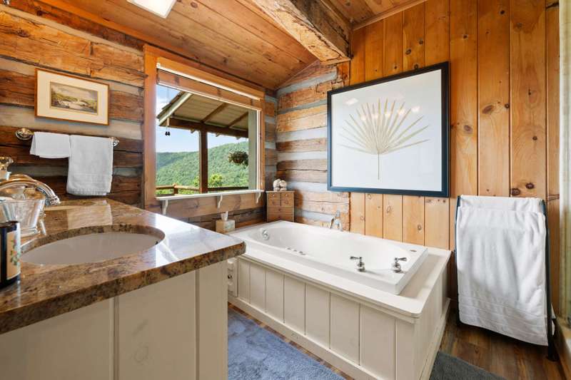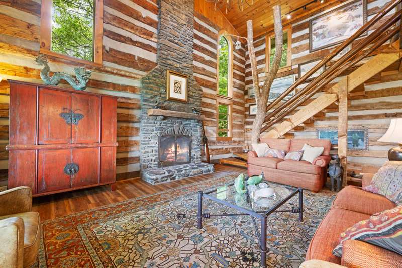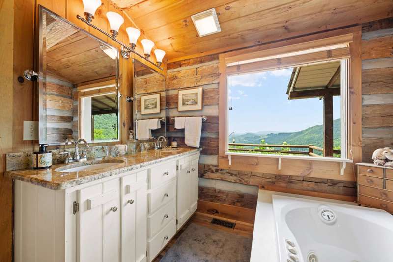 Introducing an exceptional antique log home with amazing long-range views tucked within the captivating Stonebridge community. A 4-bedroom, 3.5-bath masterpiece offers awe-inspiring layered mountain vistas—including an iconic view of Grandfather Mountain. This home hits different, crafted with extra-wide log construction and enriched over time with creative vision and care. As you approach, lush roadside landscaping, featuring thoughtfully layered trees and perennials, provides both beauty and privacy. Meandering stepping stones lead to a charming entry patio—an ideal spot for morning coffee surrounded by the vibrant gardens you'll love to nurture. Inside, the grand living room greets you with vaulted ceilings and a dramatic floor-to-ceiling natural stone wood-burning fireplace. The chef's kitchen is a true showpiece, featuring a gas cooktop, wall oven, oversized island with seating and storage, granite countertops, a pantry with pull-out shelving, and abundant cabinetry throughout. The adjacent dining area is made for entertaining, offering a gracious space where guests can dine while gazing out at sweeping mountaintop views. A hallway connects the great room to the private primary suite, where you'll wake up to breathtaking panoramas and step directly onto your sun deck—perfect for morning solitude or stargazing before bed. The en suite bath includes double granite vanities, a jacuzzi soaking tub, and a spacious tiled shower, while a large walk-in closet with custom built-ins keeps everything beautifully organized. Additional main-level highlights include a guest powder room, a walk-in pantry, and a tucked-away laundry area. Outdoor living is just as impressive, with a covered front porch that wraps around to a large entertainment deck accessible from the great room. From here, take in the views, dine al fresco, or host unforgettable summer gatherings. Upstairs, an oversized loft overlooks the great room below, while two expansive guest bedrooms share a Jack-and-Jill bathroom with double sinks and granite counters. Each bedroom includes generous closet space. The lower level offers flexible living with a multi-purpose family room that opens to a second deck—complete with a hot tub for year-round relaxation. A full bath, fourth bedroom, hobby or craft room, and oversized two-car garage complete this level, with additional storage in the crawl space below and a detached shed for your outdoor gear. A whole-house generator ensures peace of mind, with the well already connected for an uninterrupted water supply. Full-time home so no drive-bys please - All appointments need to be scheduled through Showing Time. Call us today for more information or to view our listing W135.