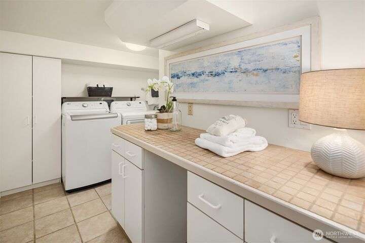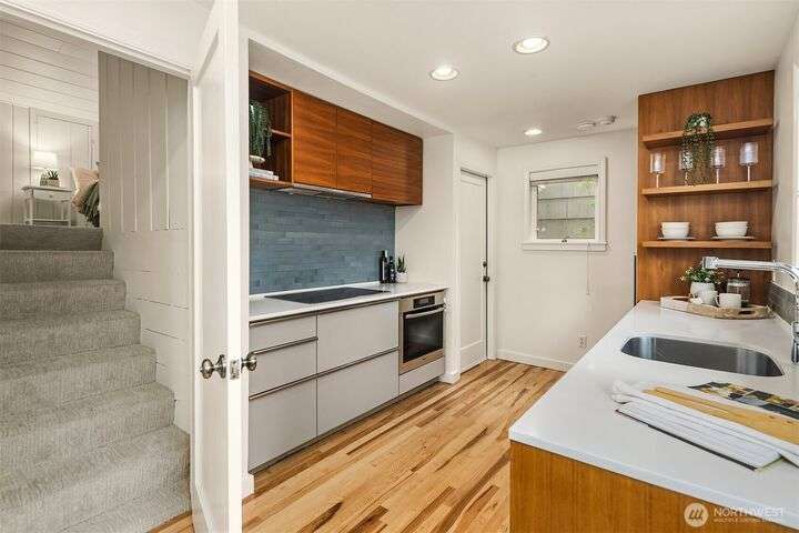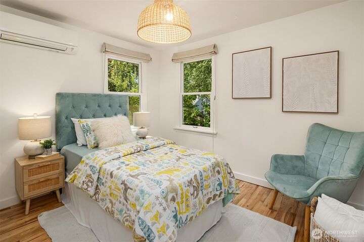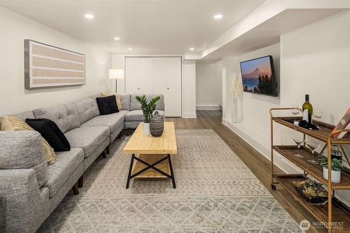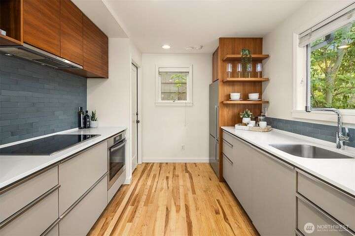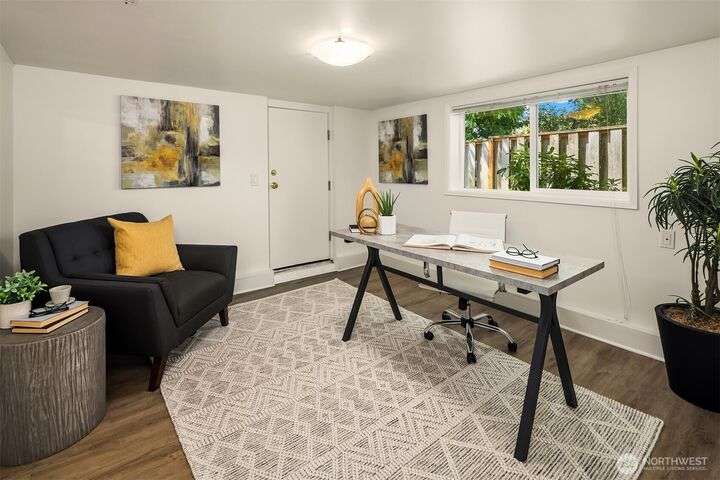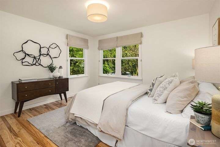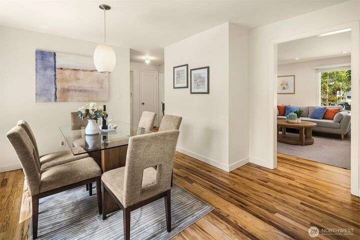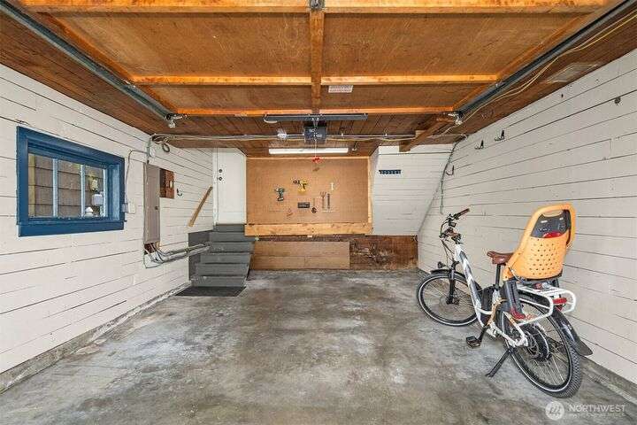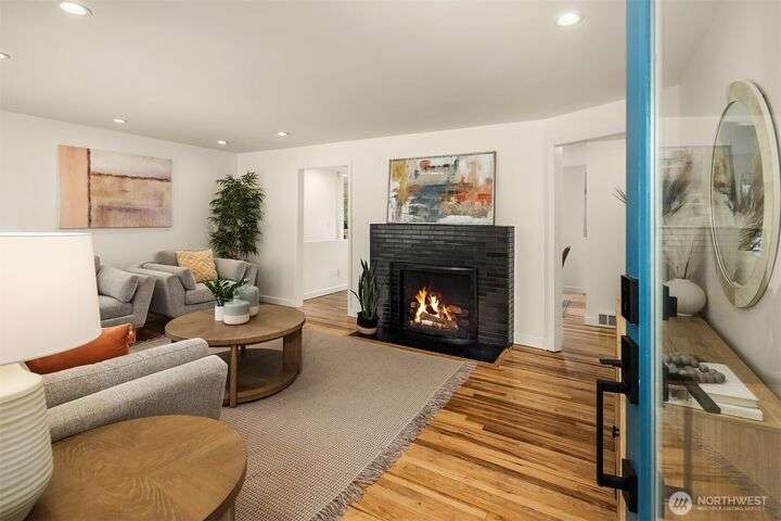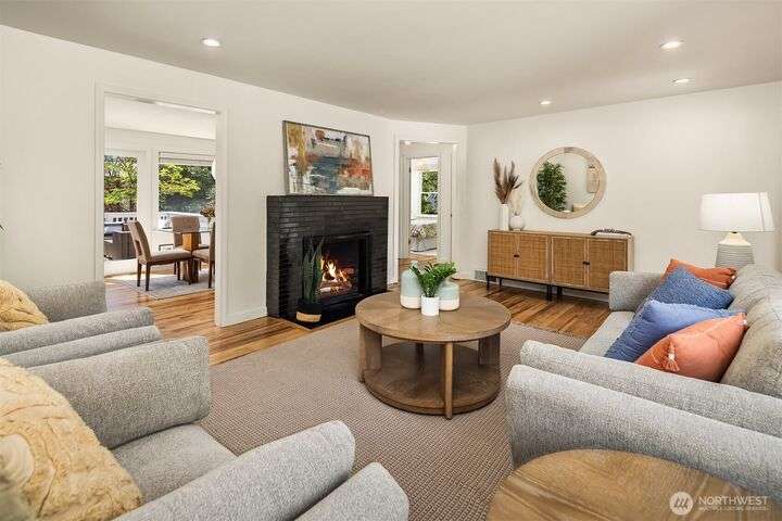 Hawthorne Hills home with charming deck & backyard, just an easy walk to Burke-Gilman Trail & Metropolitan Market + easy access to U-Village, Magnuson Park, & other amenities. This well-loved & maintained home has a bright & functional layout. A covered front porch opens to the main living space featuring hardwood floors, large picture window + cozy fireplace & flows into the dining area & kitchen with French doors to backyard, deck, & lower patio. The home has 3 bedrooms up & a renovated full bath with heated floors. The daylight basement offers a family room, 4th bedroom, additional bathroom with laundry/utility area, & extra storage. Relax & entertain in the south-facing, private & sunny backyard. 1-car garage + off street parking.