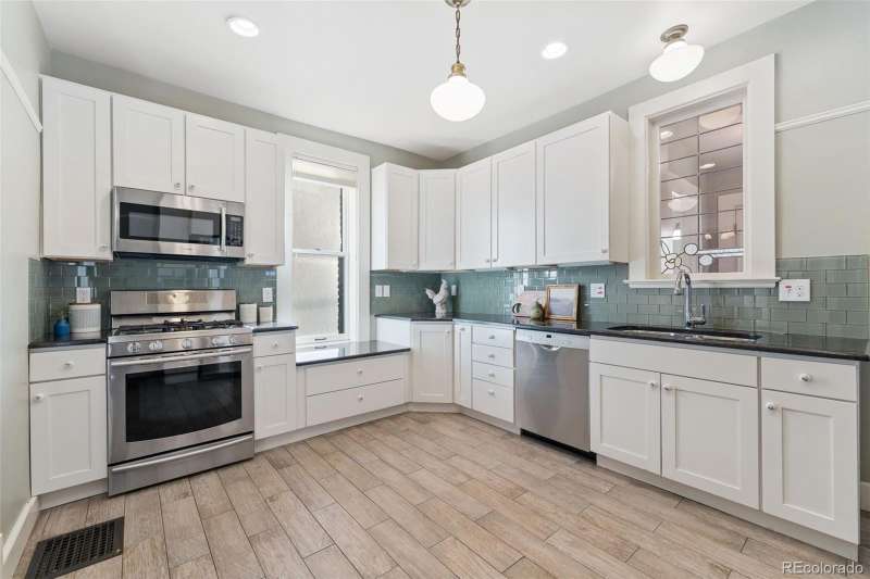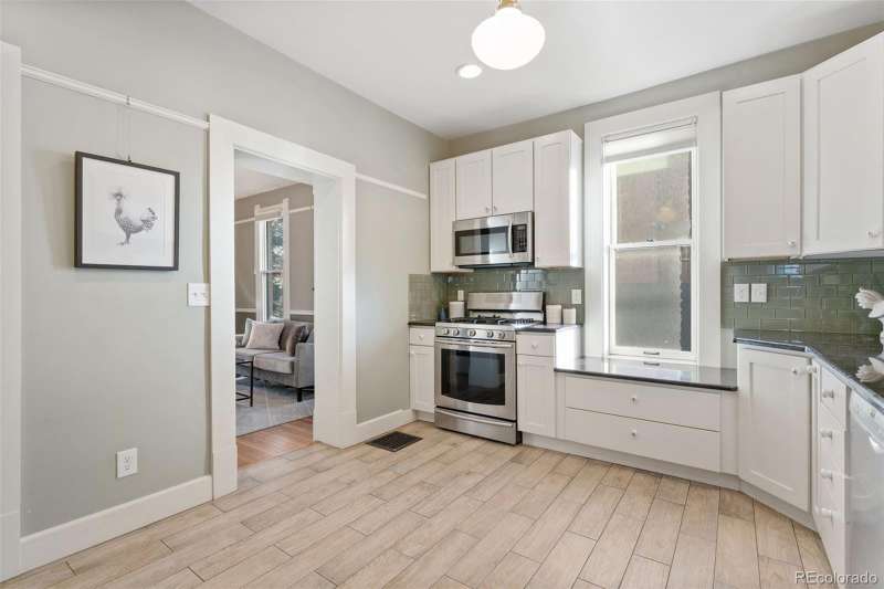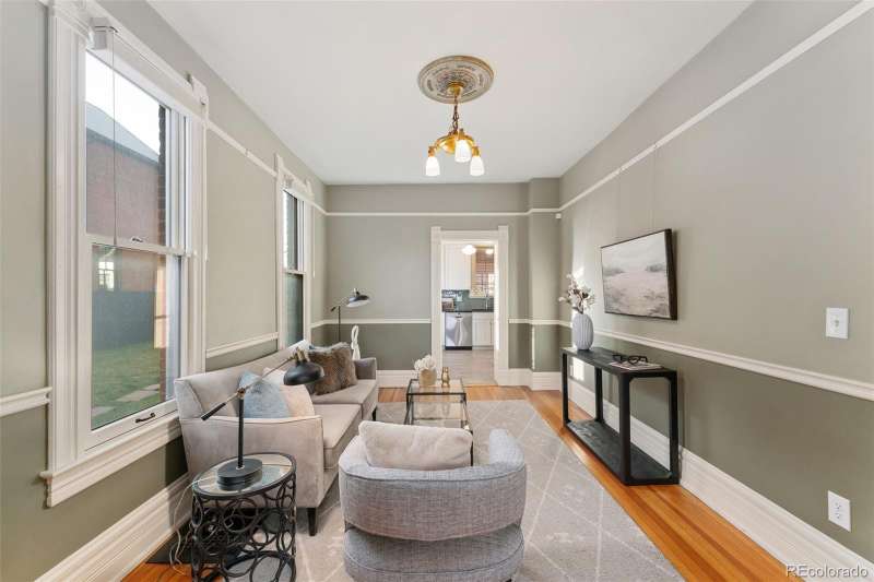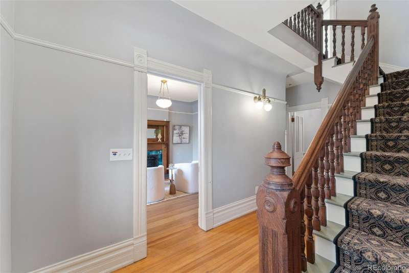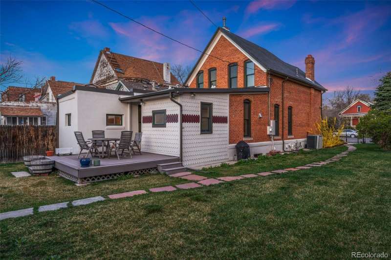 Beautiful home on large landscaped lot with an income producing original carriage house and a two car garage. Rare opportunity to own a piece of Denver history. This fully updated 1884 brick single-family home sits on a double lot and includes both a two-story carriage house that rents for $2000 per month and a two-car garage. Situated on one of the best residential blocks in the Curtis Park Landmark district, the house is just blocks from the heart of RiNo, Five Points and Downtown Denver. The first floor features a large kitchen, nice size pantry, two living rooms, formal dining room, a full bath and a room that will function well as a bedroom or home office. The second floor features a full bath and two bedrooms, one with a large walk-in custom closet. The owners' attention to detail is ever present in the home from the meticulously cared-for gardens and yard to the beautifully restored front porch, woodwork and banister. High ceilings and tall windows that flood the home with natural light. Updated kitchen and baths, new systems, A dream property. Be a part of a fantastic community with great parks, amazing restaurants and entertainment venues and multiple options of high performing schools; Denver Language School, Montessori Academy of Colorado, Ebert Polaris, University Prep, and El Systema music education campus. All within easy walking distance of the house.
