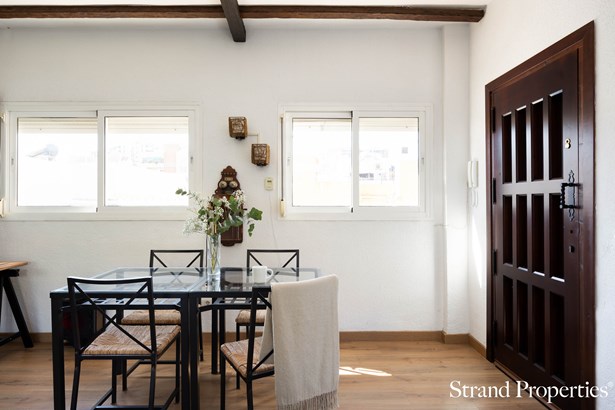 This charming apartment is situated on the third floor and offers a beautiful Andalusian touch with exposed wooden beams and high ceilings. The open-plan kitchen and living area create a bright and airy atmosphere with direct access to the sunny south-facing terrace — perfect for outdoor furniture, dining, and relaxation. The property features two spacious bedrooms with built-in wardrobes, one of which has a French balcony. A stylish bathroom completes the home.Here you live close to restaurants, shops, the train station, and the beach — everything you need to enjoy the best of life on the Costa del Sol!For more information or to arrange a viewing, please contact us.