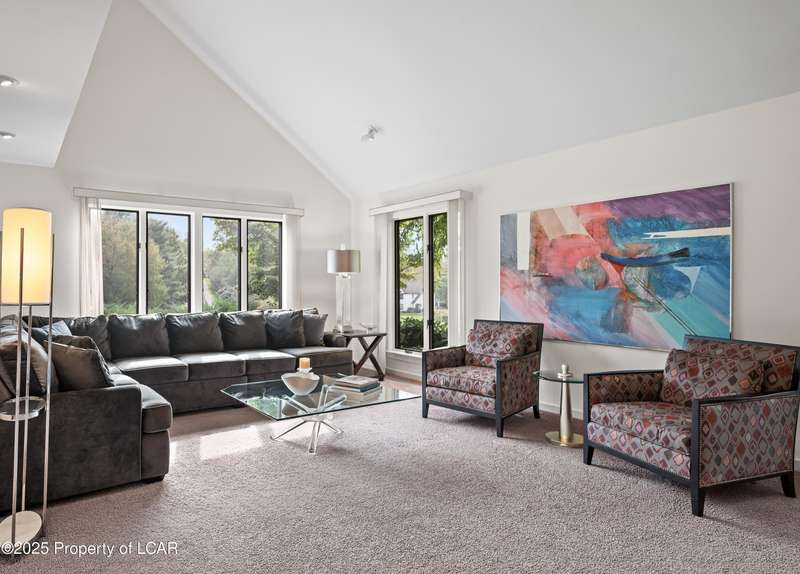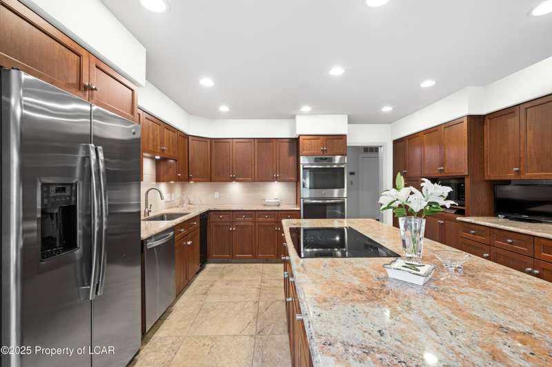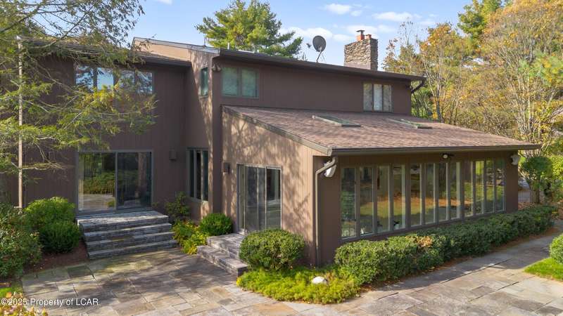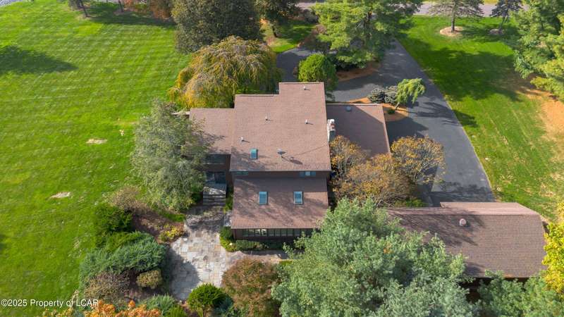 A gracious circular drive leads to this elegant 5,300 sq. ft. residence set on 3 manicured acres. The home offers 4 en-suite bedrooms, a vaulted living room opening to the dining area and patio, a gourmet kitchen, family room with stone fireplace, office, four-season room, finished lower level, and 5-car garage.