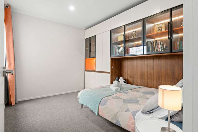 Designed with flair and offered semi-furnished, this home makes clever use of space. Each of the three bedrooms features custom cabinetry with pull-down beds and built-in organisers, allowing you to tailor each room to suit your lifestyle. Light-filled and airy, the open-plan living and kitchen area flows effortlessly to the outdoor space - ideal for entertaining or relaxing. The kitchen is finished with stone benchtops, quality appliances, and ample storage to make meals with ease. Both bathrooms are beautifully appointed with tiled showers and quality fittings, while double glazing and a centrally placed heat pump ensure year-round comfort. You'll also enjoy coded keyless entry and a fully carpeted single internal-access garage.
