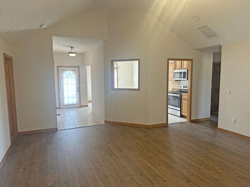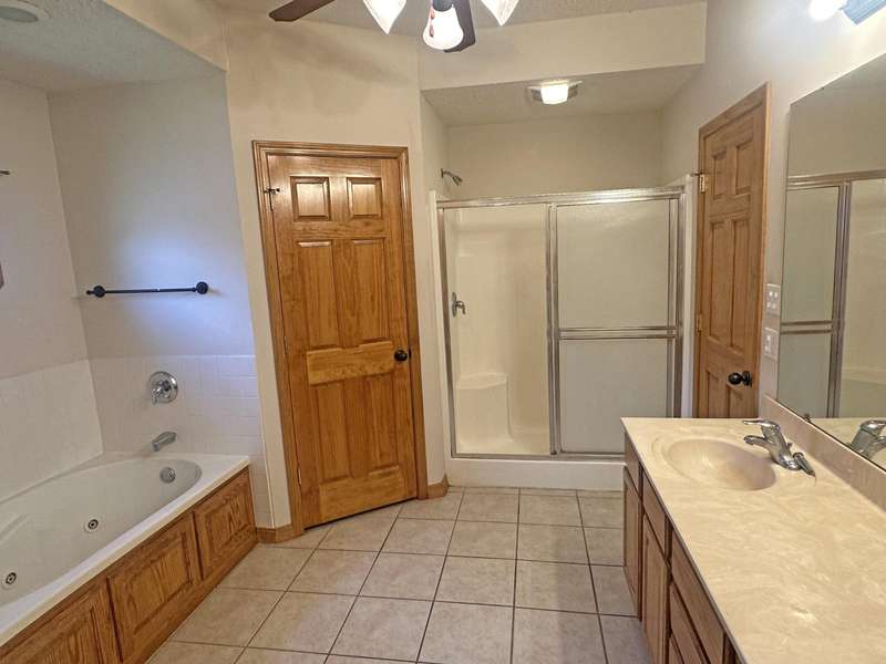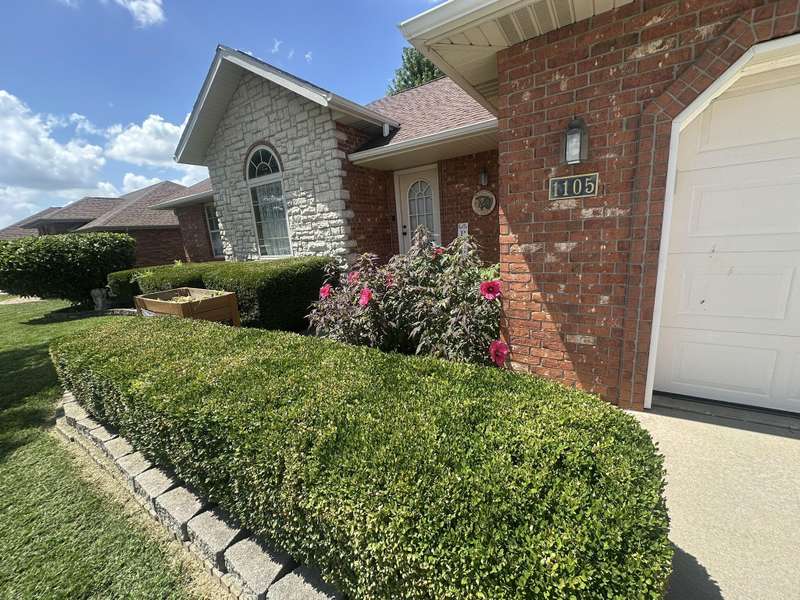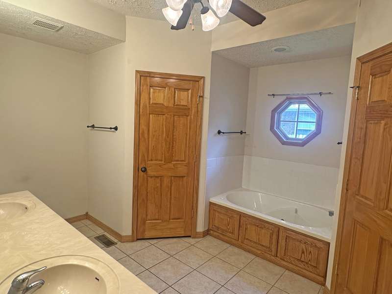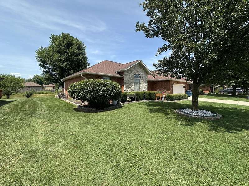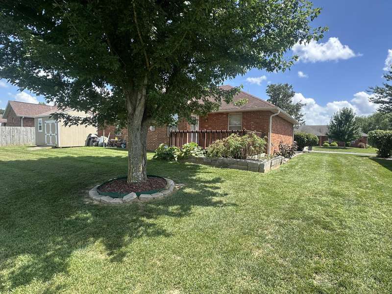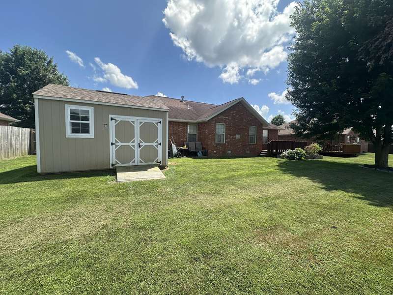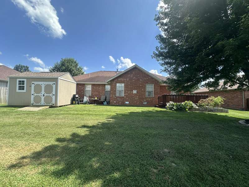 Freshly painted interior and ready to move in! ALL BRICK. 1591 sq ft of living space. Split bedroom plan, huge master suite with jetted tub, walk-in shower, double vanities and two walk-in closets, vinyl plank floor in the living room, tile floors in the kitchen, baths, laundry and entry, newer smooth-top range & microwave, wood trim, ceiling fans, attic fan, vaulted and cathedral ceilings and a pantry cabinet in the kitchen. Large deck, oversized 2 car garage and a 2 year old 10x14 storage shed that has electricity. Great location with greenspace behind the home. Think about it. ALL BRICK AND A GARAGE YOUR TRUCK WILL FIT IN!