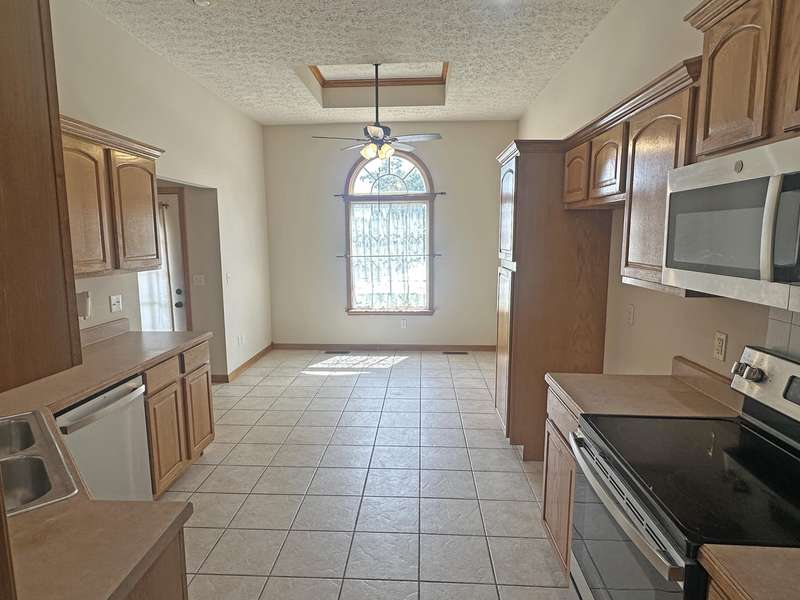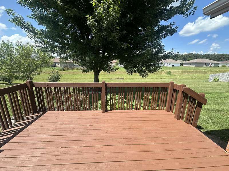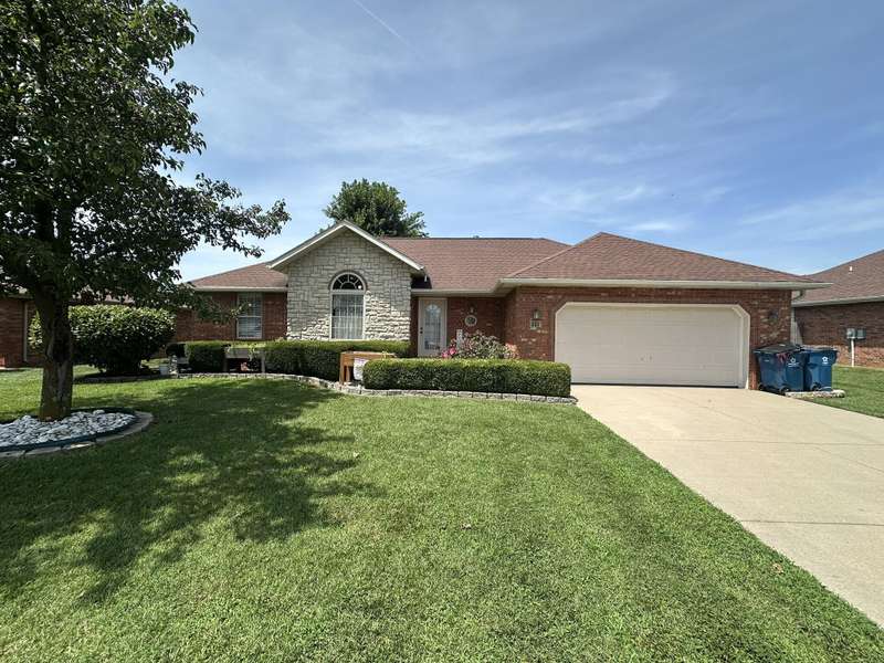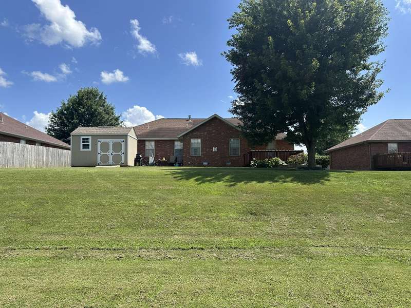 OPEN SUNDAY SEPTEMBER 28 from 2-4. Freshly painted interior and ready to move in! ALL BRICK. 1591 sq ft of living space. Split bedroom plan, huge master suite with jetted tub, walk-in shower, double vanities and two walk-in closets, vinyl plank floor in the living room, tile floors in the kitchen, baths, laundry and entry, newer smooth-top range & microwave, wood trim, ceiling fans, attic fan, vaulted and cathedral ceilings and a pantry cabinet in the kitchen. Large deck, oversized 2 car garage and a 2 year old 10x14 storage shed that has electricity. Great location with greenspace behind the home.