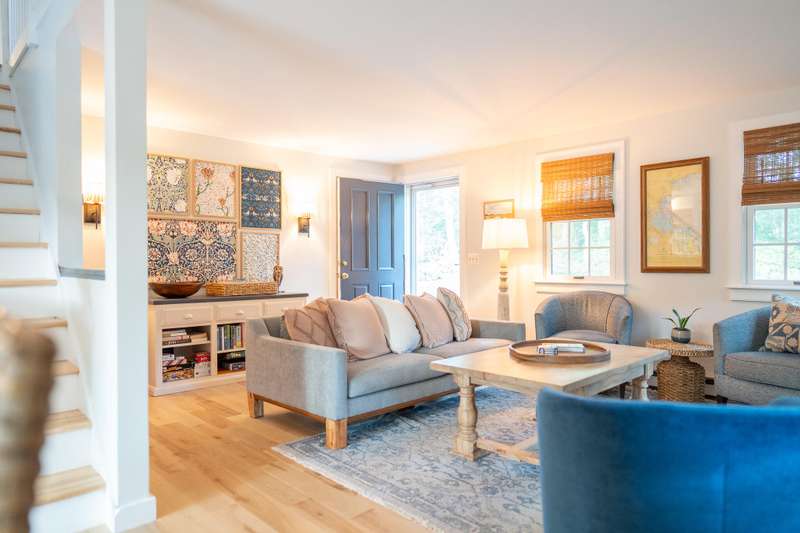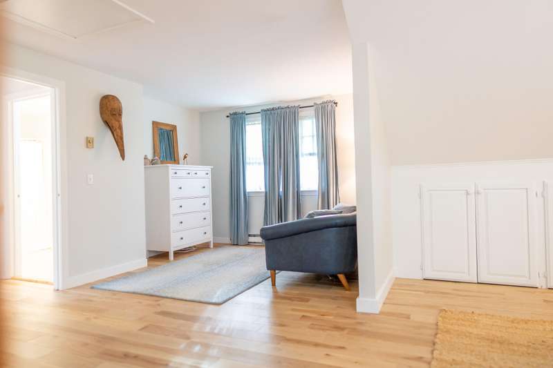 Charming Cape Cod Retreat, under a Mile to Cooks Brook Beach on Cape Cod Bay! Step into this beautifully renovated 3-bedroom, 2-bath home, which seamlessly blends timeless charm with modern comfort. Gorgeous birch floors flow throughout the house, setting a warm and inviting tone. The home features two spacious primary suites--one on each level--offering flexible living options and privacy for guests or multi-generational families. Upstairs, enjoy a cathedral-ceiling bedroom with a cozy sitting area, perfect for relaxing with a book or morning coffee. The updated bathrooms and convenient first-floor laundry add to the home's thoughtful design. Outside, the private yard is a true oasis, complete with a low-maintenance composite deck ideal for entertaining, a large shed, and mature landscaping that enhances the serene setting. The finished basement includes a workshop and walk-up access, providing excellent space for hobbies or additional living. Located in a quiet, sought-after neighbor