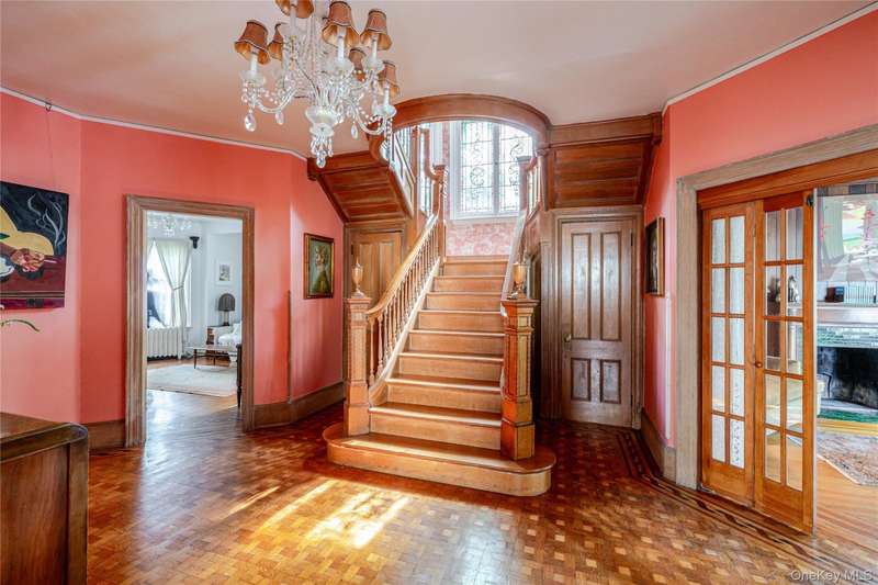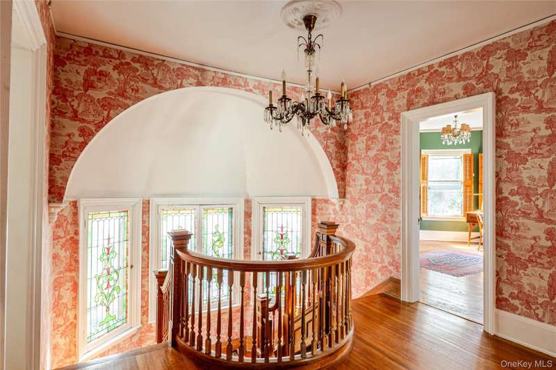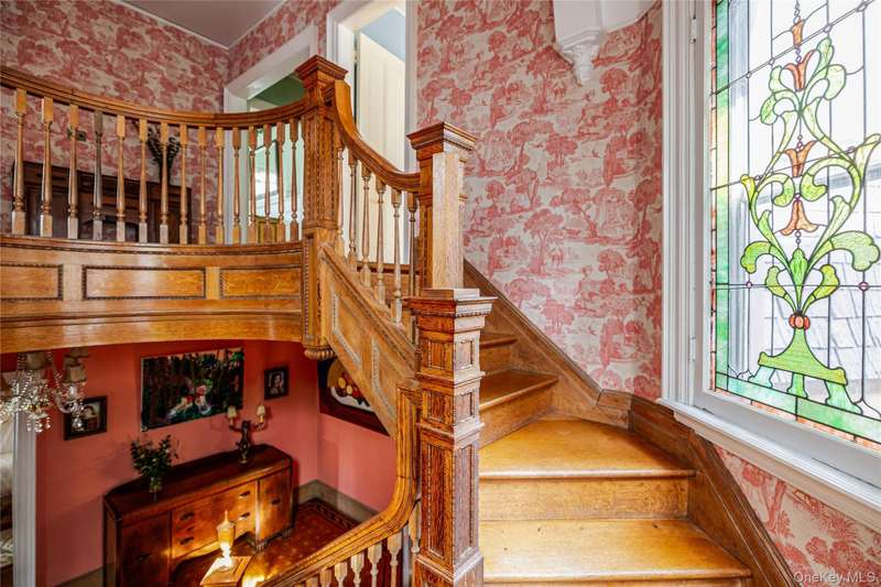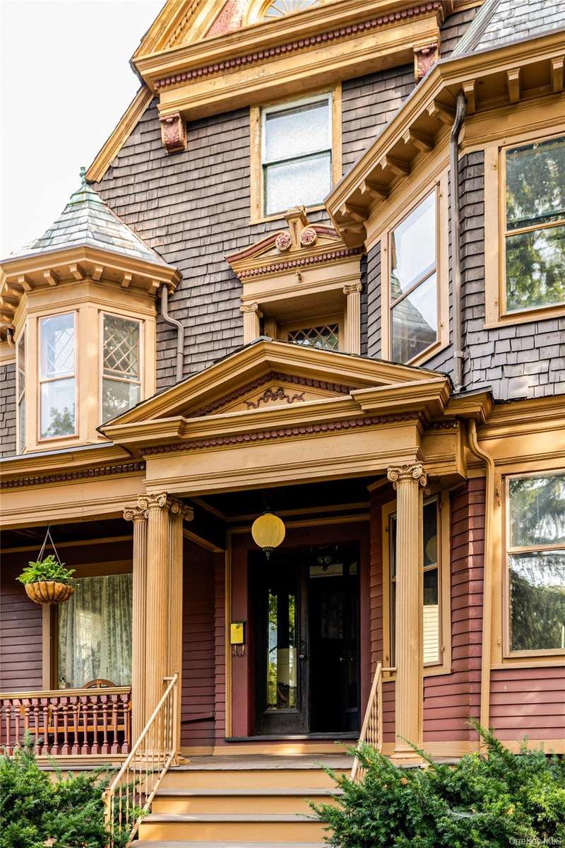 Welcome to Lloyd Manor, a distinguished 1899 residence in the heart of the Academy Street Historic District, designed for banker George Sherman by noted architect-in-residence Percival M. Lloyd. Combining elements of Greek Revival, Queen Anne, and Victorian design, this landmark home reflects the artistic ambition of Poughkeepsies Gilded Age, and has been lovingly preserved and updated for modern living. Inside, the gracious interior and layout reflects the architectural elegance of a bygone era. Ornamental egg-and-dart moldings, a bifurcated staircase with a vaulted plaster mezzanine, stained glass windows, and ornamental fireplaces speak to the homes craftsmanship and history. The main level includes a parlor, study, and dining room with original tiger oak and parquet floors, and a cheerful kitchen with an industrial Garland stove. Upstairs, four bedrooms and a full bath offer comfort, while a partially finished third floor provides flexible space for a studio, home office, or guest suite. Recent updates have respected the homes heritage while ensuring everyday ease: a new furnace, updated plumbing, refinished porch floors, restored slate roof, and a renovated marble bathroom with a custom viewing window that preserves rare 19th-century wallpaper.Outside, an in-ground pool, deck, and private gardens extend the living space, creating a retreat for entertaining or quiet relaxation. The one-car garage and freshly painted cedar-shake exterior complete the picture of thoughtful stewardship and care. Set along one of Poughkeepsies most storied avenues, Lloyd Manor offers a vibrant Hudson Valley lifestyle with historic charm. Residents enjoy strolls through Calvert Vauxs Springside Park, scenic bike rides across the Walkway Over the Hudson, and tennis at the Poughkeepsie Tennis Club. Minutes from Amtrak and the Hudson River, this stunning residence offers heritage, leisure, and timeless Hudson Valley appeal, all just 90 minutes from Manhattan.