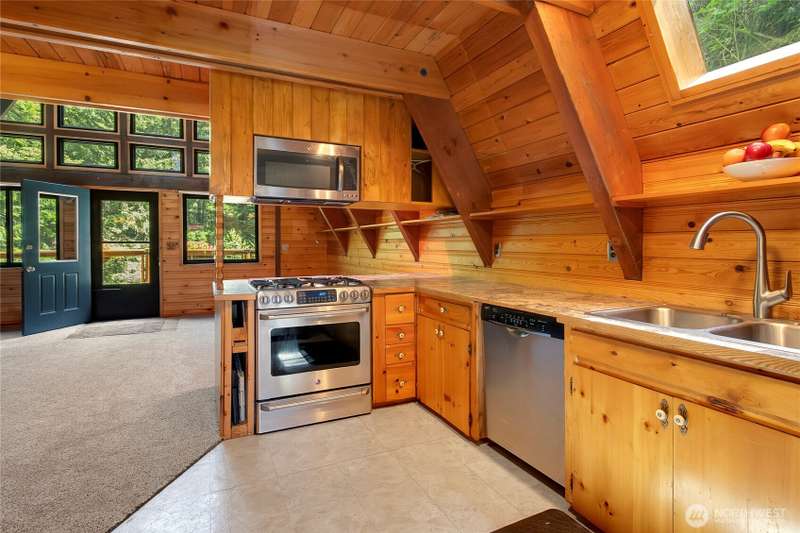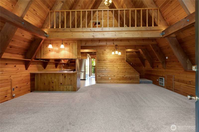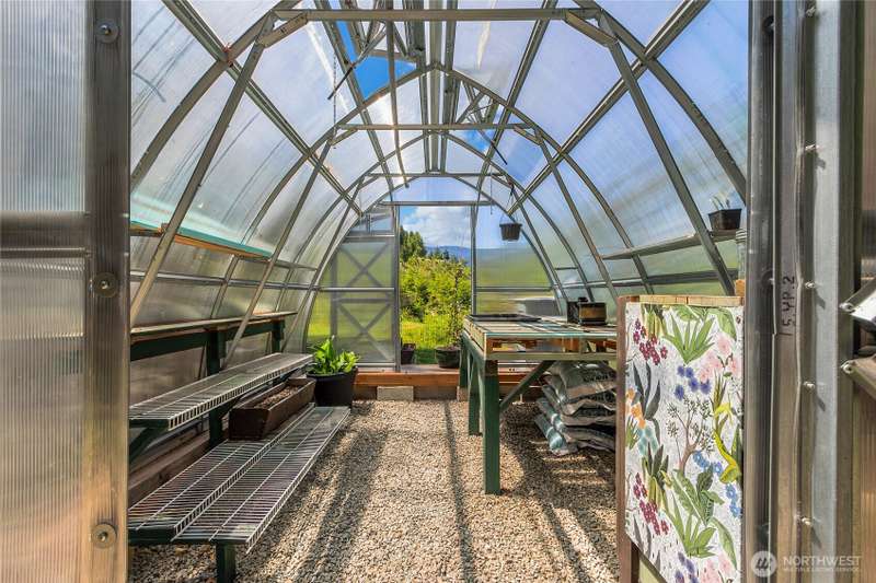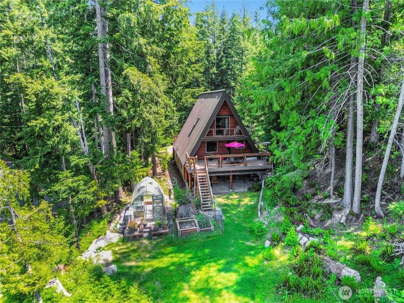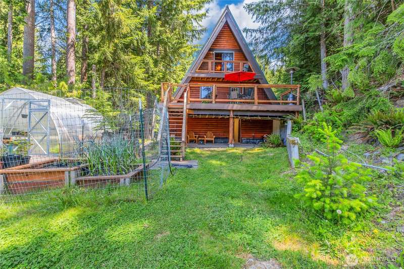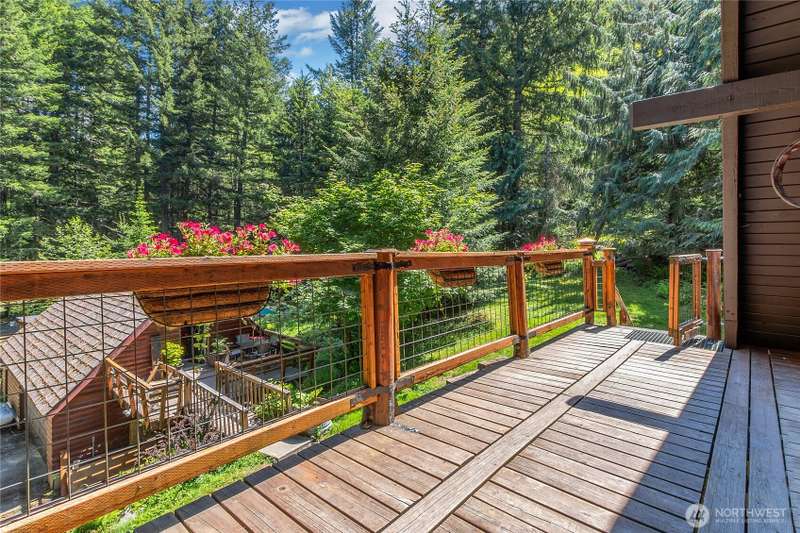 Amazing Crystal River Ranch mountain chalet w/ sunshine & sunsets enjoyed from elevated decks. 2 bedrooms, 2 baths, plus a big basement w/ 2nd kitchen, rec room, full bath, utility room & an extra room for hosting overnight guests. Main level features beautiful wood-lined walls & vaulted ceiling, kitchen, bedroom, bath, decks out front & back. Upper floor has a loft, bedroom w/ attic loft & balcony with the best territorial view around. Detached garage w/ carport, work room plus a bonus shop w/ deck over top. Lovely shade garden next to home. New greenhouse is also included. Crystal River Ranch HOA inc: clubhouse, caretaker, playground, ball fields, trail system & water. Crystal Mt Resort & Mt Rainier National Park just up the road.