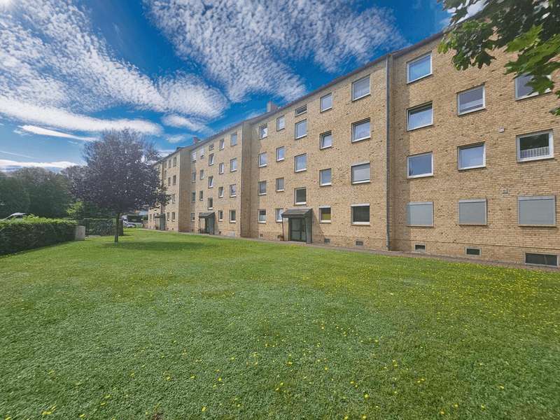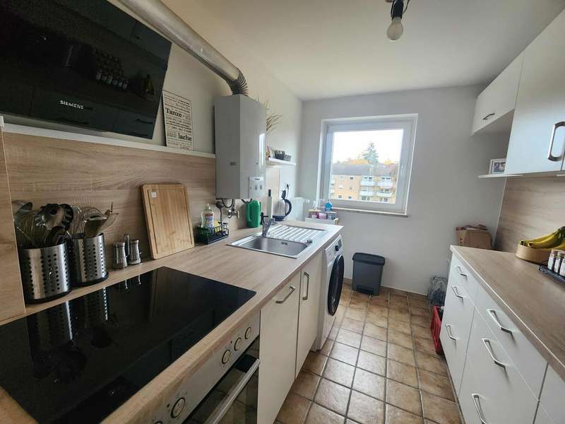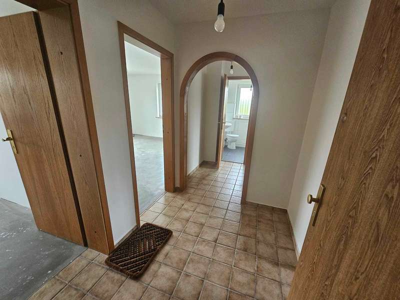 The spacious 3-room apartment with a living space of approx. 57 m² is located on the 3rd floor of an apartment building built in 1961. The property was last modernized in 2024 and presents itself in a good condition with normal furnishing quality. An elderly lady last lived here, so the oak doors and frames, for example, are still evidence of an older condition. In the meantime, all floors have been removed except for the stone tiles in the hallway, so that a new owner has a free choice of flooring. Sufficient sockets and network cables have also been installed in all rooms. The walls have been newly plastered and shine in a fresh white. The bathroom with window and shower was newly installed in 2024, including modern wall and floor tiles. The apartment impresses with its optimal room layout, consisting of two bedrooms, a bright living room with access to the balcony, a kitchen with approx. 15-year-old fixtures and fittings and a bathroom. The windows are double-glazed, white and made of plastic (from 2014 & 2019) and are complemented by manually operated shutters. The living room also has an awning on the window/balcony. The apartment building consists of a total of eight apartments and is located in a condominium community with 64 units. A large garden plot is available for communal use. Each resident also has their own cellar room and a lockable compartment in the attic, including this apartment, which is located on the third and therefore last floor of the building. This means that there are no annoying neighbors above you. There are plenty of parking spaces in the street, which can be used free of charge. Overall, the property presents itself as a solid, well-maintained home with functional furnishings and a pleasant living atmosphere. The central location and good room layout make the apartment an attractive proposition for singles, young couples or investors. If you are interested, we look forward to hearing from you personally!
