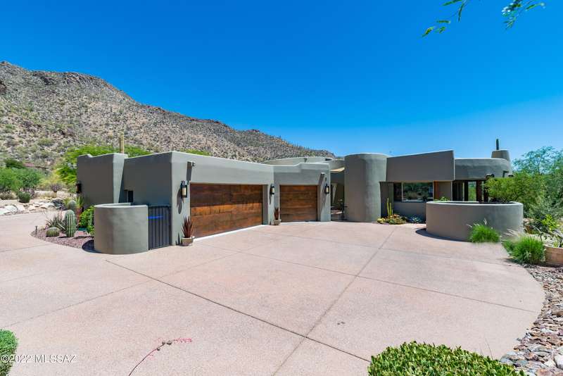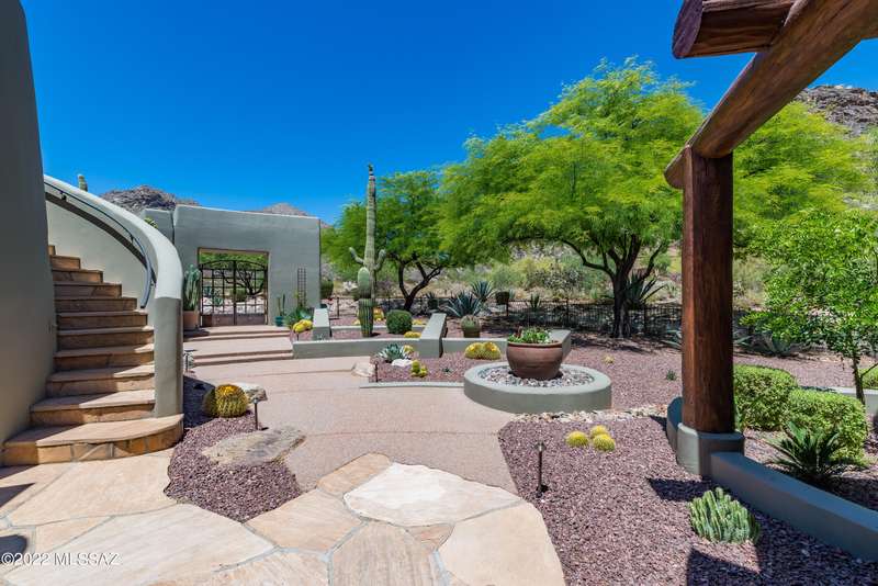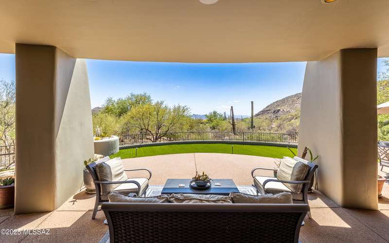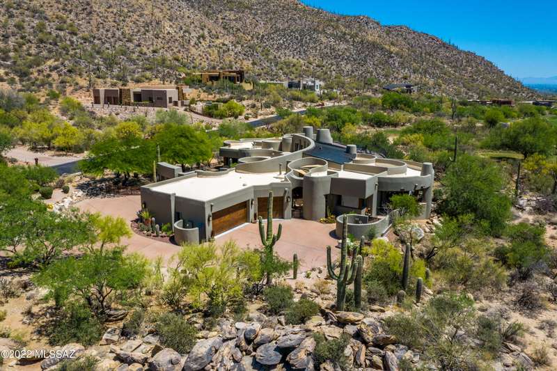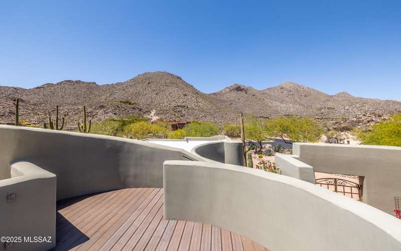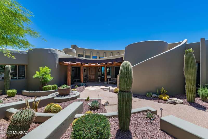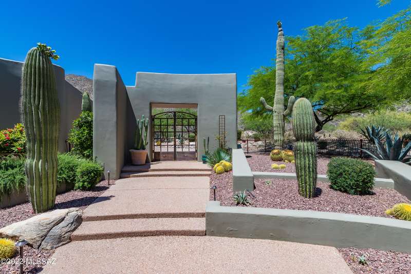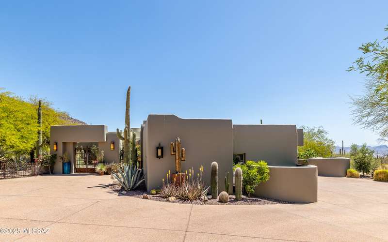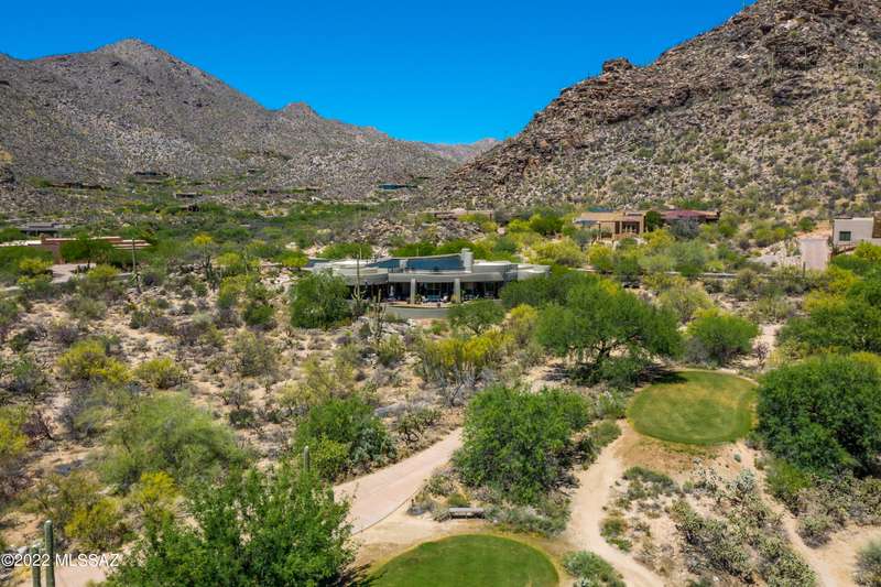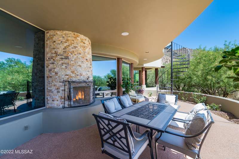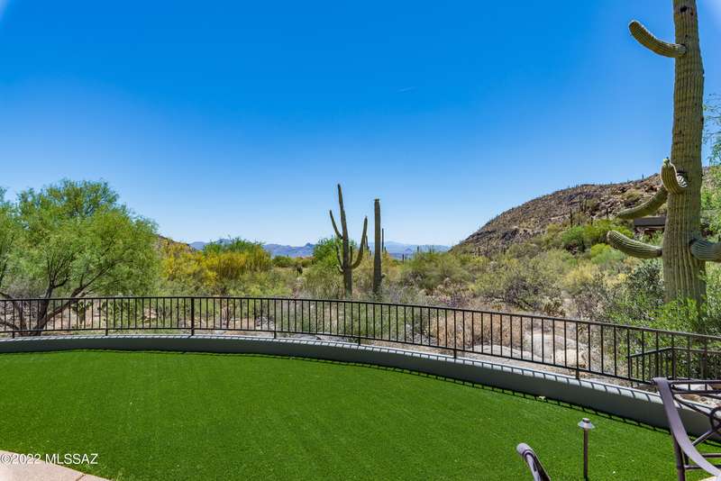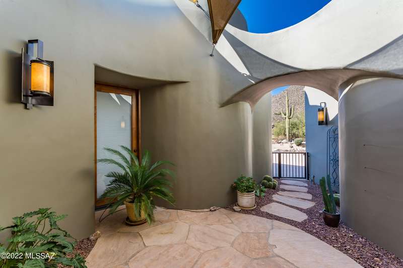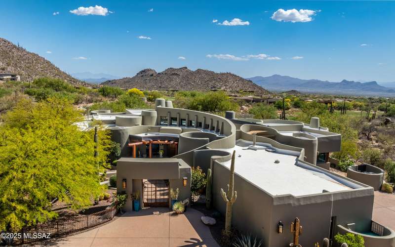 Stunning Kevin Howard Design Custom Masterpiece -rare to find architectural quality & craftsmanship like this anymore. The curves & flow of the halls & rooms bring peace & tranquility to this exquisite custom home filled w/uniqueness & richness. Stunning wood beam ceilings, architectural designs blending and breaking away as you ebb from one area of the home to another. Soft flowing halls, inviting rooms, a spacious peaceful gated front courtyard, wrap around patio w/mesmerizing golf, nature & mountain views + a mediation patio -like living at a destination spa resort. A true quality built home w/character. Spacious roof patio/deck that highlights endless golf, mountain & sunset views. Stacked stone outdoor fireplace, built in BBQ station, beautiful artificial turf. Gorgeous home!