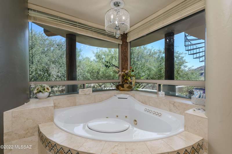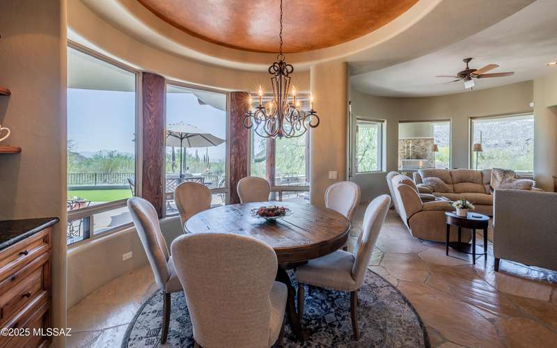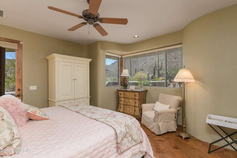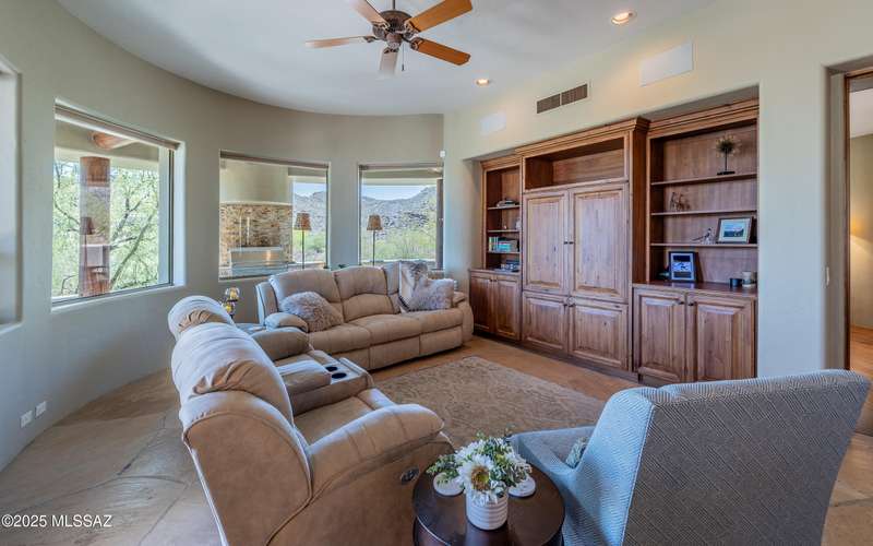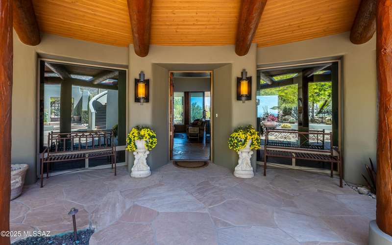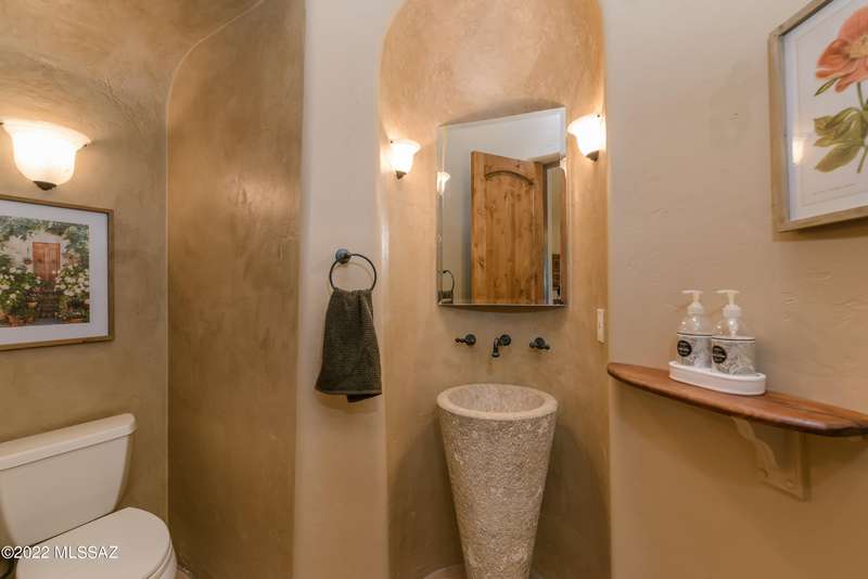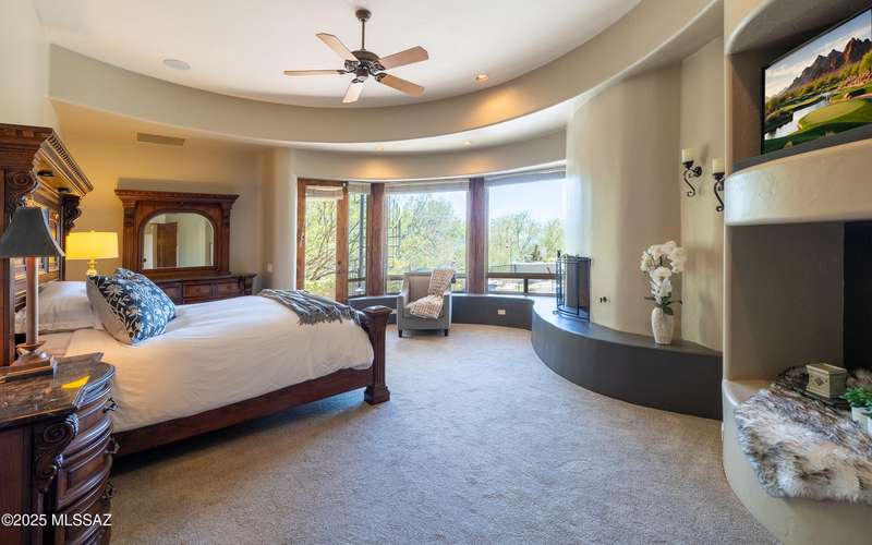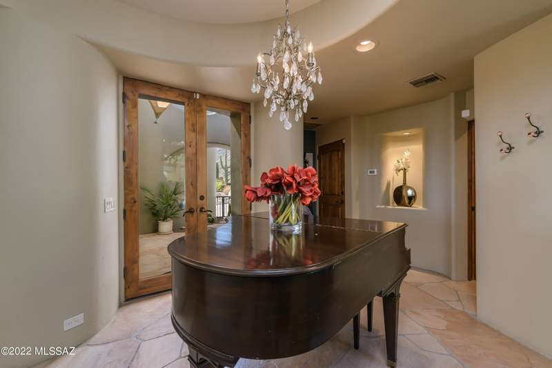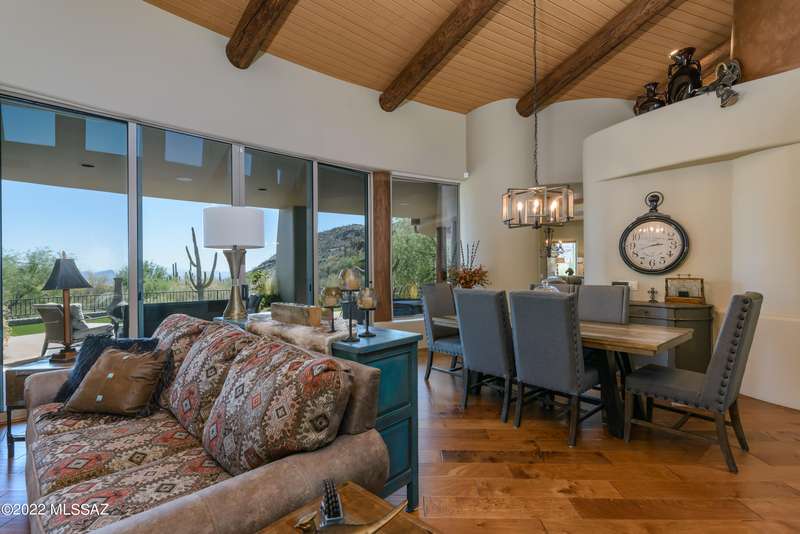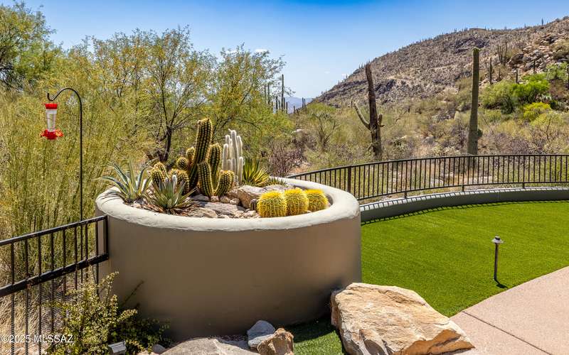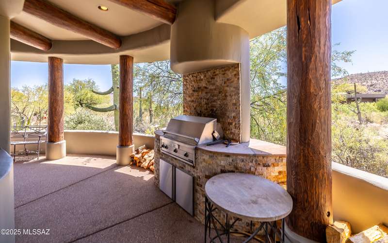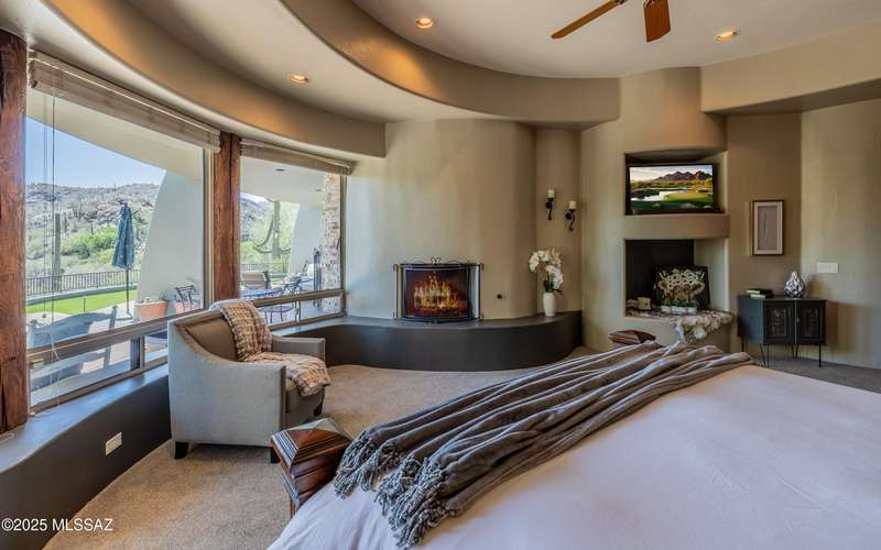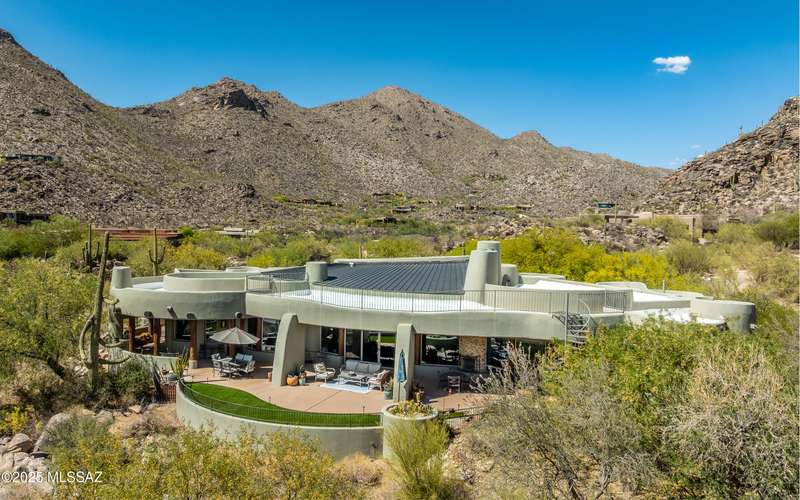 Stunning Kevin Howard Design Custom Masterpiece -rare to find architectural quality & craftsmanship like this anymore. The curves & flow of the halls & rooms bring peace & tranquility to this exquisite custom home filled w/uniqueness & richness. Stunning wood beam ceilings, architectural designs blending and breaking away as you ebb from one area of the home to another. Soft flowing halls, inviting rooms, a spacious peaceful gated front courtyard, wrap around patio w/mesmerizing golf, nature & mountain views + a mediation patio -like living at a destination spa resort. A true quality built home w/character. Spacious roof patio/deck that highlights endless golf, mountain & sunset views. Stacked stone outdoor fireplace, built in BBQ station, beautiful artificial turf. Gorgeous home!