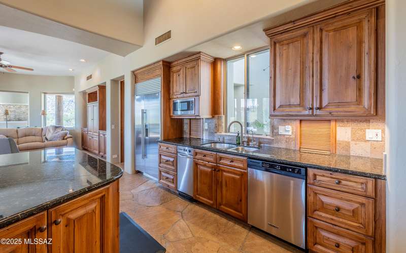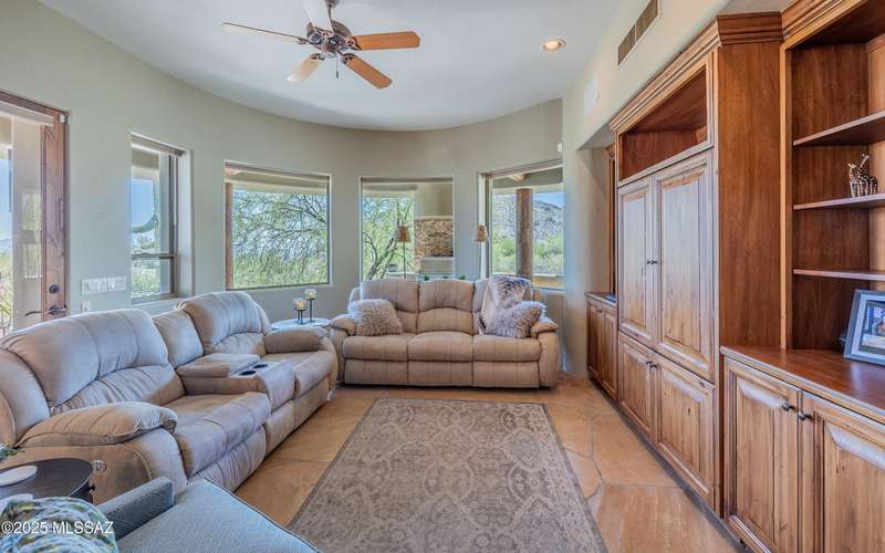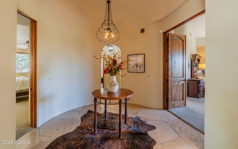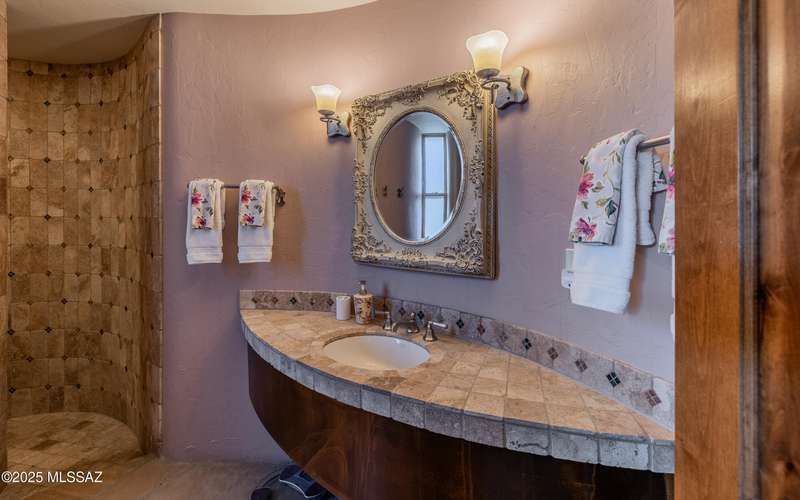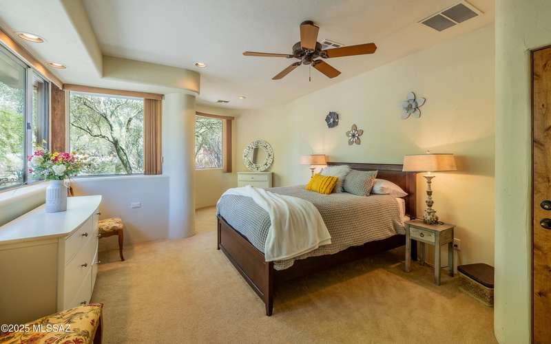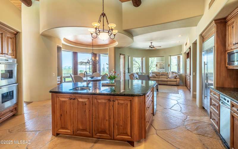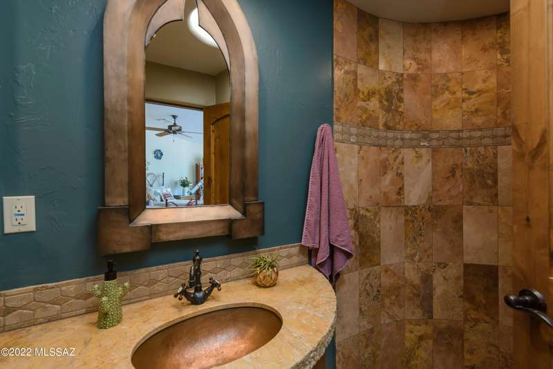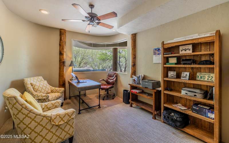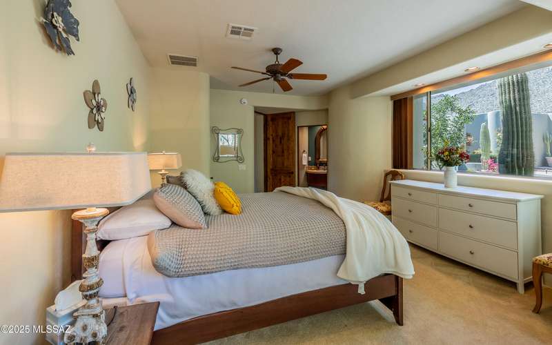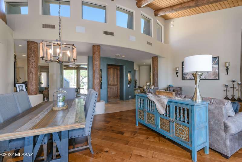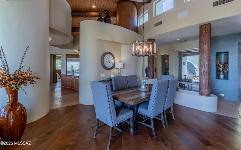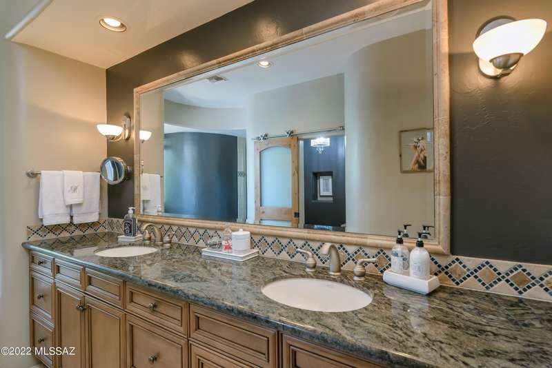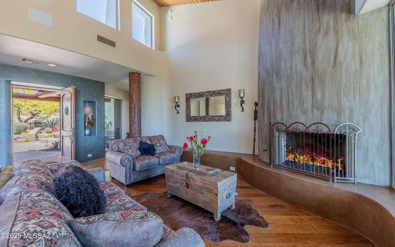 Stunning Kevin Howard Design Custom Masterpiece -rare to find architectural quality & craftsmanship like this anymore. The curves & flow of the halls & rooms bring peace & tranquility to this exquisite custom home filled w/uniqueness & richness. Stunning wood beam ceilings, architectural designs blending and breaking away as you ebb from one area of the home to another. Soft flowing halls, inviting rooms, a spacious peaceful gated front courtyard, wrap around patio w/mesmerizing golf, nature & mountain views + a mediation patio -like living at a destination spa resort. A true quality built home w/character. Spacious roof patio/deck that highlights endless golf, mountain & sunset views. Stacked stone outdoor fireplace, built in BBQ station, beautiful artificial turf. Gorgeous home!