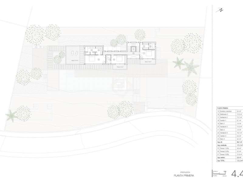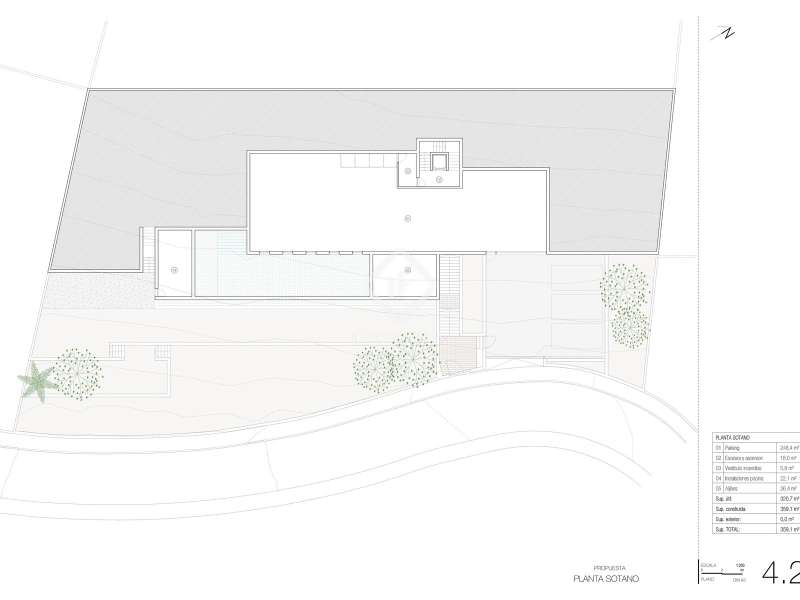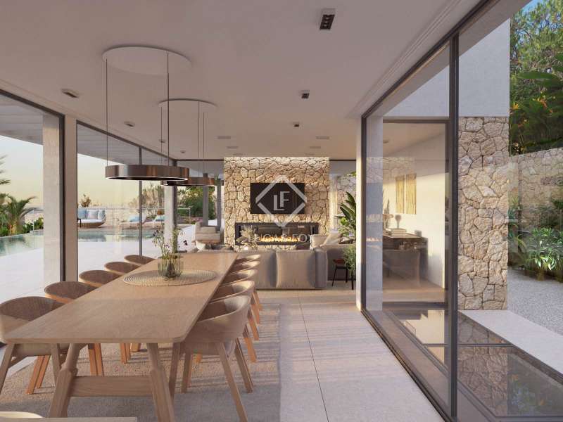 A unique 1,875 m² plot for sale, with an approved project for the construction of a luxurious 616 m² villa in one of the most sought-after areas of Mallorca, just 10 minutes from Sóller and 20 minutes from Palma. The villa is spread over three floors, designed to offer maximum comfort and luxury. The ground floor houses a large garage with capacity for several cars and a multipurpose area that can be used as a gym, spa, or even a guest apartment. The first floor offers a family area which is accessed via an impressive staircase that leads to a spacious living room with a fireplace, a guest toilet, an en-suite bedroom, and a fully equipped kitchen integrated with the dining room, which opens onto a private terrace and a dreamy infinity pool. On the second floor, we find three large suites, all with dressing rooms, and a large terrace offering stunning views, perfect for enjoying the surroundings. The entire project is designed in a modern style, but with traditional Mallorcan materials that give this property a unique identity, making it one of the most exclusive in the area. Please contact us for further information.