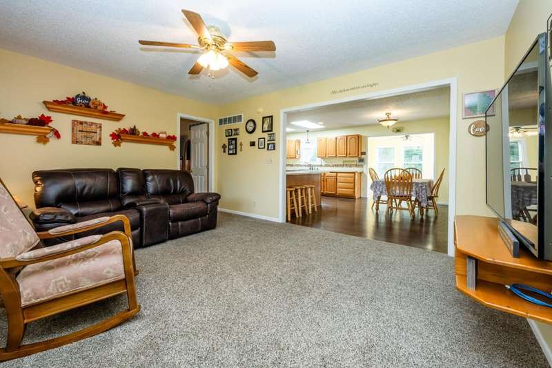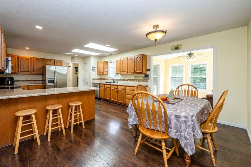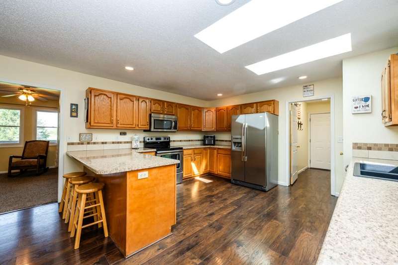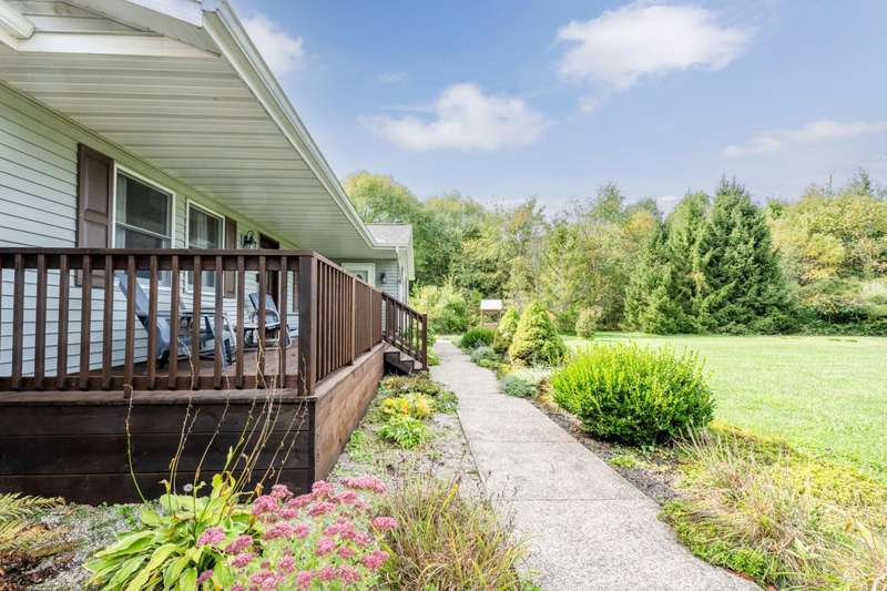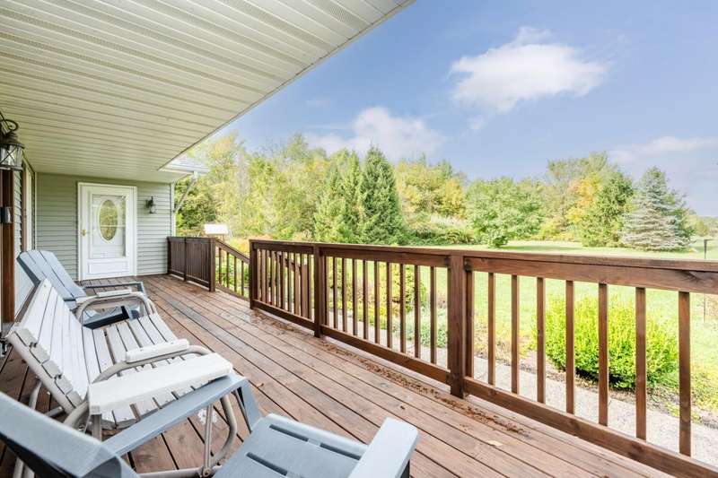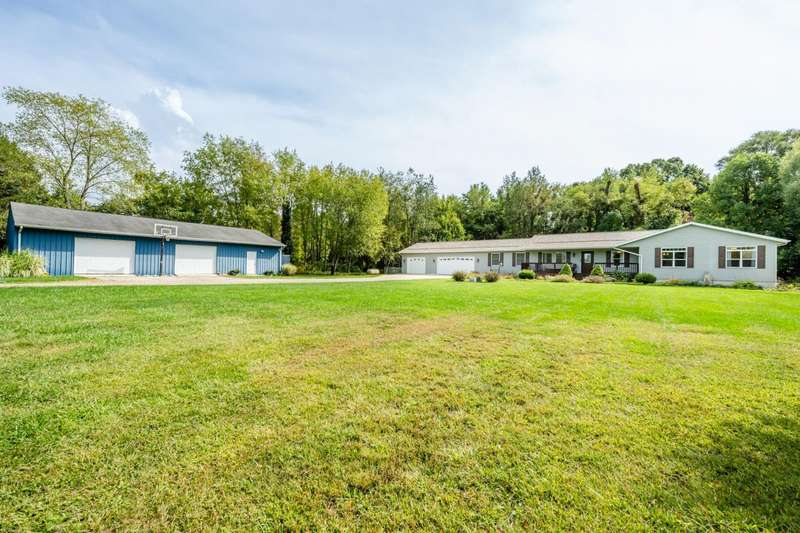 Nestled on nearly 15 peaceful acres, this spacious ranch offers the perfect blend of comfort, functionality, and country living. The sprawling floor plan features three bedrooms, including two master suites, with the option for a fourth bedroom in the partially finished basement. A bright sunroom and a private addition create versatile living spaces?ideal for extended family or a guest retreat. The home showcases granite countertops, luxury wood floors, and the convenience of main-level laundry thoughtfully placed at the heart of the home. Step outside to enjoy three decks and a concrete patio, perfect for relaxing or entertaining.A large pole barn completes the property, equipped with concrete floors, electricity, a furnace, and even a car lift?all included. With sound mechanicals and serene surroundings, this home is a rare opportunity to enjoy country living with modern amenities.