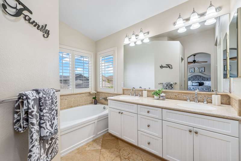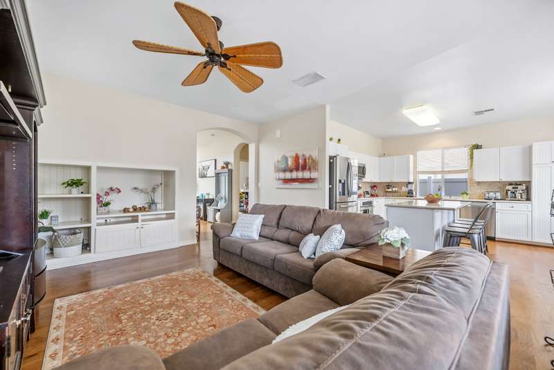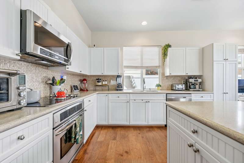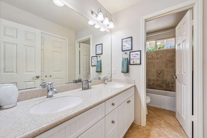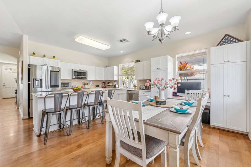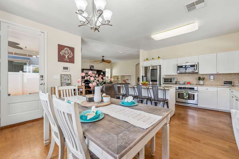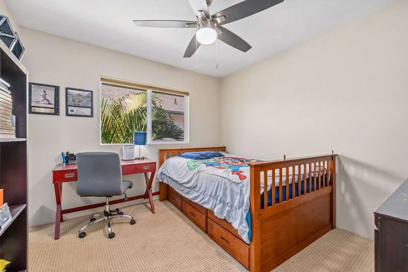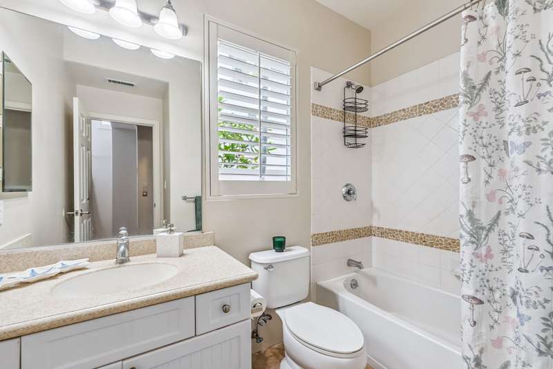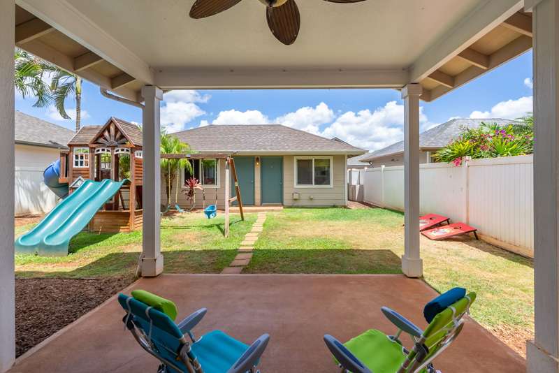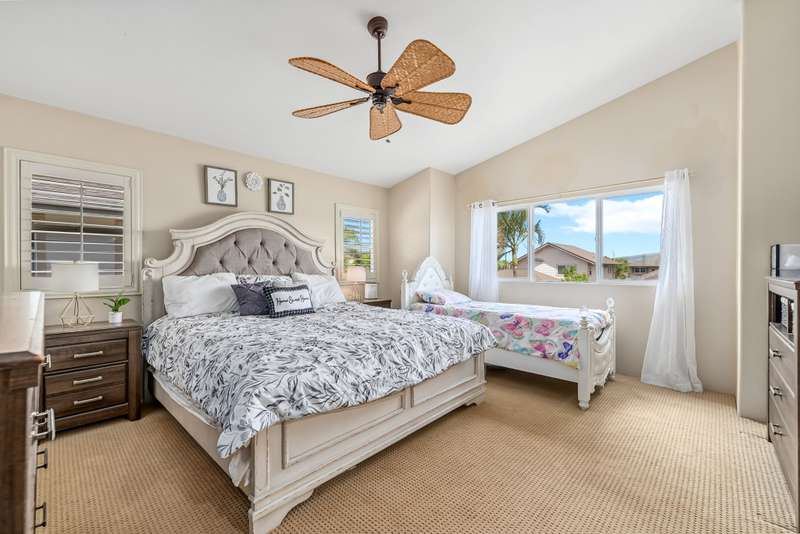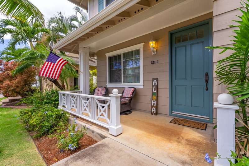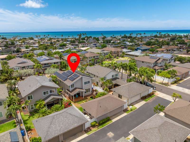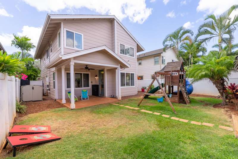 Welcome to this expansive and flexible 5-bedroom + den, 4-bath home, with 2,436 sq feet of total living space. The main home offers a first-floor bedroom and full bath, two living areas, and an open kitchen/dining space. Upstairs features a spacious primary bedroom with an en-suite bathroom plus walk-in closet, two additional bedrooms, and a "den" with a pocket door—ideal as an office or guest room, currently used as another bedroom. A detached 240 sq ft studio with bath, wet bar, and split AC offers great potential as an office, in-law suite, or guest room. With nearly 2,200 sq ft in the main home and a versatile layout, this property is perfect for multi-generational living or those needing extra space to host, work, or relax. A leased 56-panel PV system helps keep energy costs down. On a 5,100+ sq foot lot, tucked away in a quiet corner of Ocean Pointe with no through traffic, and situated down the street from a park and another green space, this home offers incredible value! There's also easy access to Wai Kai Lagoon for fun, Laulani Village Shopping Center for groceries and gas, and Ka Makana Ali'i Mall for more shopping and dining options.