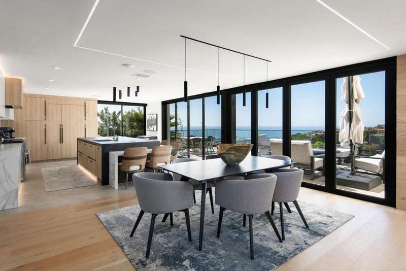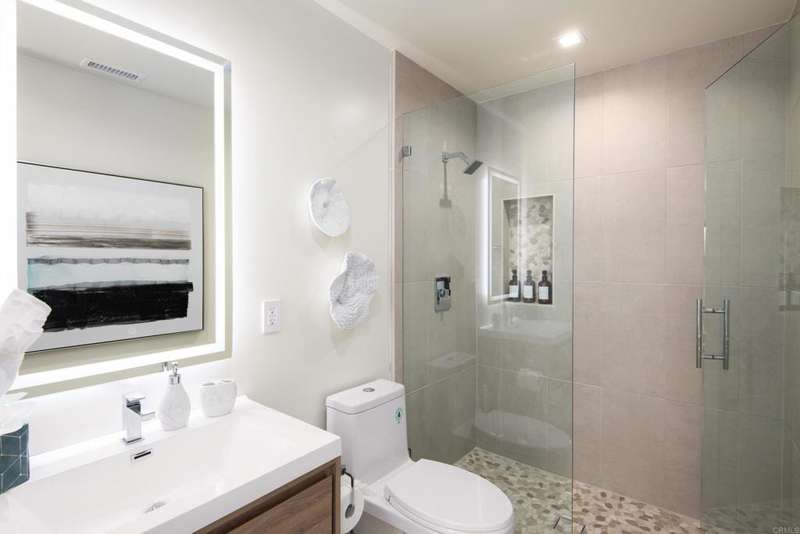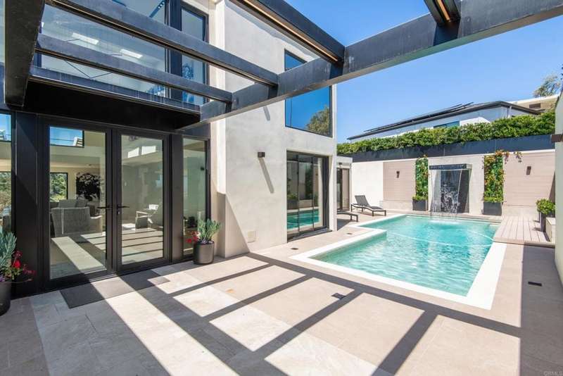Perched above La Jolla Shores with sweeping coastal views, this 5BR/6BA sanctuary embodies relaxed California sophistication and seamless indoor-outdoor living. Nearly all spaces are on the main levelincluding the ocean-view primary suitewhile a private upper-level guest wing gives visitors their own coastal retreat. Every bedroom has an en-suite bath, and multiple view decks offer endless moments to savor ocean breezes and fiery sunsets. Behind the gated entry, a serene courtyard with a pool and waterfall sets the tone for laid-back luxury. Inside, walls of glass and multiple La Cantina door systems open the main living areas completely to an expansive view patioperfect for sunset dinners, weekend gatherings, or quiet mornings with coffee overlooking the shoreline. The chefs kitchen with top-tier finishes flows into the dining and living spaces, where a striking glass-encased wine cellar becomes both a focal point and a conversation piece. On the lower level, a private wellness and leisure space awaits, complete with a gym space, sauna, jacuzzi, and a game room with pool table and TVideal for post-workout soaks, watching the big game, or unwinding with friends. A terraced hillside orchard of grapes, apples, citrus, and avocado trees brings a taste of California to your backyard. Renovated throughout in 2020, this turnkey home invites you to settle in and start living the La Jolla lifestylejust minutes from beaches, dining, top schools, and freeway access.