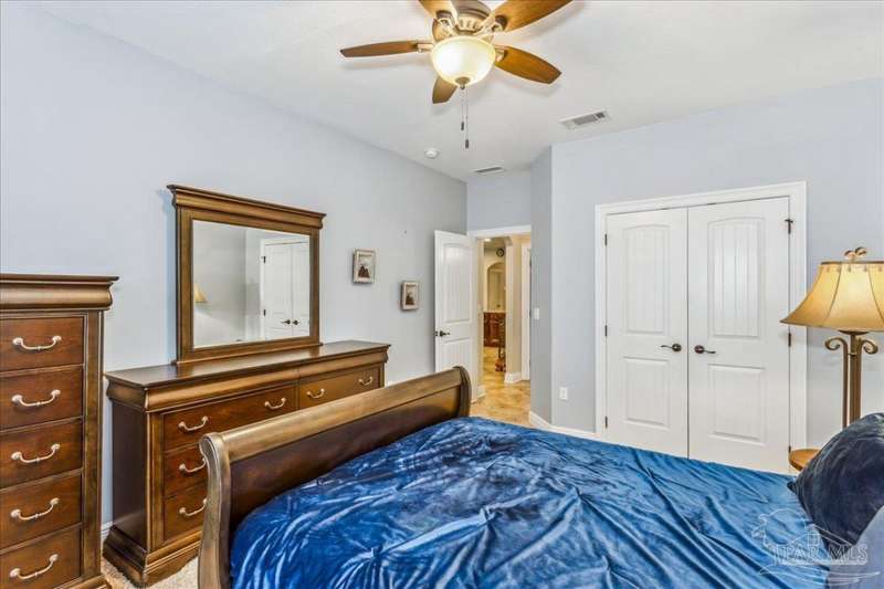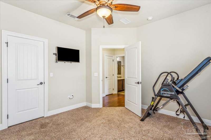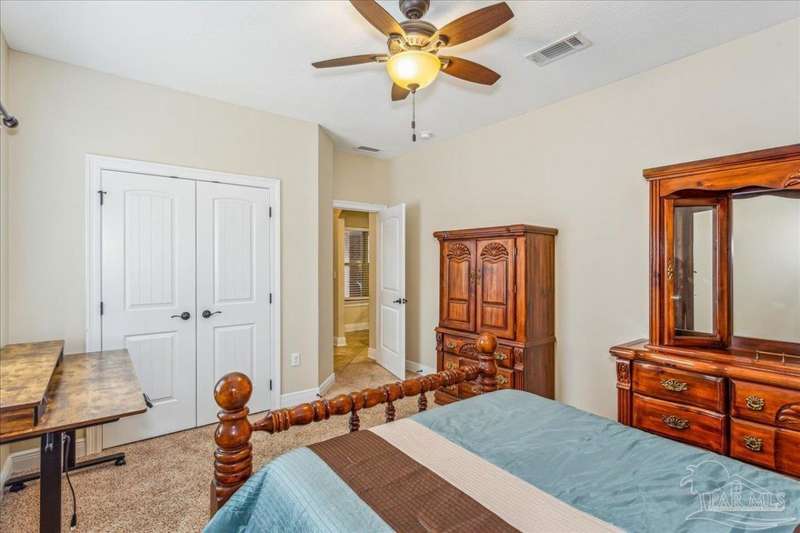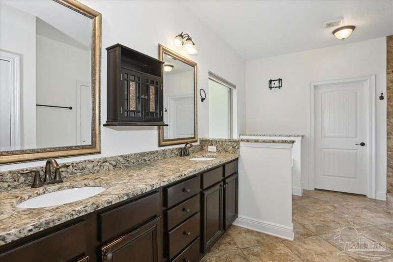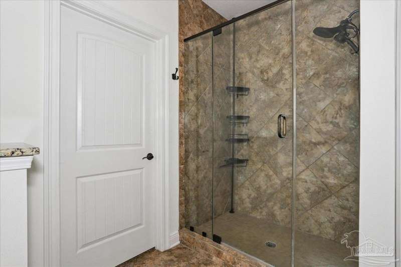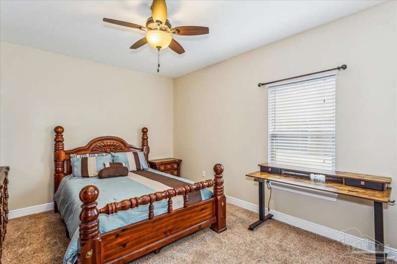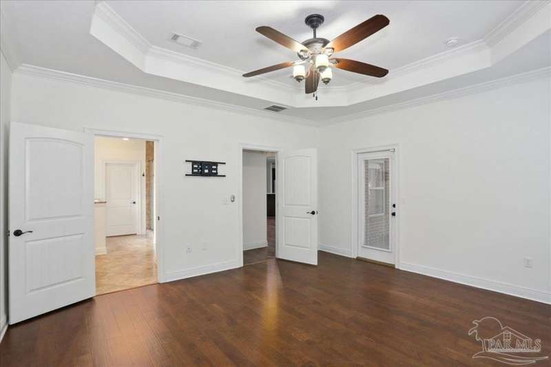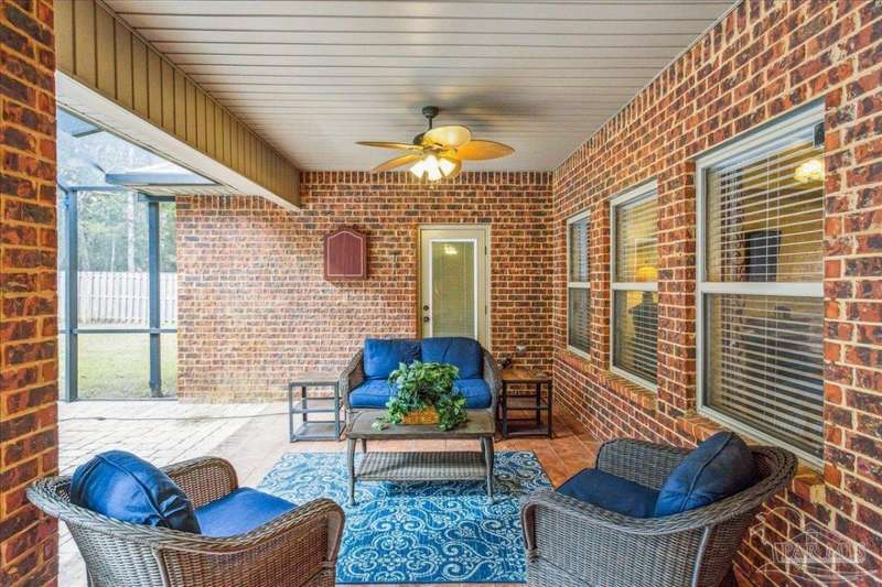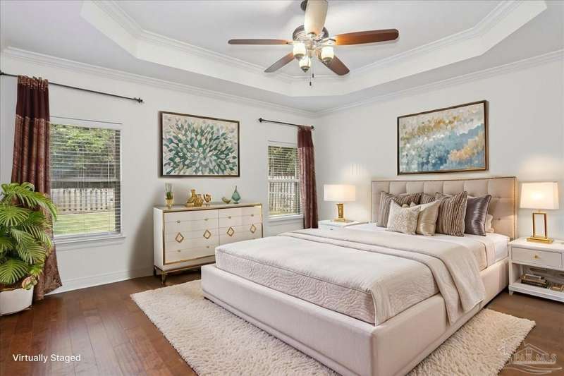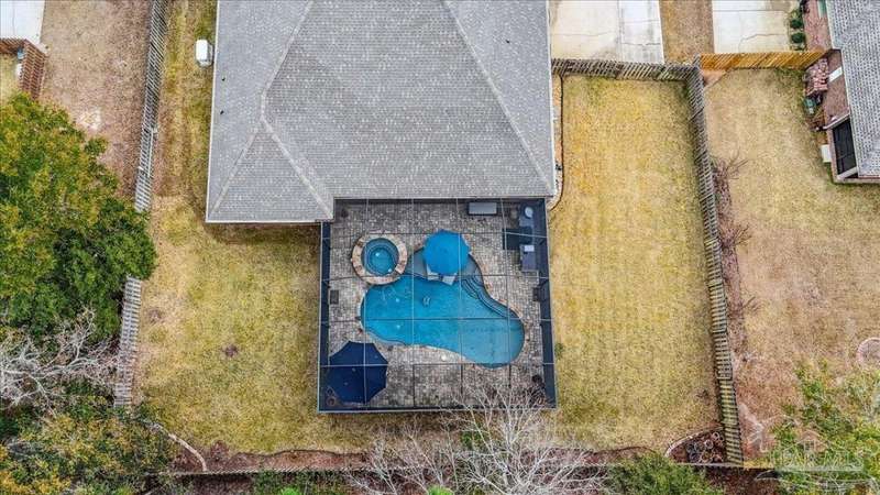 EXQUISITE LIVING in this premier one-story, pool home home located in the gated community of Nature Trail. Nicely positioned against the greenbelt for desirable backyard privacy. You will find a superior level of craftsmanship throughout this home which includes, beautiful hand scraped hardwood flooring, custom cabinetry, detailed trim, crown molding and granite stone in the kitchen and bathrooms. Truly a well-planned spacious home featuring a newer whole house generator, split floorplan, office space, fully appointed gourmet kitchen with gas range, beautiful primary bedroom ensuite with elevated ceiling, additional bedrooms and room for in-laws. The spacious living room provides a seamless transition to a stunning designed outdoor space with swimming pool/hot tub accented with pavers and covered lanai and extra yard space to accommodate for pets or swing set. The patio area has ample room for large gatherings perfect for entertaining with an outdoor kitchen or relaxing with friends and family around the swimming pool/hot tub. This property includes additional recreational opportunities, tennis and pickleball courts, community swimming pool, basketball court, fitness center, 5 miles of hiking trails and ponds to fish. Located only 2.5 miles to the interstate and less than 30 minutes to Pensacola's award winning sandy white Beach!