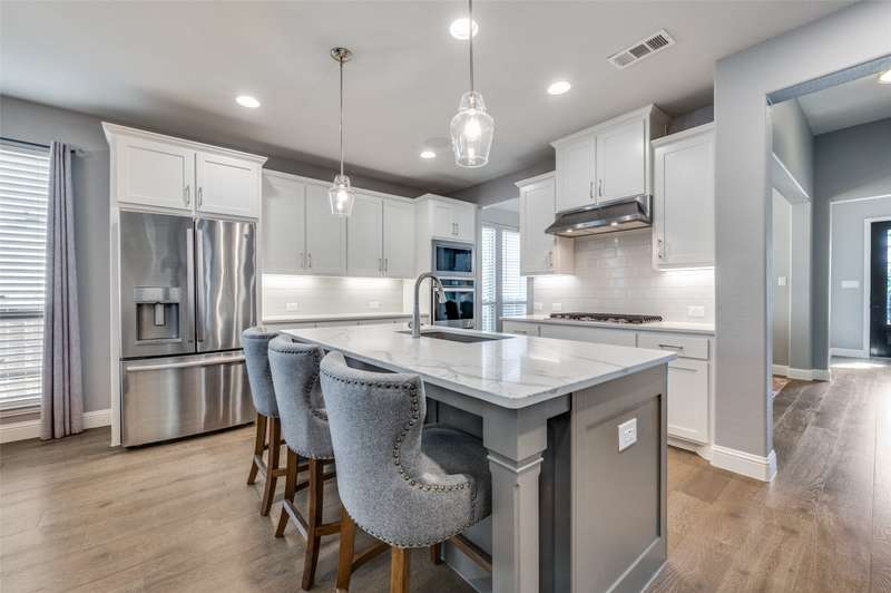 Welcome to Star Trail Prime Prosper Location!This breathtaking American Legend Home offers 4 spacious bedrooms and 3 full baths, combining elegance, comfort, and convenience in one of Prospers most desirable neighborhoods.From the moment you arrive, pride of ownership is evident throughout. The home has been meticulously maintained, with numerous upgrades including brand-new stainless-steel appliances, fresh interior paint, new wood paneling, and a recently replaced air conditioning system. A custom wood shutter adds privacy, while the extended covered patio invites outdoor relaxation.Step inside to an open, light-filled floor plan featuring soaring ceilings, rich wood flooring, and refined finishes. The main living area flows seamlessly into a chefs kitchen equipped with premium appliances, generous counter space, and a large center islandperfect for cooking, gathering, and entertaining. The adjacent dining area offers an ideal setting for both everyday meals and formal occasions.A dedicated study provides a quiet workspace or home office, while the luxurious primary suite serves as a private retreat with dual sinks, a large walk-in shower, and two master walk-in closets. Upstairs, a spacious game or media room offers flexible space for movie nights or play, along with a large bedroom featuring an ensuite bath.Additional highlights include Zoned HVAC for energy efficiency, Paneled walls and wood flooring throughout. Stone-lined side drainage for a clean, finished yard. Excellent accessibility from the Dallas North Tollway.Residents of Star Trail enjoy resort-style amenities including pools, tennis courts, walking trails, playgrounds, and the spectacular Star Trail Clubhouse.This beautifully upgraded home is truly move-in readyoffering a rare blend of style, functionality, and community living.
