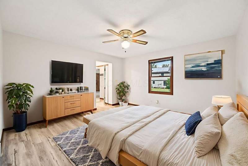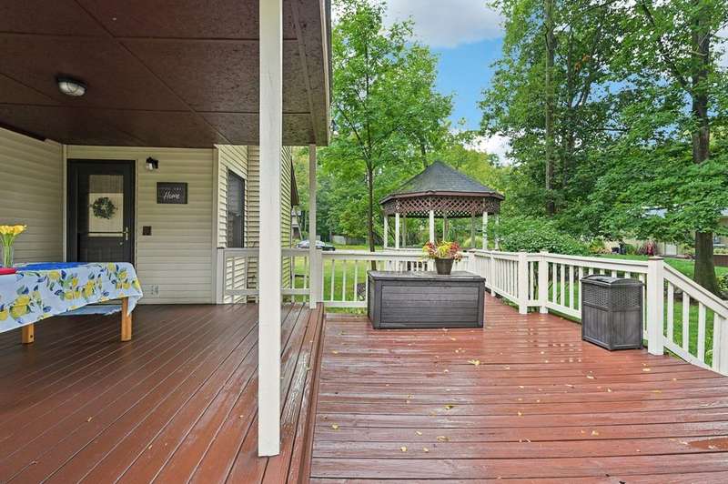 Beautifully updated ranch in Etna, OH, blending modern comfort with flexible living on a quiet cul-de-sac. Set on a 0.38-acre lot, this move-in-ready home offers 4 bedrooms and 2.5 baths, with NEW luxury vinyl flooring throughout. Laundry includes a gas dryer and washer. Efficient central heat and A/C, both installed within the last 5 years, deliver year-round comfort.The finished basement adds 600+ sq ft with fresh paint, new flooring, a renovated half bath, a spacious bedroom, and a large living area?ideal for a guest suite, office, or rec room. There's also external deadbolt keyed access, 500+ sq ft of unfinished storage, and clear potential to convert into a rental with minor modifications. A 1/2 HP Blue Angel Pro Series sump pump combo with dual battery backup (2024) provides peace of mind.Outside, enjoy low-maintenance vinyl siding, a newer asphalt shingle roof (within 5 years), and an attached 2-car garage. Entertain or unwind across a 196 sq ft gazebo, a covered 12x14 deck, and an open 12x26 deck overlooking the yard and cul-de-sac. Storage is abundant with a 10x24 Amish-built shed (2018) that complements the home and an 8x12 shed for tools. Fresh landscaping boosts curb appeal.This turnkey gem offers modern updates, flexible space, and charm near Columbus. Schedule a showing today!