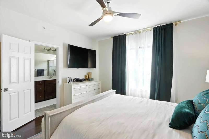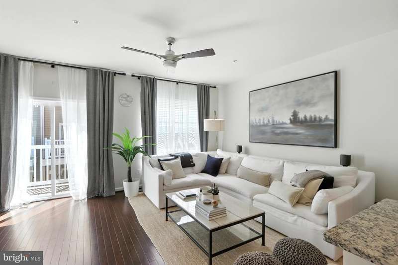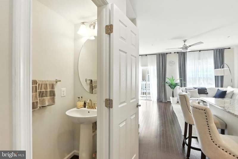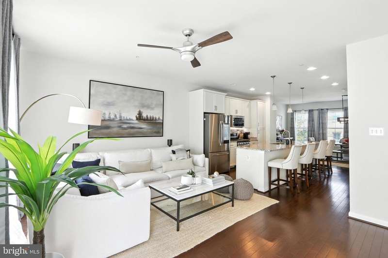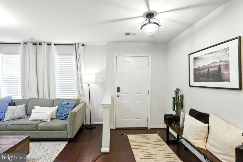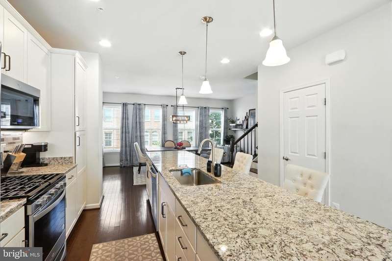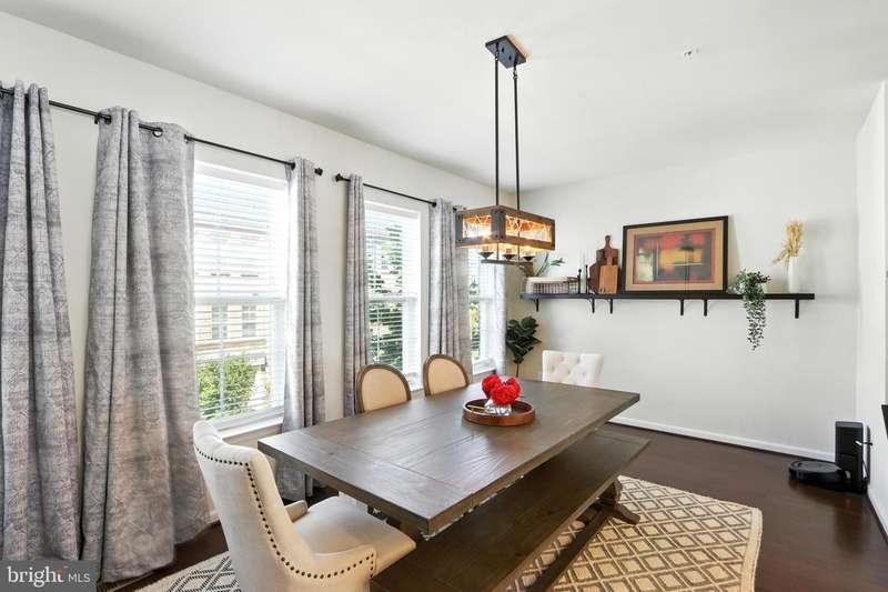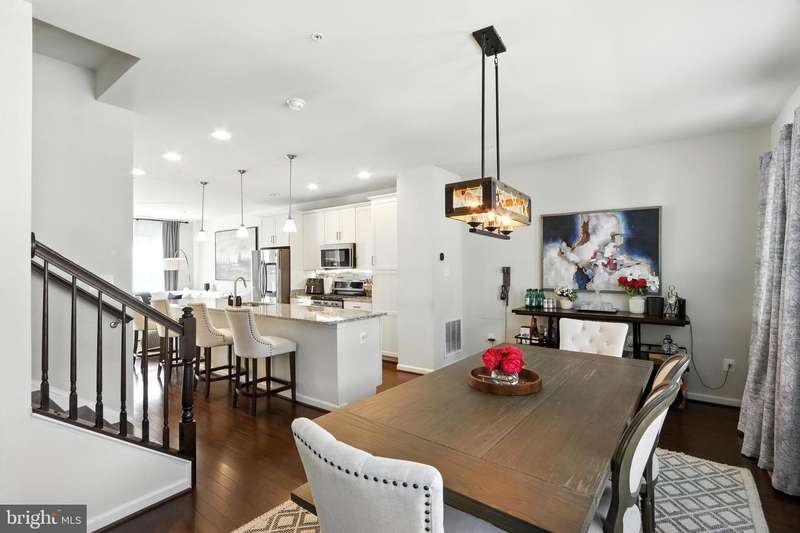 Welcome Home to this immaculate 3 level townhome. Solar equipped and electric bill can be as low as $5.00 per month. The first level. Includes a welcoming family room, powder room. and foyer area to greet guests. Perfect location for an office or flex room.The bright and open second floor offers a state of the art kitchen, dining room, living room. and powder room. Perfect flow for entertaining and to relax. The Generous kitchen is equipped with upgraded appliances including Samsung refrigerator with smart video and wifi, large center island seats 6 or more, and plenty of storage. Living room features a gas fireplace and custom built-ins. Open dining room with direct access to deck. Upstairs, the primary suite features a large custom walk-in closet and ensuite bath with duel sinks. Two additional bedrooms and bath. Convenient laundry with wifi equipped washer and dryer. Hardwood floors on all 3 levels. Pull into your 2 car garage, equipped with electric charging station & epoxy floors. Located in Brick Yard Station, this community has everything , full-service clubhouse, gym, pools and shops, you are walking distance to the Marc commuter train and public transportation.