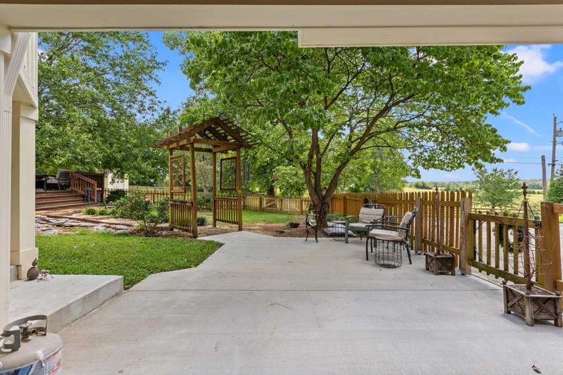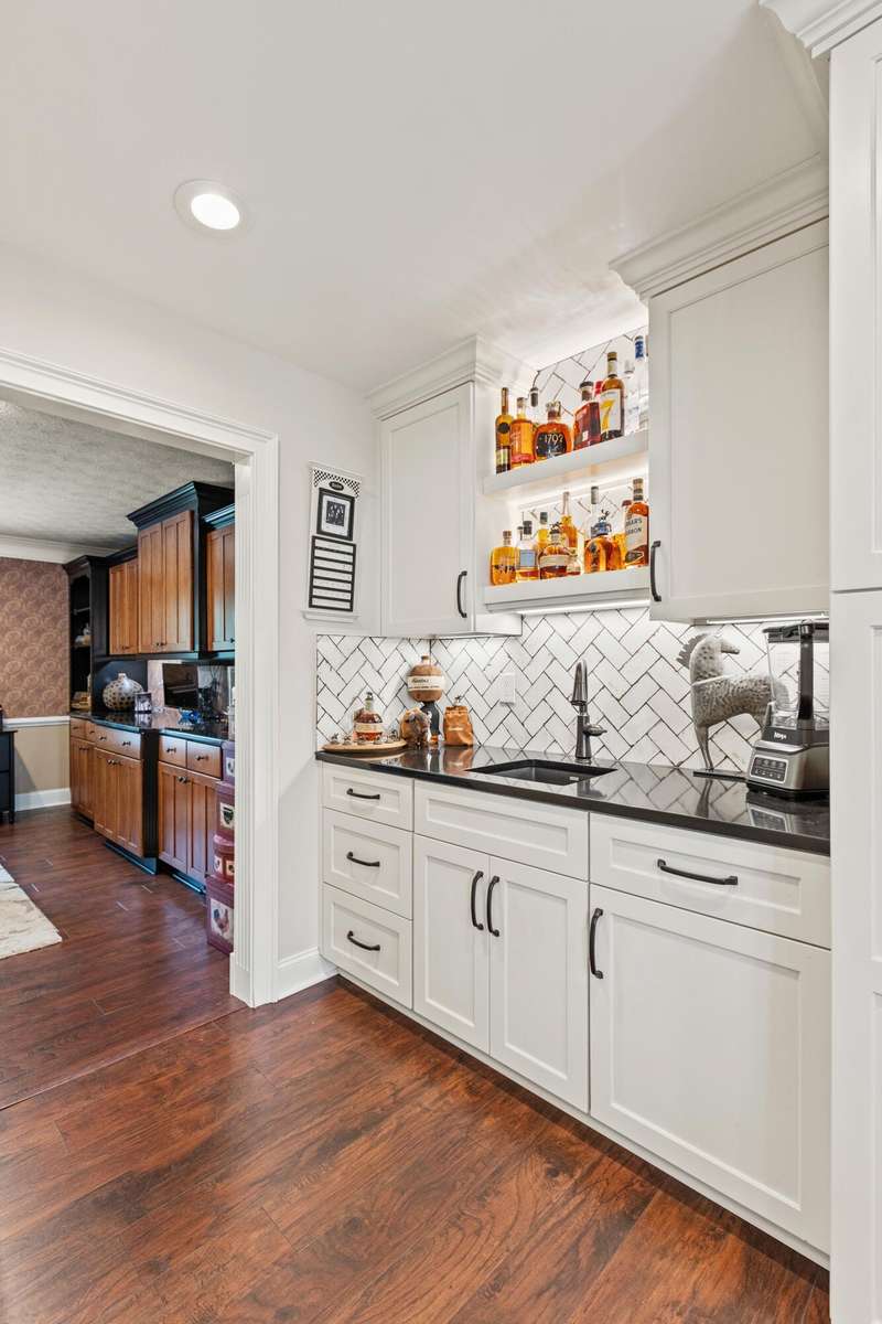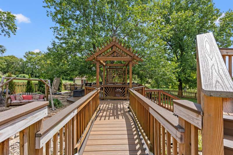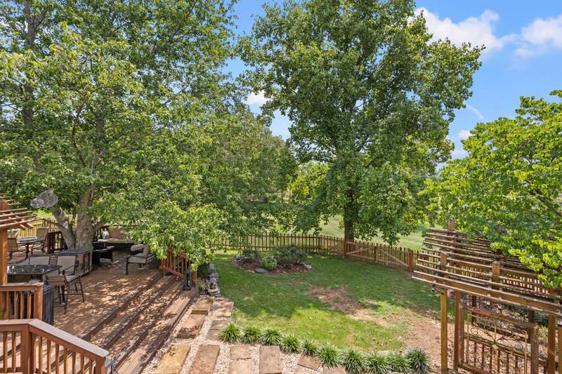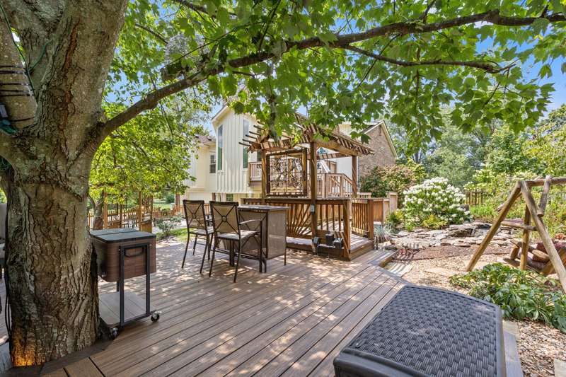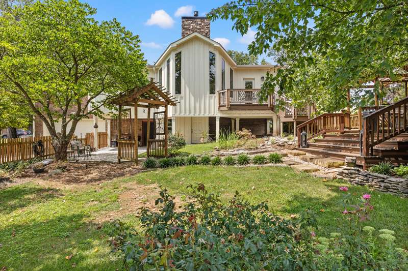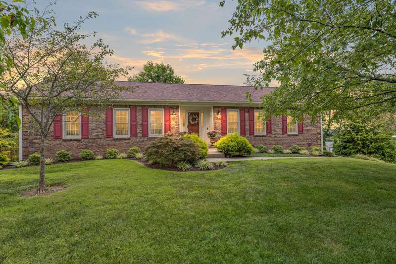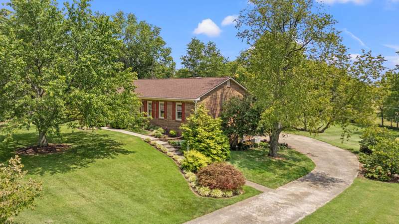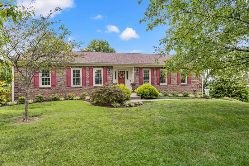Set on over an acre in Nicholasville, this home blends thoughtful design with functional living. The main level features a vaulted great room with engineered hardwood and a fireplace with fire glass, flowing seamlessly into a kitchen designed for gatherings, complete with an oversized island seating six, a five-burner gas cooktop, tile backsplash, and quartz countertops. Bourbon and coffee bars near the kitchen add an extra touch of convenience. The walk-out basement, with updated LVL flooring, offers potential for an in-law quarters and includes a second fireplace with ventless gas logs. Outdoor spaces are designed for entertaining and relaxation, with landscaped patios, composite decks, and a water feature. Inside, custom woodwork, built-ins, and laundry on both floors combine style and practicality. Recent upgrades include Gilkey low-E windows with a lifetime warranty, Rhino Shield paint on the addition (25-year warranty), an owned security system, updated insulation, and a Generac whole-house generator. Every detail supports comfortable, versatile living in a desirable setting.