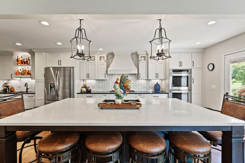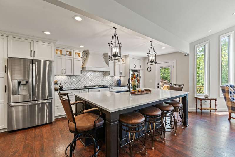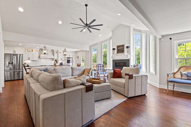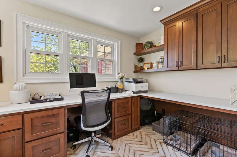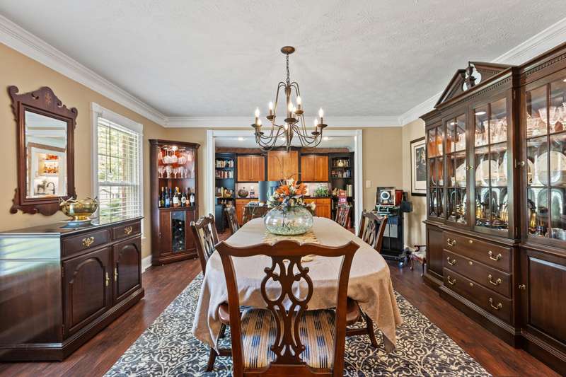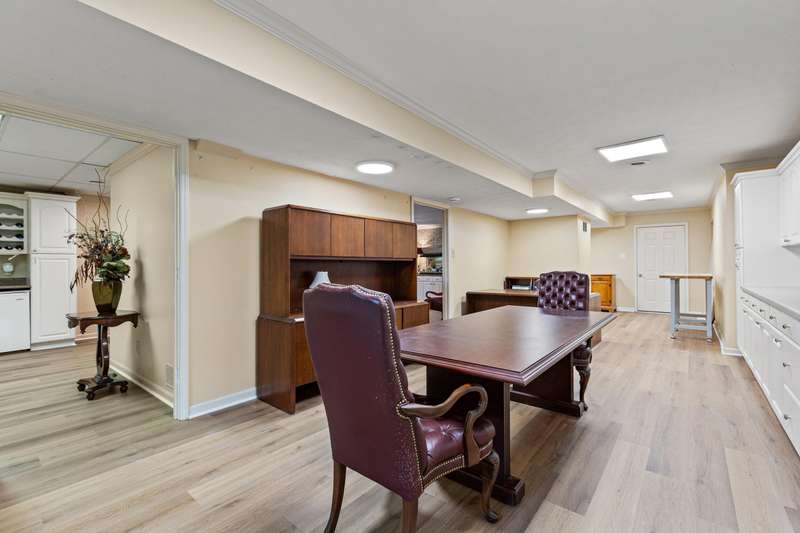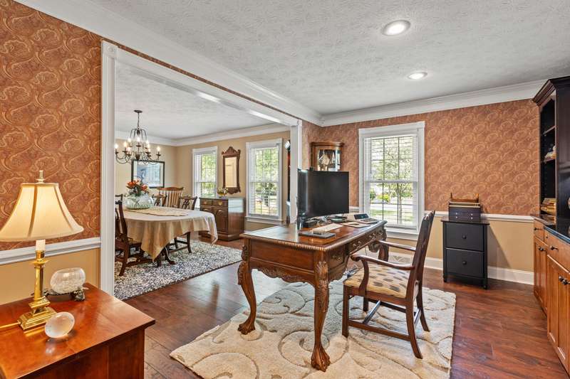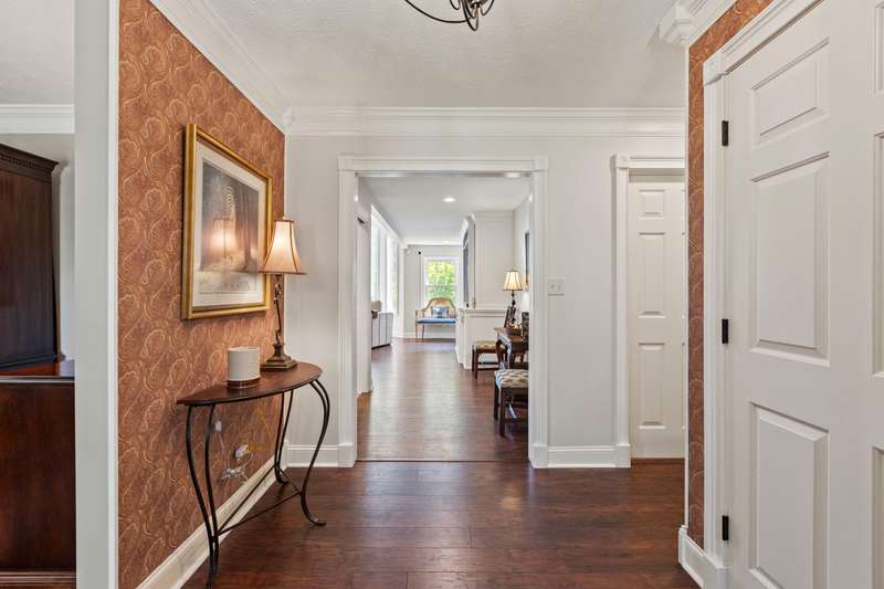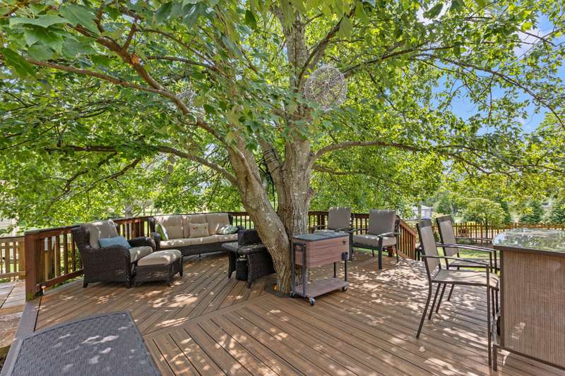 Set on over an acre in Nicholasville, this home blends thoughtful design with functional living. The main level features a vaulted great room with engineered hardwood and a fireplace with fire glass, flowing seamlessly into a kitchen designed for gatherings, complete with an oversized island seating six, a five-burner gas cooktop, tile backsplash, and quartz countertops. Bourbon and coffee bars near the kitchen add an extra touch of convenience. The walk-out basement, with updated LVL flooring, offers potential for an in-law quarters and includes a second fireplace with ventless gas logs. Outdoor spaces are designed for entertaining and relaxation, with landscaped patios, composite decks, and a water feature. Inside, custom woodwork, built-ins, and laundry on both floors combine style and practicality. Recent upgrades include Gilkey low-E windows with a lifetime warranty, Rhino Shield paint on the addition (25-year warranty), an owned security system, updated insulation, and a Generac whole-house generator. Every detail supports comfortable, versatile living in a desirable setting.