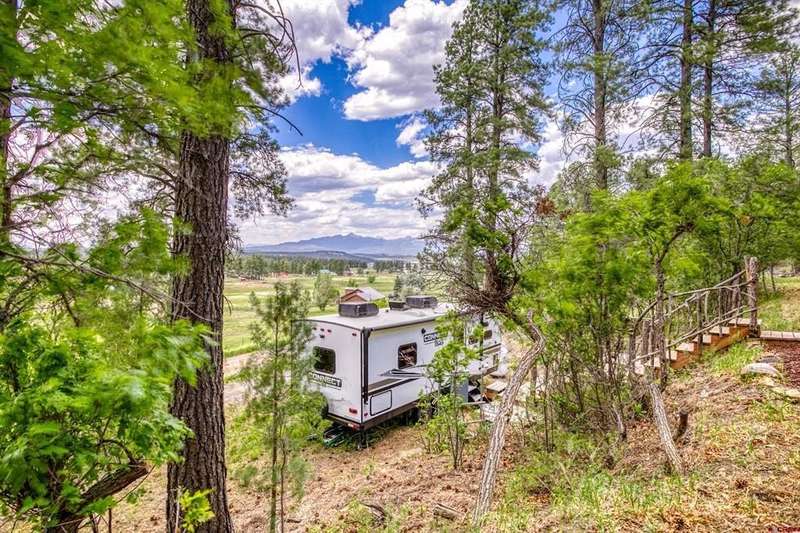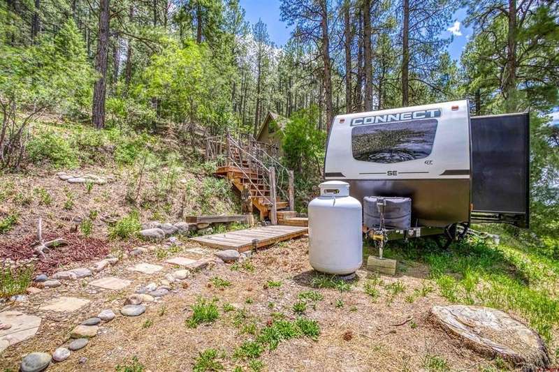 Kimberly Brown, Galles Properties, C: 970-749-3849, Kim@GallesProperties.com, www.crenmls.com: This is the very last price reduction-Jump on this Great Buy! Move in ready custom built tiny cabin in the woods and luxury travel trailer with full hook up on 5 Acres with No HOA or Restrictions! Privacy, convenience, central water, and incredible mountain views are yours here...201 Pineview Rd is the affordable start to immersing yourself in the coveted Pagosa lifestyle. Just off of all paved roads and under 3 miles to historic downtown Pagosa Springs. This ready to go basecamp and fun in the mountains of Pagosa offers fantastic future opportunities too! This special retreat spans 5 private acres within a gorgeous high alpine treed setting and some of the most incredible mountain peak views imaginable. It features a fully furnished 400 sf custom tiny home with an open deck and covered front porch, a luxury travel trailer with full hookups and a clean-out, and already has central water, electric, engineered septic, and propane in place. You'll also enjoy strong cell and internet service, and a tranquil seasonal live stream that attracts abundant wildlife and big game right to your door. One of the standout features of this property is the freedom from HOA restrictions and covenants. This property has also produced a nice income for the current owners, having successfully rented both the tiny home and travel travel trailer long term independently. More opportunities... Ag Zoning affords the ability to build two (permitted) dwellings with the convenience of having the ready to go tiny home to enjoy during the process. Imagine grabbing a bottle of wine and enjoying a sunset hike on your own private property, reaching majestic skyline views at the rock wall. Despite its secluded feel, every convenience in town, including Pagosa's world-famous hot springs and exceptional dining and shopping, is only 2.5 miles away. Travel is easy on year-round maintained roads, and you can walk to Echo Lake. For outdoor enthusiasts, Wolf Creek Ski Area is just 30 minutes away, along with free-flowing, fish-rich rivers, 27 holes of golf, and 2.8 million acres of forest and wilderness. This is a great investment packed with enjoyment and adventure. This amazing property is available for cash purchase or with owner financing. Schedule your private tour of 201 Pineview today, and don't forget your walking shoes!