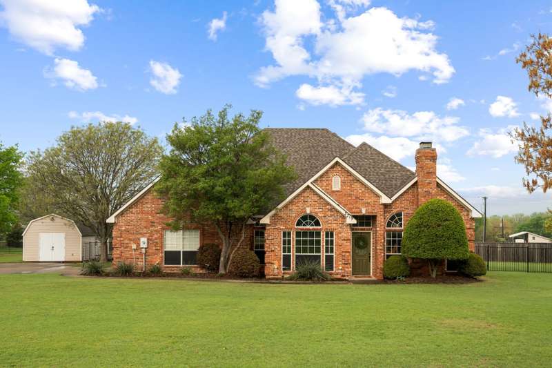 Updated One-Story Home on 1 Acre-Quiet Cul-de-Sac-Country Living Near City Conveniences. Enjoy the best of both worlds in this beautifully updated one-story home on a spacious 1-acre lot, ideally located in a peaceful cul-de-sac. Offering the tranquility of country living with the convenience of nearby city amenities, this property is perfect for those seeking space, privacy, and modern upgrades. Step inside to soaring 15-foot ceilings and an open, airy floor plan filled with natural light. The stunning chefs kitchen features granite countertops, a new cooktop, a copper sink, central island, built-in icemaker, and freshly painted cabinets with updated hardwareoffering both style and functionality. This 3-bedroom, 2-bath home has been meticulously maintained with thoughtful renovations throughout. The primary suite is a private retreat with serene views of the backyard and a fully remodeled bathroom showcasing a new bathtub, quartz countertops, a frameless glass shower, modern tile, and fresh paint. The secondary bathroom also features a quartz countertop and updated finishes. Enjoy outdoor living at its best with a covered patio and stained pergola, overlooking the expansive wrought iron fenced backyardperfect for entertaining or relaxing in the shade. Additional features include: Fresh exterior paint, New roof, Epoxy-coated floors in the 2-car garage, upgraded window glass panes, Detached workshop with electricity for hobbies, storage, or projects. This move-in ready home combines modern upgrades with country charm in a prime cul-de-sac location. Dont miss the opportunity to make this North Texas gem your own!