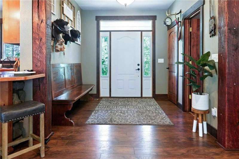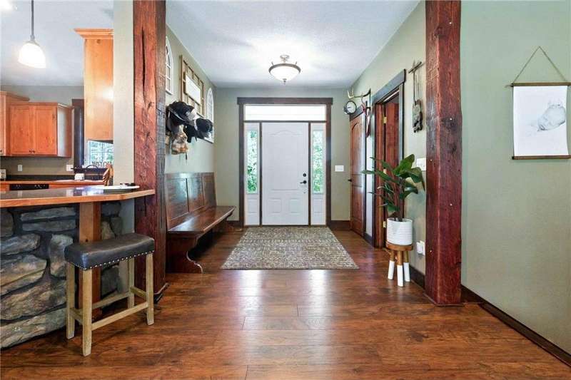 Stunning 4-bedroom 3-bath home with a beautiful master bedroom with a custom rock shower and raised rock soaker bathtub nestled in the woods on 8 acres close to all the lakes for year around entertainment. This boasts of all the new additions that have been added: spray foam in the garage, seamless gutters, concrete porch in the back yard, concrete porch by the front door, two concrete aprons, deck in the backyard, tar driveway, remodeled half bath upstairs, water softener, washer, dishwasher, pressure tank, pressure tank for geothermal, rock on the front of the garage, and more. The 16x10 utility shed that can be negotiated. Geothermal heating/cooling system with furnace propane back up. Trails in the woods for kids to enjoy along with natural habitat with a lot of wildlife just out the door. Average of 1% propane use per winter, average electric bill with everything included approx. $225.00. So many custom features, including kitchen cabinets and L shaped rock serve through counter, custom trim work. You don't want to miss out on this one. Its move in ready in an amazing location.