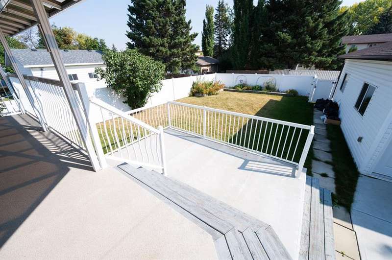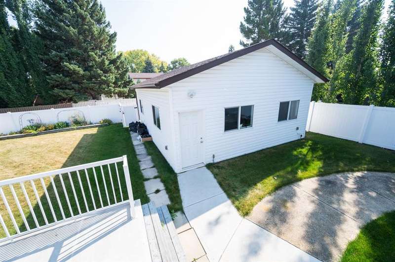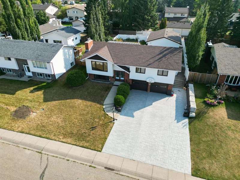 TWO GARAGES!!! This immaculate home is sure to impress, meticulously cared for over the years with all the important things updated. A spacious double door entry welcomes you into the home, and gleaming hardwood is located throughout the main areas. The spacious kitchen offers a centre island with hood fan and ample storage. Dining room offers patio doors outside to a covered rear deck. The living area has a classic fireplace as well! There are three bedrooms on the main level, and the primary bedroom offers a full ensuite. Downstairs includes a rec room plus a nook (which was once a 4th bedroom and could easily be converted back). The 22W x 28L double attached garage also is located in the lower level, with direct access into the home. Outside is where this property shines - with a huge front parking pad, extra wide to fit an RV PLUS the rear detached oversized 24W x 30L double garage with its own panel and radiant heat! This is truly a dream shop and has to be seen to be appreciated. The beautifully landscaped yard is surrounded by vinyl fencing, and offers plenty of space despite the shop. Located in desirable Bower, fronting onto green space, and a short stroll to all amenities including Bower Mall and the Red Deer Trail Network - this home truly offers it all!