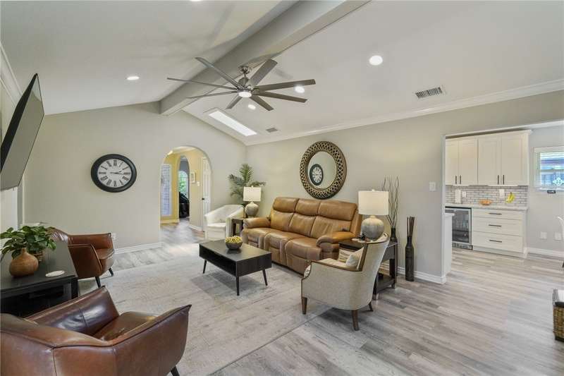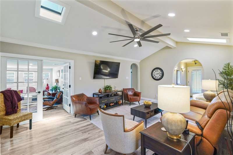 This home has a VA loan assumption mortgage at 2.85%. It allows a qualified buyer, even a non-veteran, to take over a seller's existing VA mortgage, including the interest rate and remaining balance. The buyer must be approved by the lender based on their creditworthiness, income, and other requirements. This home has been fully updated, with an open floor concept, high cathedral ceilings, four bedrooms, two living rooms, two dining areas, and a BONUS Office!!! Natural lighting provided by the skylights installed, in the metal roof. Upgrades in the kitchen include an abundance of cabinet and countertop space, tile backsplash and recently replaced Kitchen Aid appliances. Bathrooms have also been updated to include full tile walk in showers, and dual vanity sinks. Upgraded, flush mount lighting with ceiling fans throughout the home. Backyard is secured by your own private automated metal gate to your drive - in two car garage with tons of parking space in the backyard. Inviting front covered porch with full tile and professionally landscaped. Grab your favorite Realtor and Come check this one out!!!