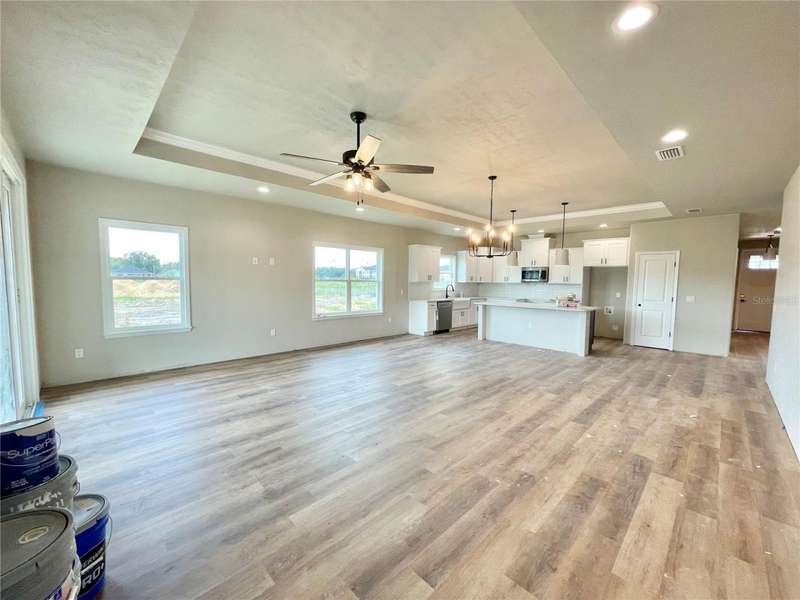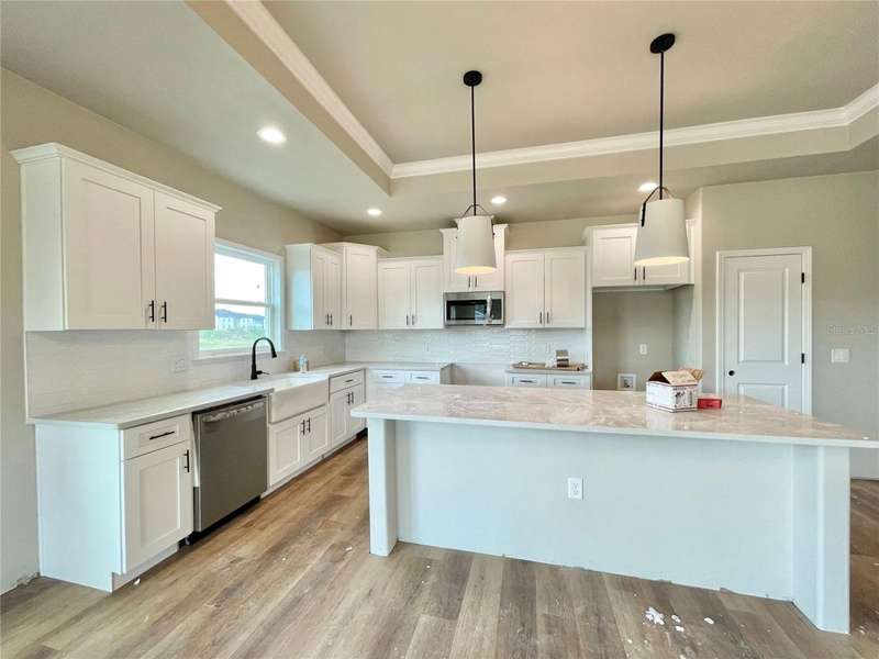 Completed and ready to move in! Introducing The Lily!! New floorplan with open concept kitchen, dining and great room area. Affordable luxury and quality construction in SW Gainesville by local developer/builder of over 30 years, Weseman Builders Inc. Check out this brand new 3 bedroom 2 bath home with 1,727 sf. As you walk in the front door, you will notice right away the luxury vinyl plank flooring that will lead you throughout the home including great room, dining area and bedrooms. Spacious open kitchen with white wood shaker cabinets, quartz counter tops, decorative tile backsplash, Greystone color wood shaker island, walk-in pantry, stainless steel farmhouse sink, stainless steel stove, dishwasher and microwave hood. Great room area leads you to the sliding doors that open to the large rear covered lanai which provides access to the large back yard for some outdoor living. The open concept kitchen and great room are designed for entertaining. Spacious primary bedroom with on-suite luxury bath, walk-in closet, double sinks and walk-in shower. Tray ceilings with crown molding in great room, dining area and primary bedroom. 2 car garage with carriage style 8 foot tall door for larger vehicles, pull down attic ladder and automatic garage door opener. Premium lot backs up partially to a common area. Energy saving features like gas tankless water heater, LED lights, double pane windows, R13 wall insulation, R31 attic insulation, and 15 SEER HVAC. 100% financing (no down payment) options available to qualified buyers. Grand Oaks HOA fee is only $60 per month and has a community pool, pavilion and playground area. Located across Oak Hall school, Grand Oaks is zoned for great schools of Chiles Elementary, Fort Clark Middle School and Buchholtz High School. Conveniently located near all kinds of shopping and dining offered by Celebration Pointe and Butler plaza town centers. Also, just a few miles from the hospitals and university. Quick closing and occupancy available!