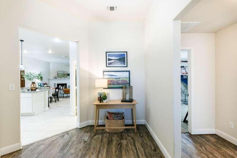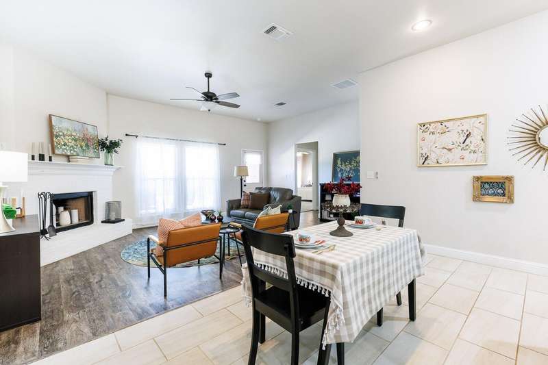 Recently price dropped a total of $7,000!! She's a really cute and clean 3/2/2 with 1914 sq ft. and a brand new roof! The Primary Suite is isolated and has a separate tub and shower with two sinks and a WC. The primary closet is amazing and connected to the laundry room. The home sits on a corner lot, newer tough shed, an extended patio with wood accent features for creating ambiance. This one is clean, gently lived-in, and has an isolated Primary Suite. Hartman just completed the Roof in September 2025. The Fence has been recently stained. This home has a TV mount above the fireplace (peek behind the floral picture). Other TVs will convey with the home. Come enjoy life at Milwaukee Ridge -