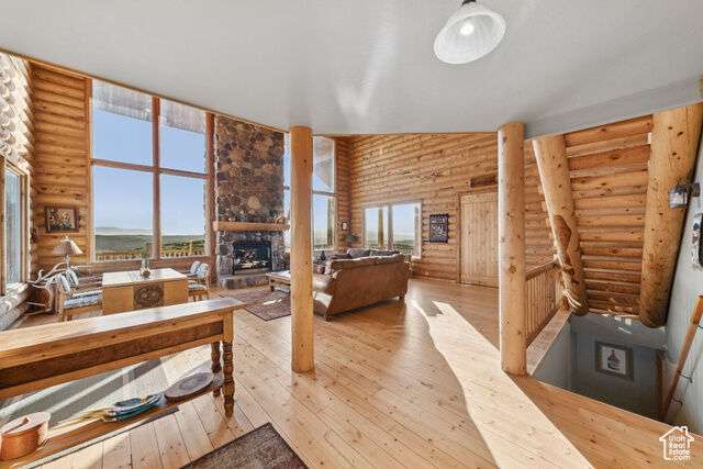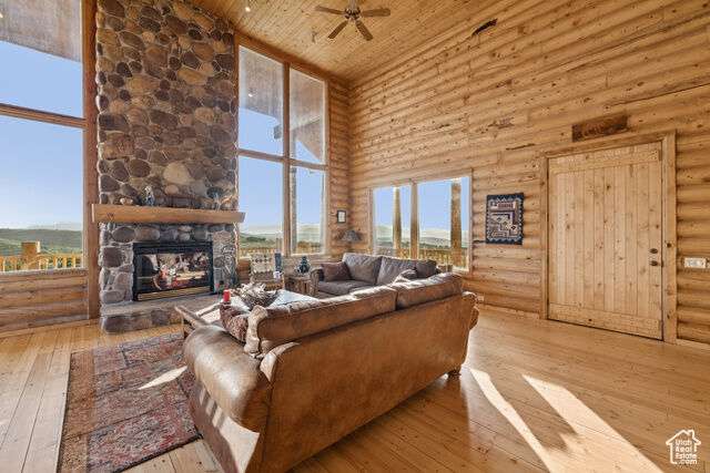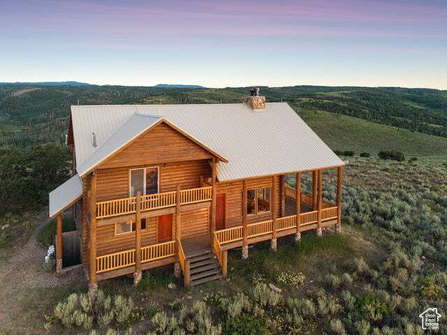 Escape to 163 acres of pristine wilderness with breathtaking panoramic 360 views in Woodland. You will find pure serenity on the massive wrap-around deck featuring unobstructed views of the Uinta and Wasatch Mountains, including Mount Timpanogos. This spacious log cabin is offered fully furnished and features an unfinished basement providing plenty of room to expand. Enjoy off-grid independence with a private well, cozy wood fireplace, propane appliances, and a generator. Extensive hiking and cross country skiing are right outside your door. This unique retreat is forever protected by a Utah Open Lands Conservation Easement. Do not miss this once-in-a-generation opportunity. https://youtu.be/adMy39lUDkM