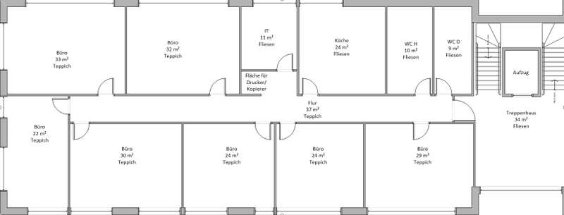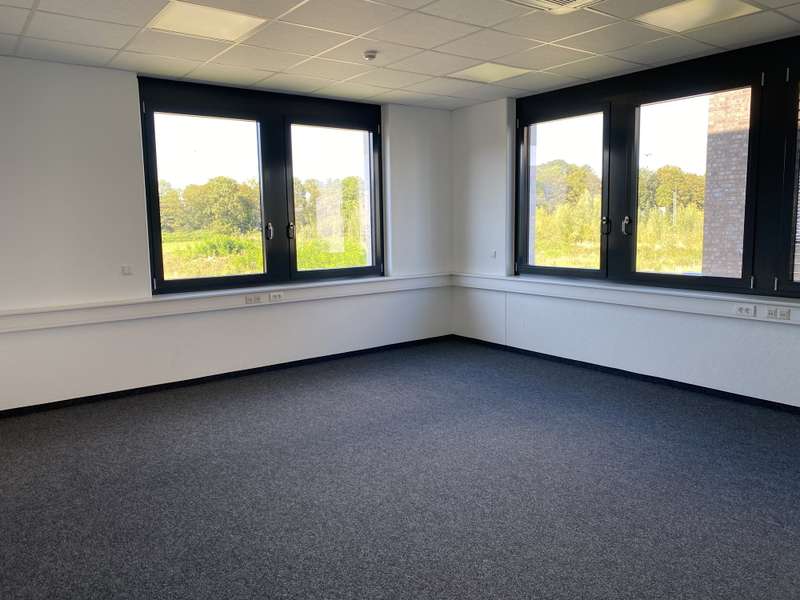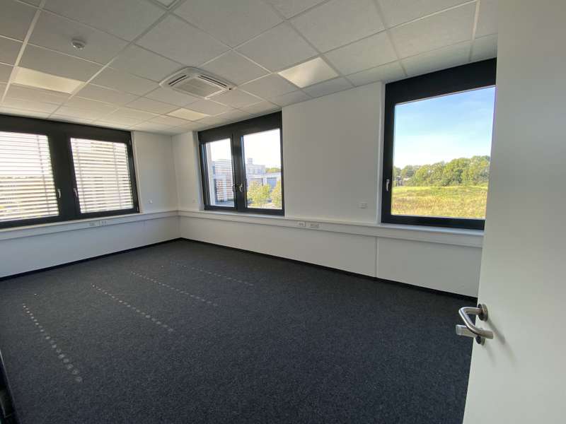 VON POLL Commercial Cologne presents this ultra-modern office unit in a first-class new building, which impresses with its technical sophistication, well thought-out functionality and exclusive furnishings. The unit is in mint condition, has a high-quality fit-out and is equipped with an electronic locking system that allows each individual room to be released by chip. Each office wing can be accessed separately and the access control system can be fully configured on a person and room basis - ideal for companies with different access zones or sensitive areas. Automatic blinds, which close automatically when the sun shines, ensure optimum heat protection and light regulation, but can be controlled manually at any time if required. The entire building is designed to be consistently sustainable: The energy supply is provided by a modern heat pump and the electricity comes exclusively from renewable sources, thus offering a future-proof solution that is independent of fossil fuels. An elevator provides access to all floors and, together with ground-level access, ensures unrestricted accessibility. The property is fully fenced and is accessed via an electrically controlled, remote-controlled entrance gate, which opens automatically via an induction loop when leaving - even outside opening hours - and then closes again automatically. The building is alarm-protected and connected to a security service; comprehensive video surveillance in the outside and entrance areas completes the comprehensive security concept. A high-quality underfloor heating system, which can be individually controlled digitally, ensures a pleasant indoor climate in all units, while a powerful ceiling cooling system ensures pleasant temperatures in summer - conveniently controlled by remote control. Convenient individual parking spaces and high-quality bicycle parking spaces are available on the premises. There is a barrier-free bathroom with a floor-level shower on the first floor - ideal for employees who cycle to work or appreciate flexible usage options. The basic rent is €12.50 per square meter and the ancillary costs are €3.00 per square meter. In addition, the monthly shared use of the high-quality fitted kitchen is €75. Shared use of the shower, WC and kitchen on the first floor on the right is possible for € 50 per month. Parking spaces can be rented for € 50 per month, subject to availability. This office building combines state-of-the-art technology, the highest security standards, sustainable energy supply and maximum comfort, making daily work a contemporary, efficient and pleasant experience.