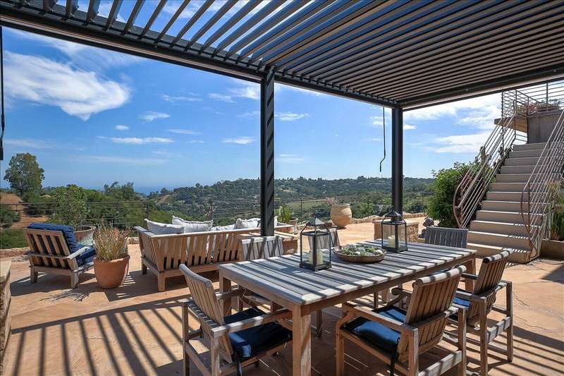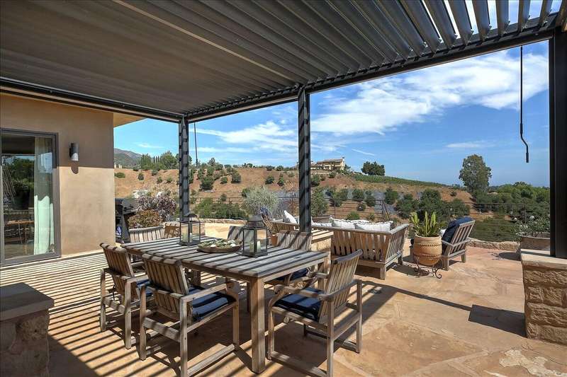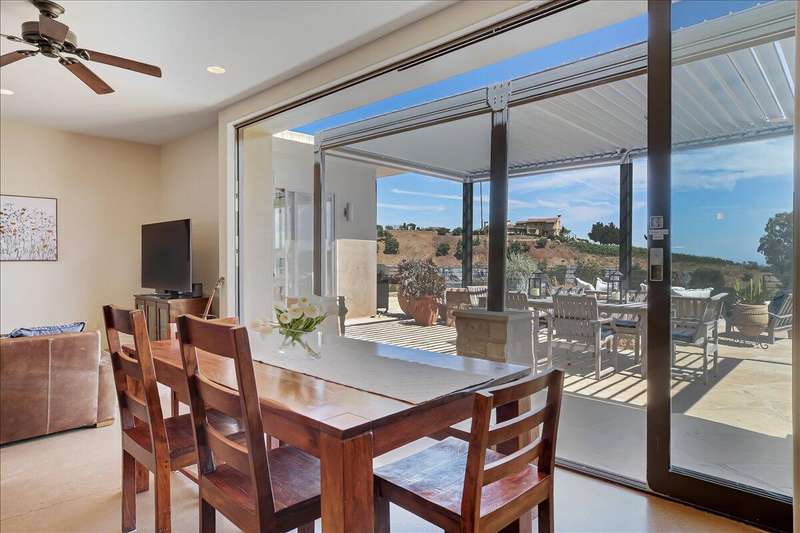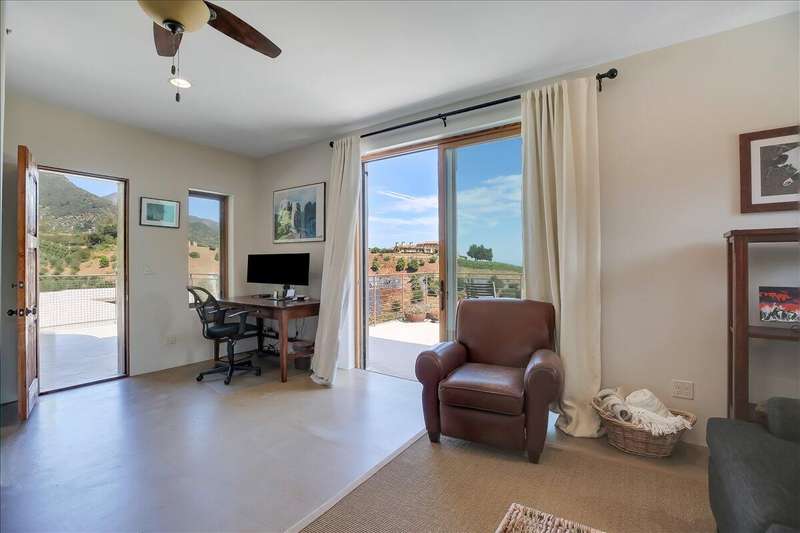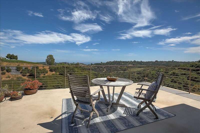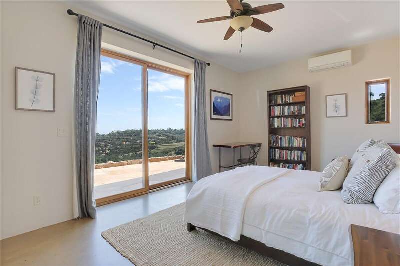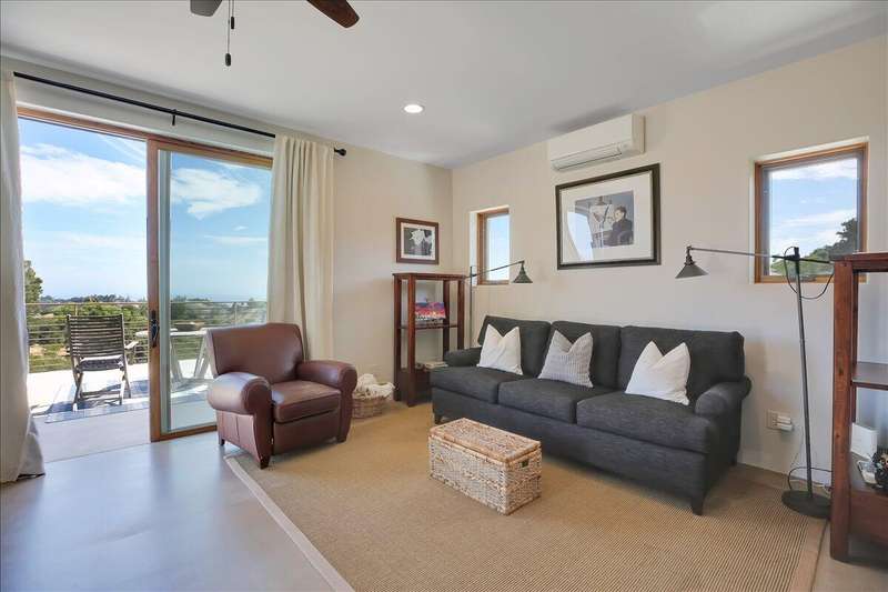 Ocean, island & mountain views! Located in a serene rural neighborhood, this 11 year new contemporary home, with owned solar system, & on over 5 acs., offers privacy & tranquility & yet is only minutes to shops & dining. Flooded with natural light & featuring tall ceilings, the spacious great room, with custom full pocket doors, provides a seamless flow to the oversized south-facing flagstone patio with an adjustable shade pergola. The gourmet kitchen features unique limestone countertops, custom tile work & cabinetry, high-end appliances & a breakfast bar. A quiet ocean view ground-floor primary suite, with private patio & windows on 3 sides, provides a calm space to relax. The primary bathroom features a spa tub & a spacious slate-tiled shower. One guest room is... ... off the entry & the third bedroom, (or office), is on the second floor & has its own separate entrance, ensuite bathroom & spacious terrace. Unwind in nature, watch soaring birds over green trees & soak in magical sunrises & sunsets from this peaceful retreat!