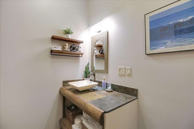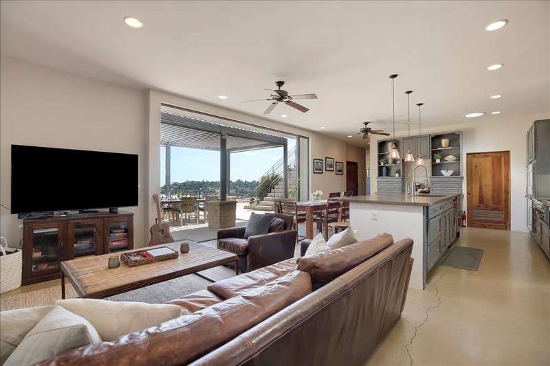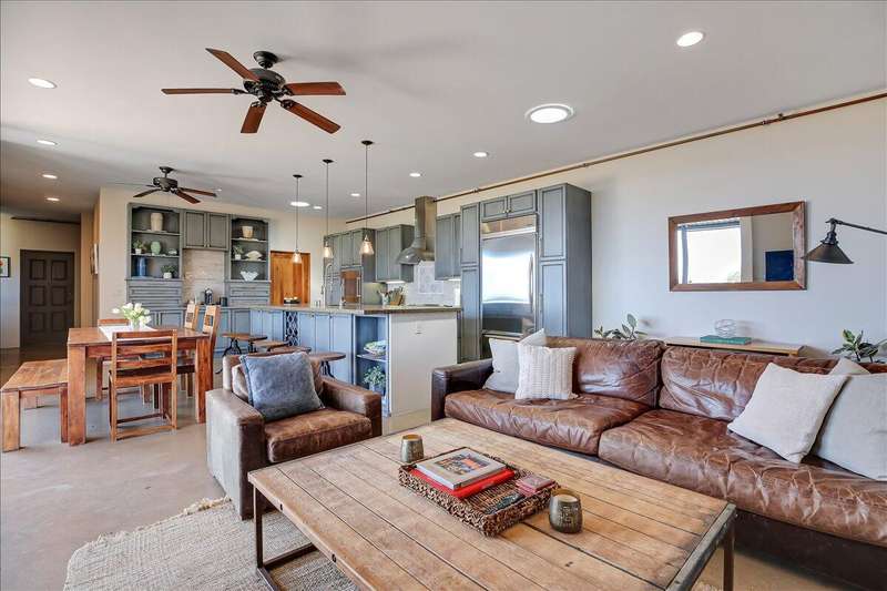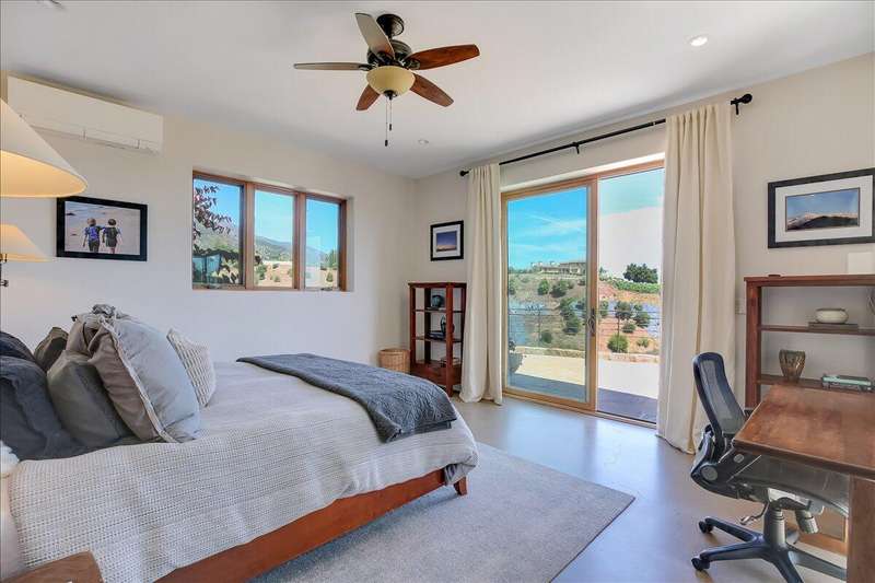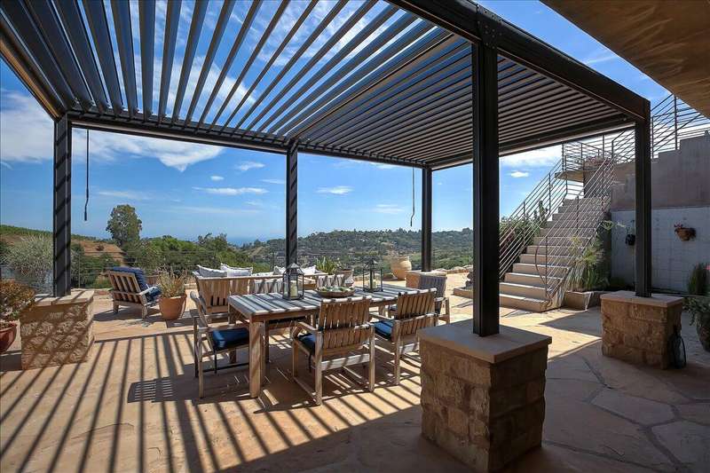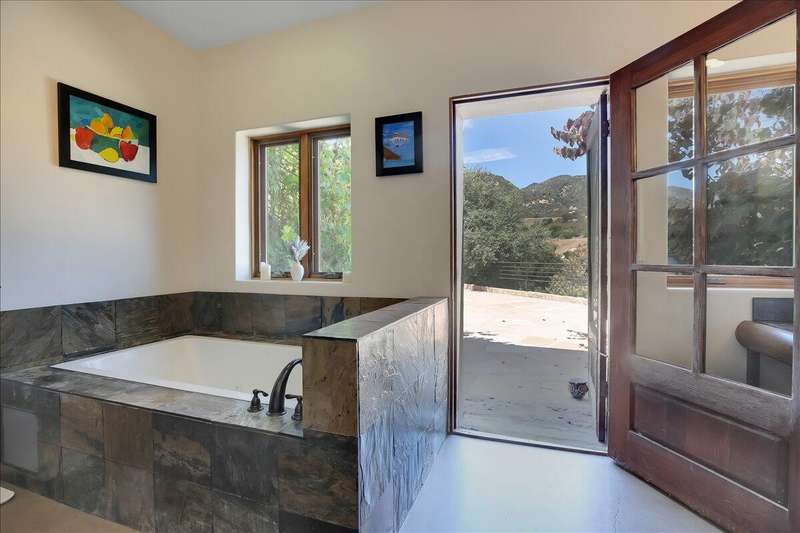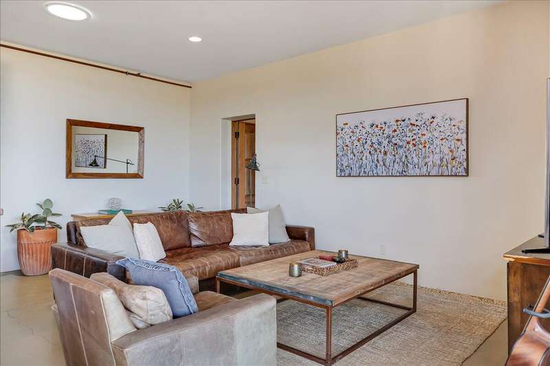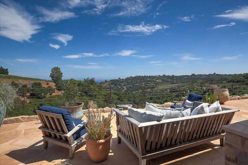 Ocean, island & mountain views! Located in a serene rural neighborhood, this 11 year new contemporary home, with owned solar system, & on over 5 acs., offers privacy & tranquility & yet is only minutes to shops & dining. Flooded with natural light & featuring tall ceilings, the spacious great room, with custom full pocket doors, provides a seamless flow to the oversized south-facing flagstone patio with an adjustable shade pergola. The gourmet kitchen features unique limestone countertops, custom tile work & cabinetry, high-end appliances & a breakfast bar. A quiet ocean view ground-floor primary suite, with private patio & windows on 3 sides, provides a calm space to relax. The primary bathroom features a spa tub & a spacious slate-tiled shower. One guest room is... ... off the entry & the third bedroom, (or office), is on the second floor & has its own separate entrance, ensuite bathroom & spacious terrace. Unwind in nature, watch soaring birds over green trees & soak in magical sunrises & sunsets from this peaceful retreat!