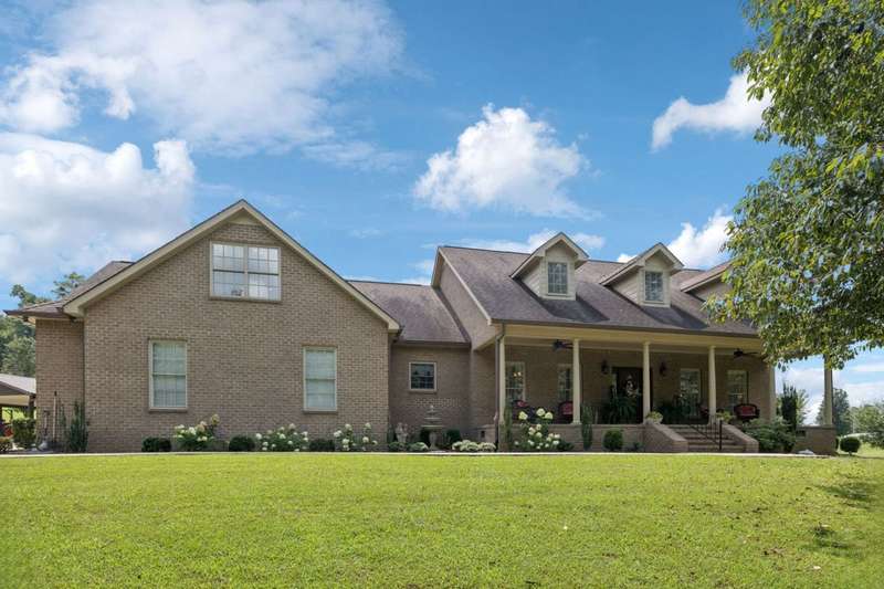Welcome to your country paradise! Beautiful 18 acre property complete with a natural spring and a pond and 2,800+ sf gorgeous brick 3 bdrm, 2.5 bath home w/Bonus/Rec room on 2nd level, as well as walk-in attic storage or expansion area! This home built in 2014 has covered front & back porches (8x38 & 8x40) to watch the wildlife and enjoy the peaceful serenity, attached 2-car garage & detached 24x26 carport on concrete pad. There is also a detached building that houses a 600+ sf apartment/guest house, built in 2007, with covered front patio, kitchen (Stove & Refrigerator remain), full bath & combo living/dining/bedroom area attached to a 3-car garage/shop w/concrete pad, cabinets, electricity & water! You wind your way from the entrance with an open gate, up the wooded hillside to the property at the top of hill! The main home is mostly on one level with large Owner Suite, spacious open Kitchen/Dining/Eat-In & Living Room w/stacked rock propane fireplace and beautiful finished wood flooring! Kitchen has granite counters, walk-in pantry, counter bar and all Kitchen appliances remain (GE Stove, Dishwasher, Microwave & Refrigerator). An outbuilding with lean-to also remains. This home is a wonderful oasis with woods, acreage, pond, natural spring and privacy! All offers to be on TAR forms.