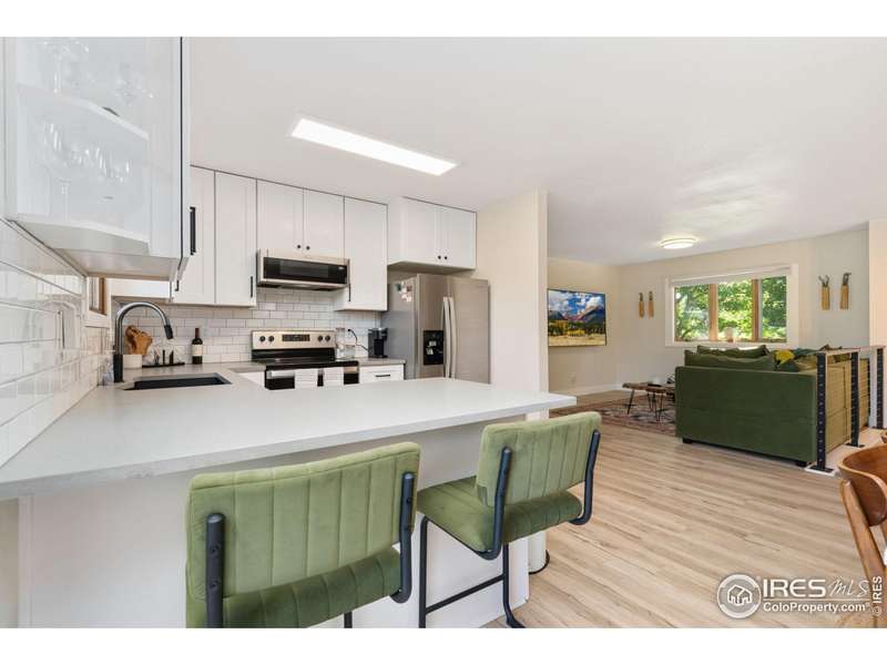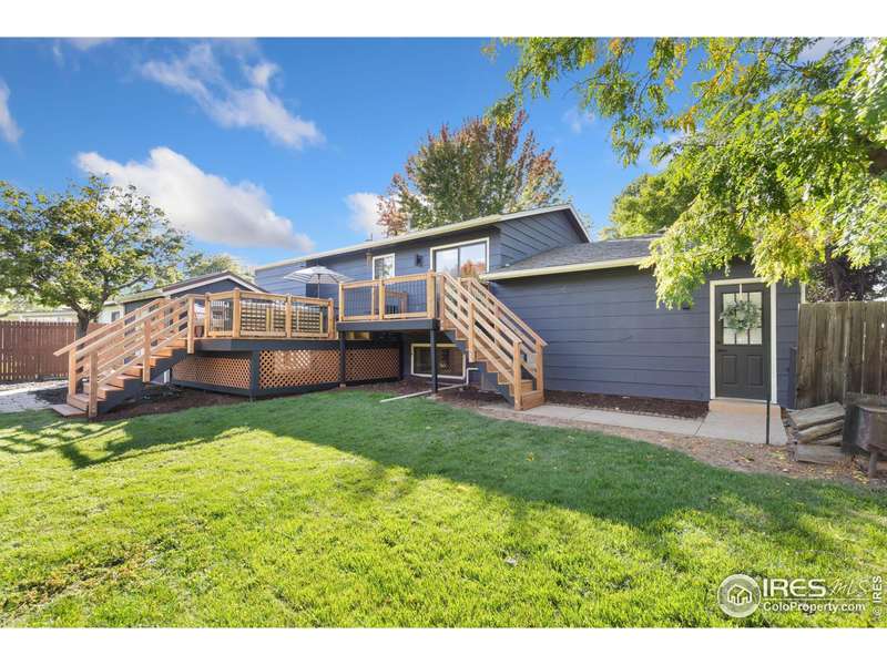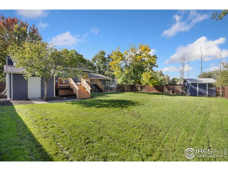This beautifully updated 4-bedroom, 2-bathroom split-level home offers a perfect blend of modern design and functional living. Located on a generous corner lot in Fort Collins, it features two bedrooms and a full bathroom on each level, providing privacy and space for everyone. The main level boasts a bright and open living area with large windows that allow natural light to flood the space, while the updated kitchen showcases quartz countertops, a stylish tiled backsplash, stainless steel appliances, and a convenient counter seating area. An adjacent dining area makes family meals or entertaining guests a breeze. Downstairs, the lower level offers a spacious family room with a cozy brick fireplace, two additional bedrooms, and a refreshed bathroom with modern fixtures. Outside, the large corner lot includes two sheds, one with electricity and is climate controlled - ideal for a workshop, studio, or office, as well as plenty of side yard space for RV or boat parking. Additional upgrades include a recently installed central vacuum system and a new tankless water heater, adding efficiency and convenience. Centrally located, this home offers easy access to shopping, dining, parks, public transportation, and is just minutes from Colorado State University.