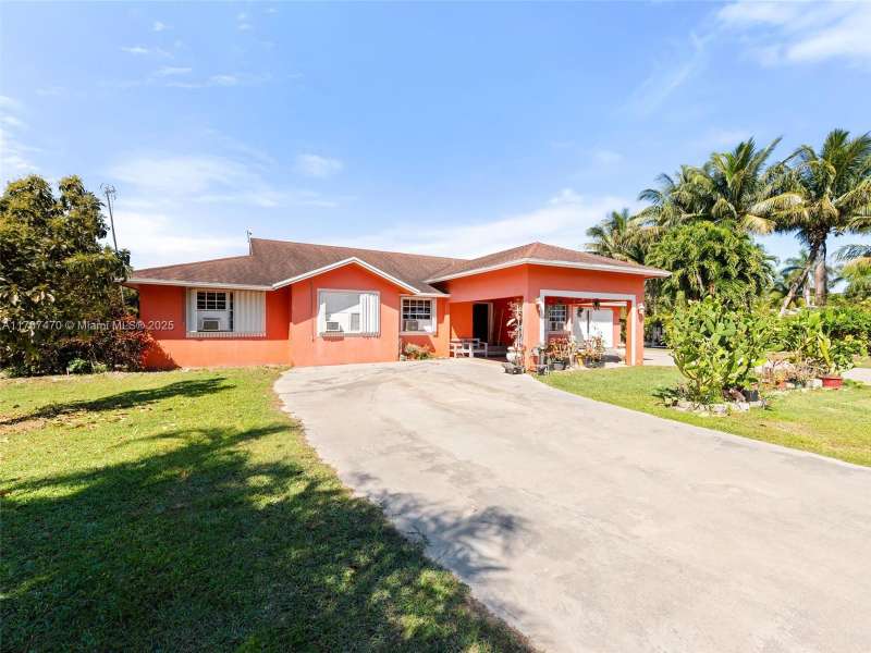 Stunning 5BD/3.5BA ranch-style home on over 1 acre in the Redlands! Fully renovated with a brand-new kitchen featuring a granite island, sleek cabinetry, and stainless steel appliances. New floors throughout, freshly painted inside and out, and newer central A/C. Split floor plan offers a private master/in-law suite with Jacuzzi tub and a separate guest quarters with private entrance—ideal for extended family or rental income. Outside features mature fruit trees, a large circular driveway, and plenty of space to add a pool, garden, outdoor kitchen, or RV/boat parking. Enjoy peaceful, private living with modern updates, just minutes from the Florida Keys.PROOF OF FUNDS AND/OR PRE-APPROVAL LETTER REQUIRED PRIOR TO SHOWING.