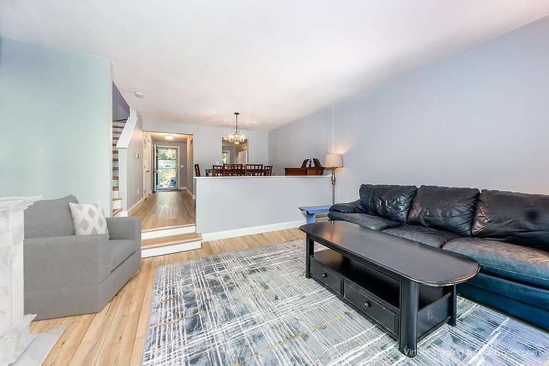 Welcome to this beautifully maintained condo in the desirable Falmouth location! Stunning unit boasts a bright and airy kitchen, recently renovated w/ modern cabinets, appliances, and flooring that evoke a coastal charm. The expansive bay window floods the space with natural light, creating a warm and inviting atmosphere. The spacious living area features a cozy gas fireplace and a sleek slider that leads out to your private patio, perfect for taking in the fresh air and enjoying the surroundings. The open layout seamlessly integrates the dining and living areas, creating a perfect space for entertaining. The second floor boasts two spacious bedrooms, freshly painted and featuring generous closet space and new flooring. The renovated bathrooms are a highlight, with updated vanities, fresh paint, and a sleek new look.This condo has been meticulously maintained and upgraded over the years, notable improvements including a renovated kitchen, bathrooms, heating system, A/C, flooring, int