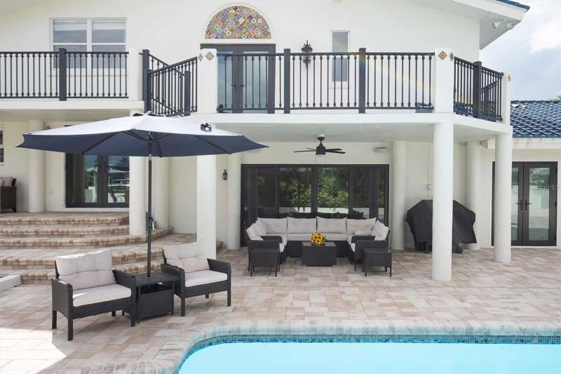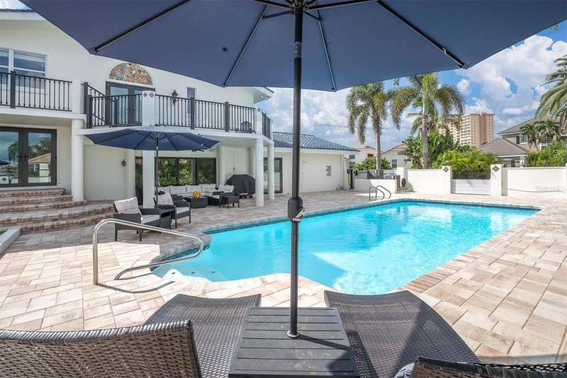 Experience refined Florida living in this beautifully maintained 4-bedroom, 3-bath home set within the exclusive guard-gated community of Bayway Isles. Perfectly positioned on an oversized corner lot, this residence offers graceful style and exceptional comfort. The spacious primary suite features a private balcony with tranquil water views—perfect for sunrise and morning coffee. Inside, the downstairs family room with a cozy fireplace and wet bar invites relaxed gatherings, while you remain connected through a cool peekaboo bar area off the kitchen. Living room and formal dining area are separate dedicated spaces that make entertaining truly special! Outside, how about your own private putting green! Enjoy a sparkling heated pool, ideal for laps or leisurely afternoons with friends. Just minutes to the beaches, vibrant downtown St. Petersburg, and convenient to Tampa. A perfect blend of luxury, location, and lifestyle—welcome home to Bayway Isles.