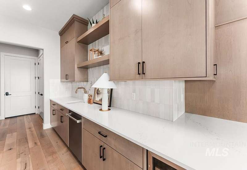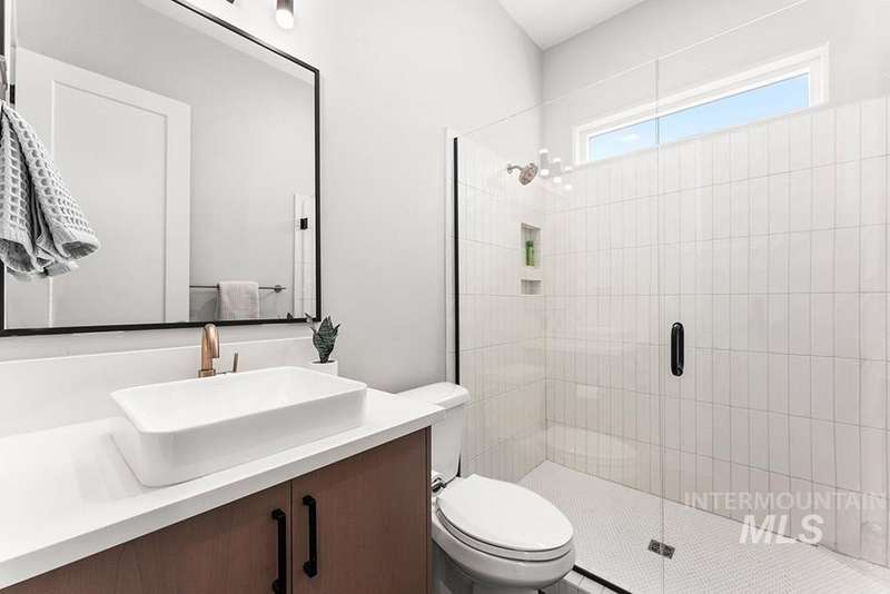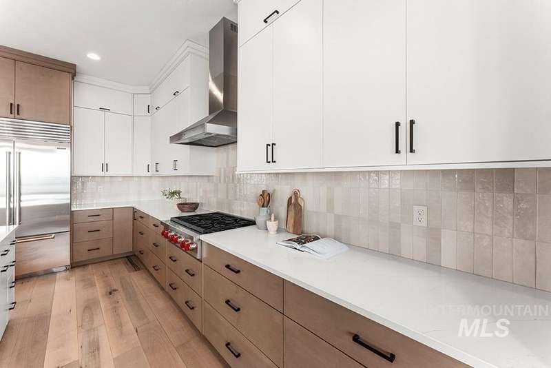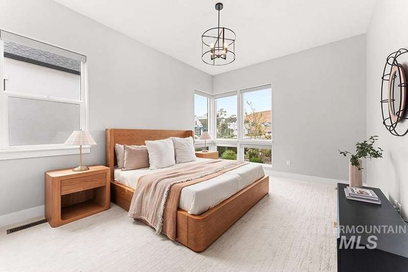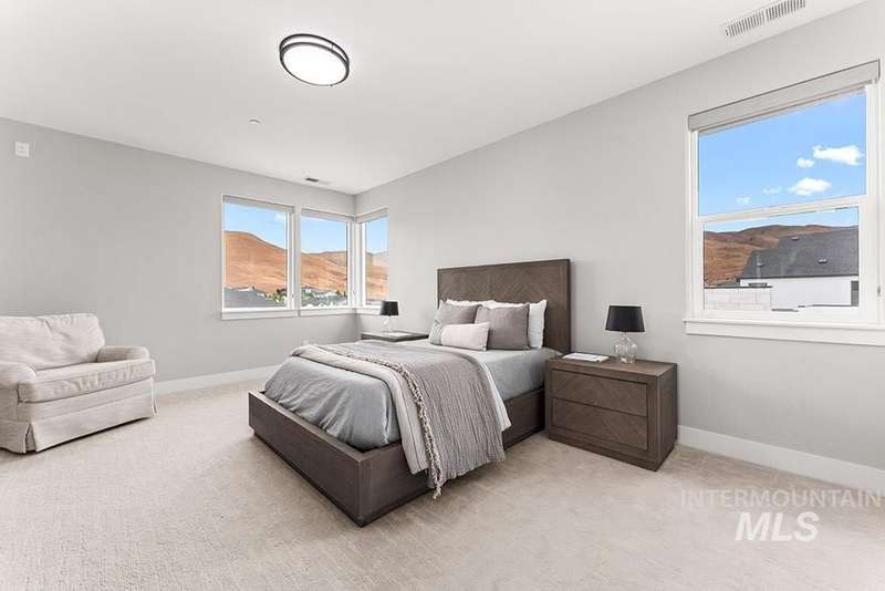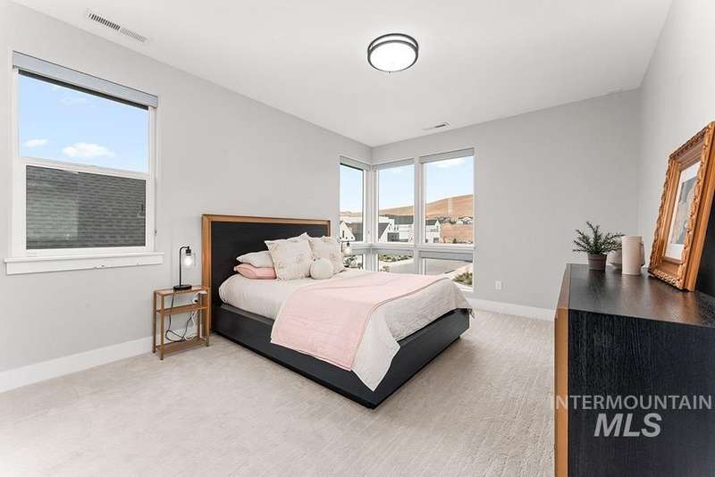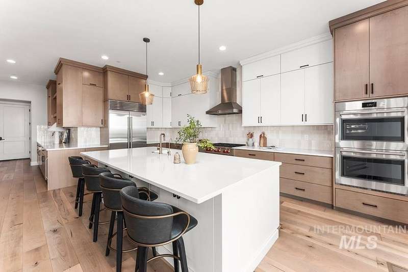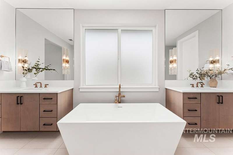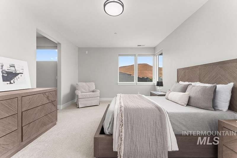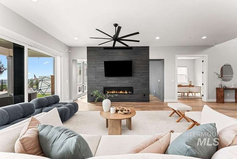 Modern luxury in Harris North! Elevated above Boise, this extraordinary home offers the perfect blend of elegance, function, & outdoor access. The community seamlessly connects to miles of foothill trails, a pool, & is just minutes from SE Boise amenities and the Greenbelt. The striking design features a spacious open layout with wood flooring, designer lighting, and expansive telescoping glass doors that frame sweeping foothill views. The great room is centered around a floor-to-ceiling fireplace and opens to a private moody lounge. The kitchen showcases two-tone ceiling-height cabinetry, zellige tile backsplash, dual ovens and dishwashers (Wolf Sub Zero), and an island for entertaining. The luxurious primary suite includes dual walk-in closets, a freestanding soaking tub, dual vanities & a private flex room perfect for a home gym or studio. The backyard is a private sanctuary with a large covered patio, hot tub & turf lawn, positioned to take in the breathtaking views.