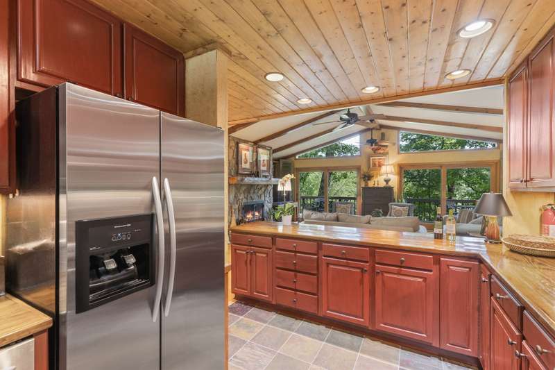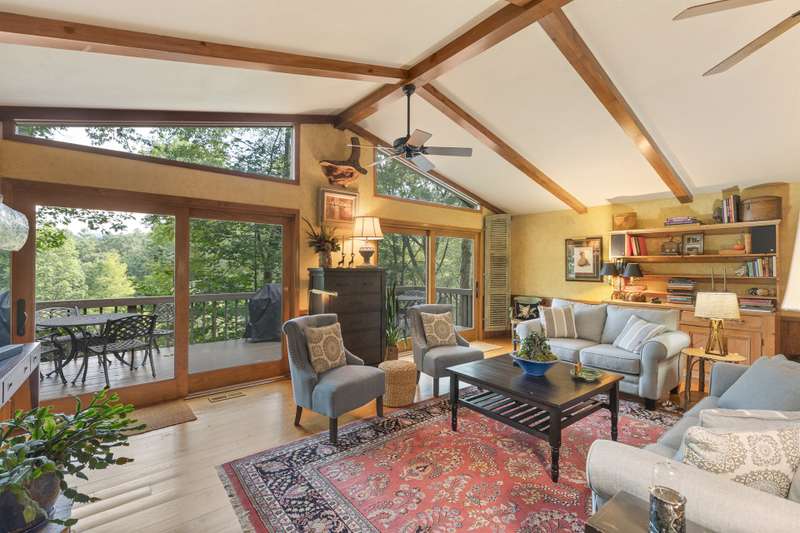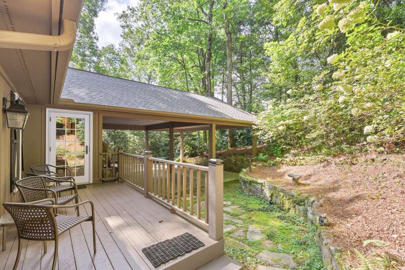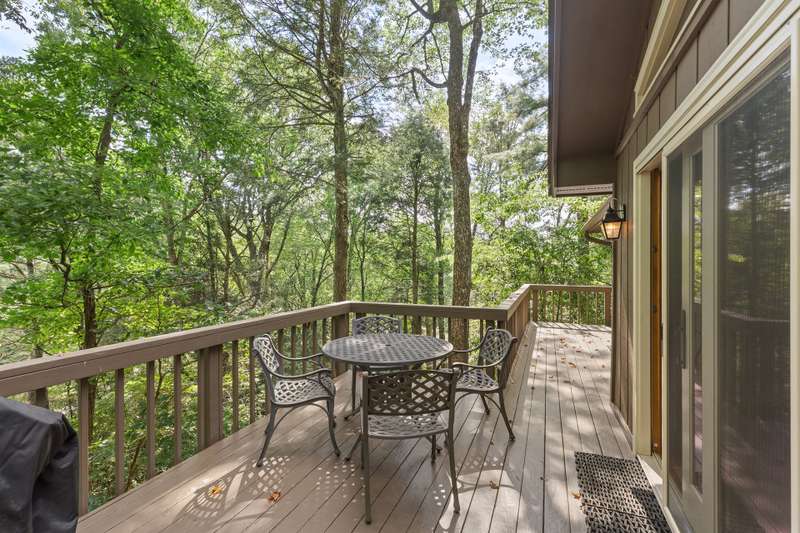 Classic Highlands Charm ? Fully Furnished 2BR/2BA HomeThis beautifully maintained Highlands home captures the essence of mountain living with timeless charm and thoughtful upgrades. Featuring 2 bedrooms and 2 baths, the residence offers a vaulted living room with a stone fireplace fitted with gas logs, seamlessly flowing into the dining area and kitchen with gas range and newer stainless appliances. Glass doors flood the space with natural light and open to an expansive deck?perfect for entertaining or simply enjoying the tranquil setting.Hardwood floors run throughout the main living areas and bedrooms, complemented by tile in the baths. Both bathrooms feature slate tile, copper sinks, and rich wooden counters, while the primary suite boasts a steam shower.Modern conveniences add peace of mind, including safes in each bedroom and a full home security system. Additional highlights include a spacious double carport, storage/workshop below, custom draperies, beautiful rugs, and full furnishings with a full exclusions. Home is also equipped with a home generator. With a strong rental history and no restrictions, this property is ideal as a private retreat or an investment opportunity.The home is situated on two lots within a heavily wooded, private neighborhood, a true haven for nature lovers. The second lot provides opportunities for expanded privacy or the option to sell.All this just minutes from downtown Highlands, yet outside the city limits for added flexibility.