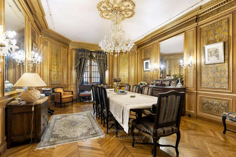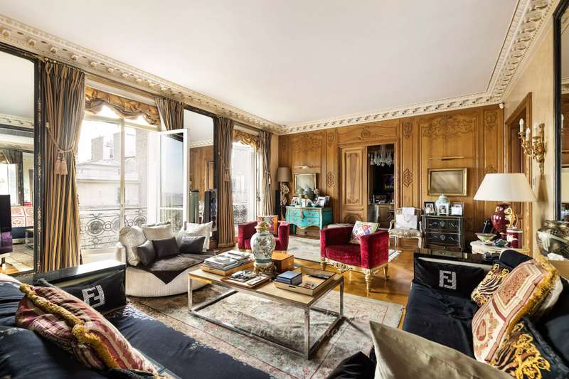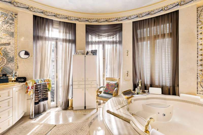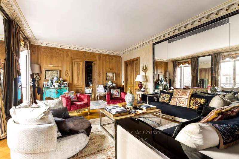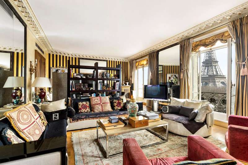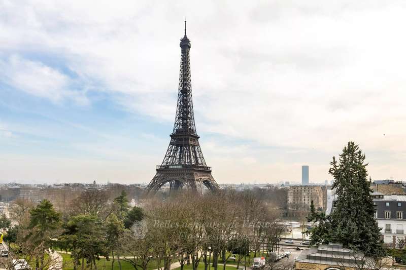 Passy/Trocadero Gardens. This exceptional apartment on the 1st floor of a sumptuous early 20th century building commands a picture-postcardn view of the Eiffel Tower, the Seine and other iconic landmarks. Luxuriously appointed, it includes a majestic entrance hall, a magnificent living/reception room bathed in sunshine, a drawing room, a library, a refined dining room, a fully equipped kitchen with dining facilities, a sumptuous master suite with a bathroom and dressing rooms, a second bedroom, a study, a bathroom and a shower room. Ample fitted storage space. With a parking space and two cellars. The apartment is particularly bright, and its position allows it to benefit from the view one may expect from a 5th floor.
