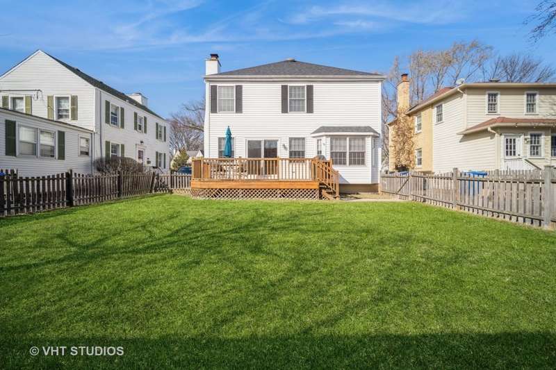Now is the time to come see this beautiful home that combines timeless elegance with modern comfort. Act quickly and you can be in your new home for many of the Holidays! It is truly an affordable home for those who want this amazing close to town location. Featuring overhead sewers, two furnaces, dual AC units and a brand new roof in 2020, which ensures year-round comfort. Hardwood floors flow throughout the entire house, adding warmth and sophistication, while many windows are thermopane for added energy efficiency and noise reduction. An addition in 1995 enhances the living space, while the cozy family room offers a wood-burning fireplace with a gas starter, perfect for creating a welcoming ambiance. The eat-in kitchen is equipped with premium stainless steel appliances from Jenn-Air and Dacor, solid surface countertops, and recessed lighting, providing both style and functionality. The spacious master bedroom includes a walk-in closet, and the master bath is a luxurious retreat with a separate shower, jetted tub, and a skylight that brings in natural light. The second bedroom offers two closets and a charming Juliet balcony, perfect for a peaceful retreat. The third bedroom features a cushioned seat by the window, ideal for enjoying the view. The home also includes a Bessler attic staircase for easy access to extra storage. A finished partial basement provides additional living space, while the concreted crawl space under the addition offers even more storage potential. Outside, the deck is an ideal spot for outdoor entertaining and relaxation. Situated in a prime location, this home is just moments away from downtown, the train station, schools, shopping, restaurants, parks, and playgrounds, offering both convenience and comfort in a sought-after neighborhood.