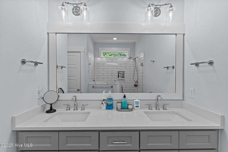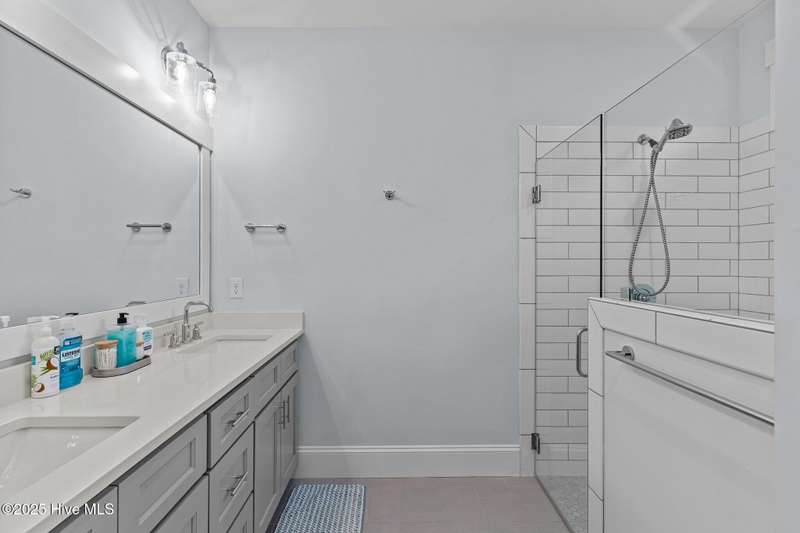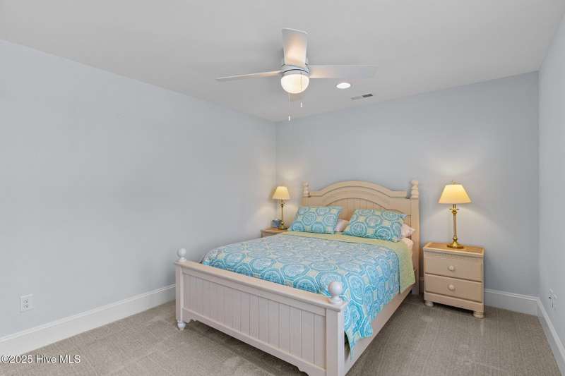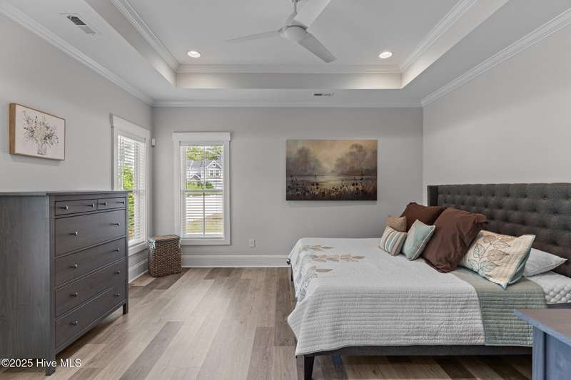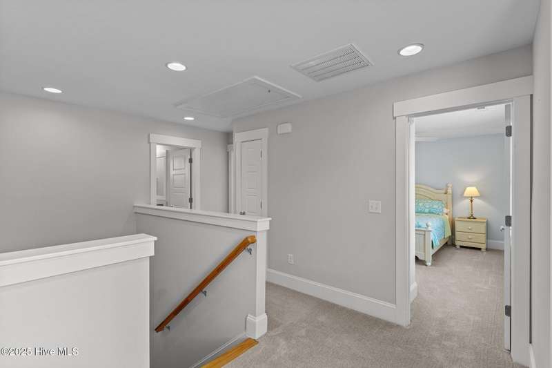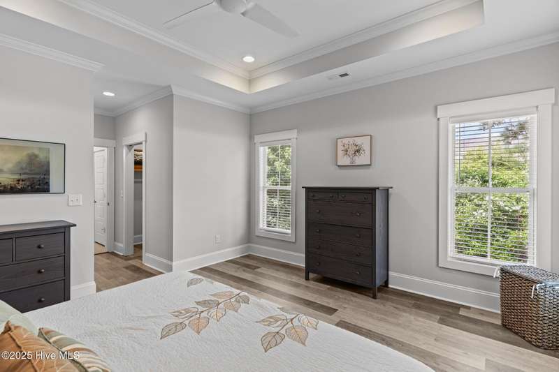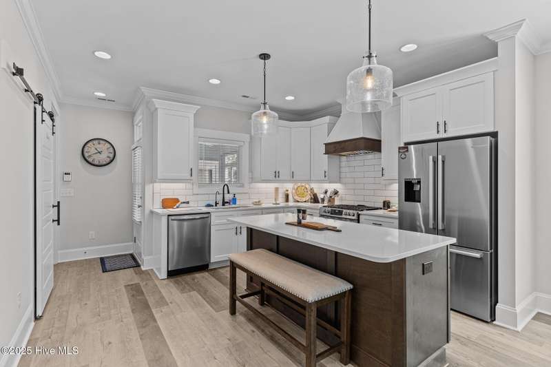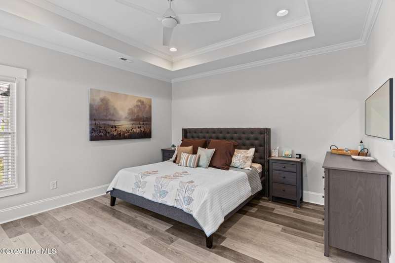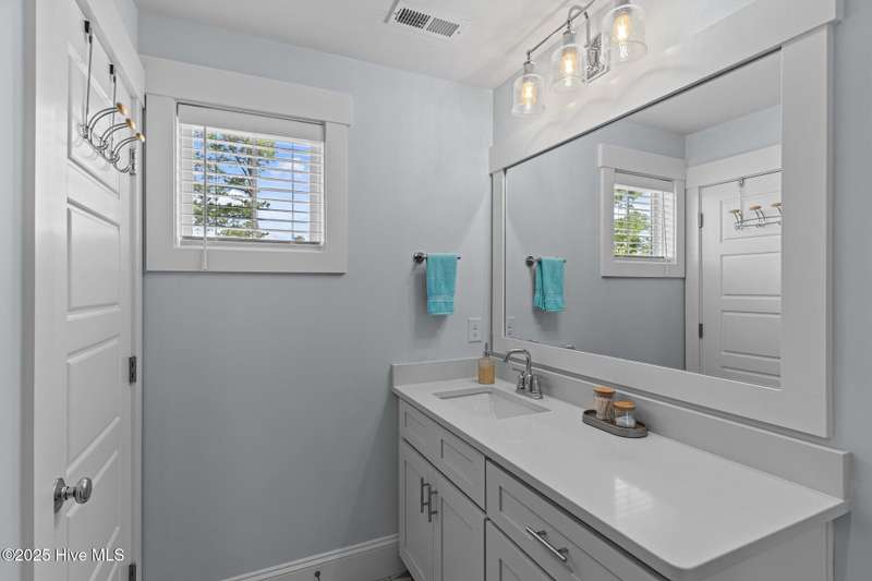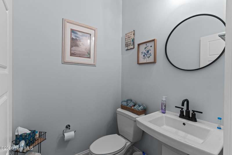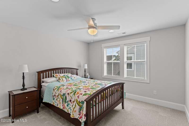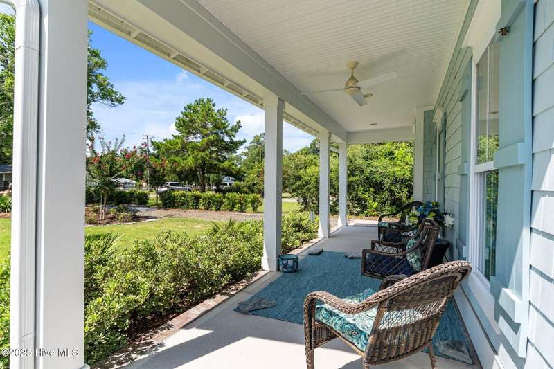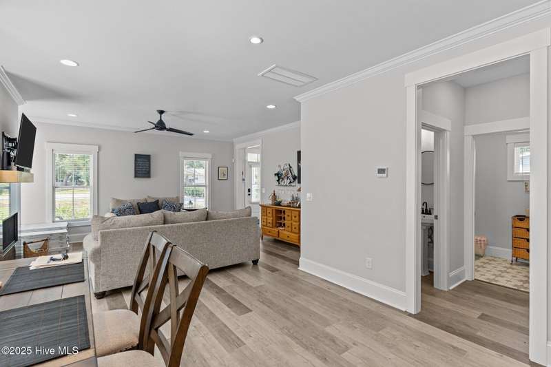 This beautiful home, built in 2023 by Coastline Homes NC, is packed with features and ready for you to move in! Located just a quick golf cart ride from waterfront dining and local shops, you'll love the relaxed coastal lifestyle this home offers. With over 1,800 square feet of thoughtfully planned space, it includes a garage, a newly enclosed sunroom for year-round enjoyment, a cozy fireplace, tankless water heater, a reverse osmosis system under the kitchen sink, gas range, quartz countertops, powder room, separate laundry area, gutter guards, spacious pantry, and a charming covered front porch. The first-floor primary suite is a peaceful retreat featuring a walk-in tiled shower, large walk-in closet, ceiling fan, and calming, coastal-inspired tones. Upstairs offers even more space with two additional bedrooms, a full bath, and a flexible loft area. As an added bonus, the owners had plans to upgrade the first-floor LVP flooring and are offering to complete the installation with an acceptable offer.